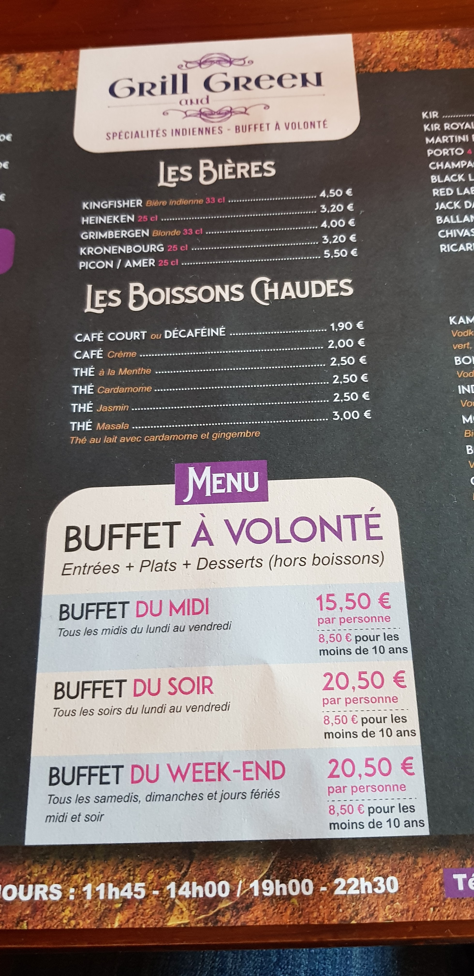 Une décoration jolie et très soignée Un buffet avec un bon choix d'entrées, plats et desserts : ce qui permet de goûter à différentes recettes ! Chaque plat est décrit sur une ardoise Des saveurs bien présentes. Ma dernière visite dans un restaurant indien dans la région Mulhousienne m'avait déçue. Le grill and green m'a réconcilié avec la cuisine indienne. Au plaisir de revenir