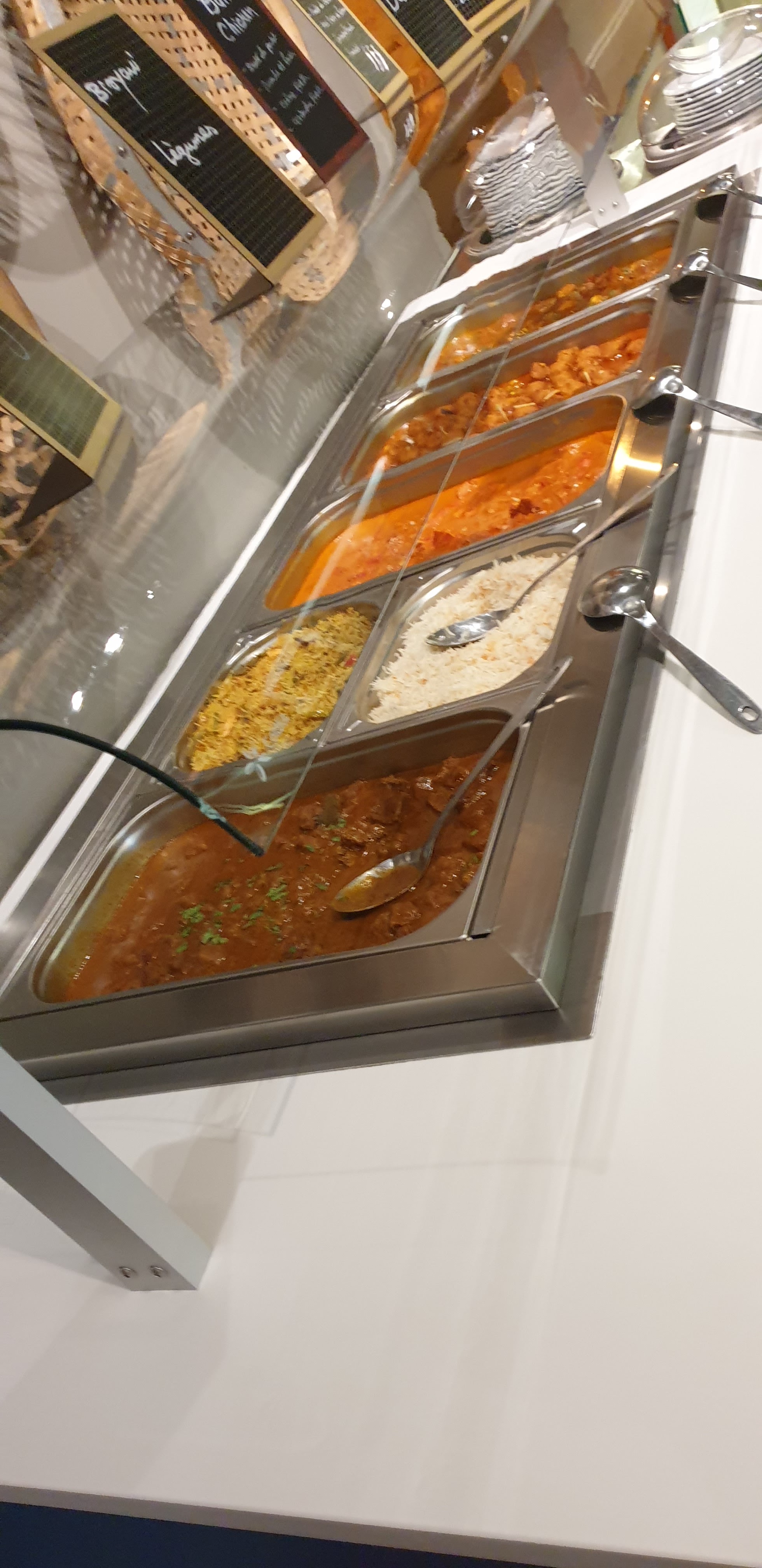 Un endroit très joli, bien décoré, dépaysant dans une zone commerciale sans charme. Un buffet salé conséquent et bon, on trouve de quoi manger même végétarien ou si on n'aime pas trop épicé, c'ets varié et certains mets sont vraiment délicieux... Dommage que le buffet de desserts se soit pas du tout à la hauteur du reste. Des fruits en boîtes, de la glace au citron très acide, et quasi rien de fait maison (sauf peut-être le khir qui était très bon !!) avec aucun panneau explicatif de ce qui est proposé. Ça aurait été facile de proposer des fruits exotiques frais, des verrines de smoothies ou d'autres Jalebi, Burfi ou Ladoo? Le service discret (pour ne pas dire absent) mais aimable. Adresse sympathique !