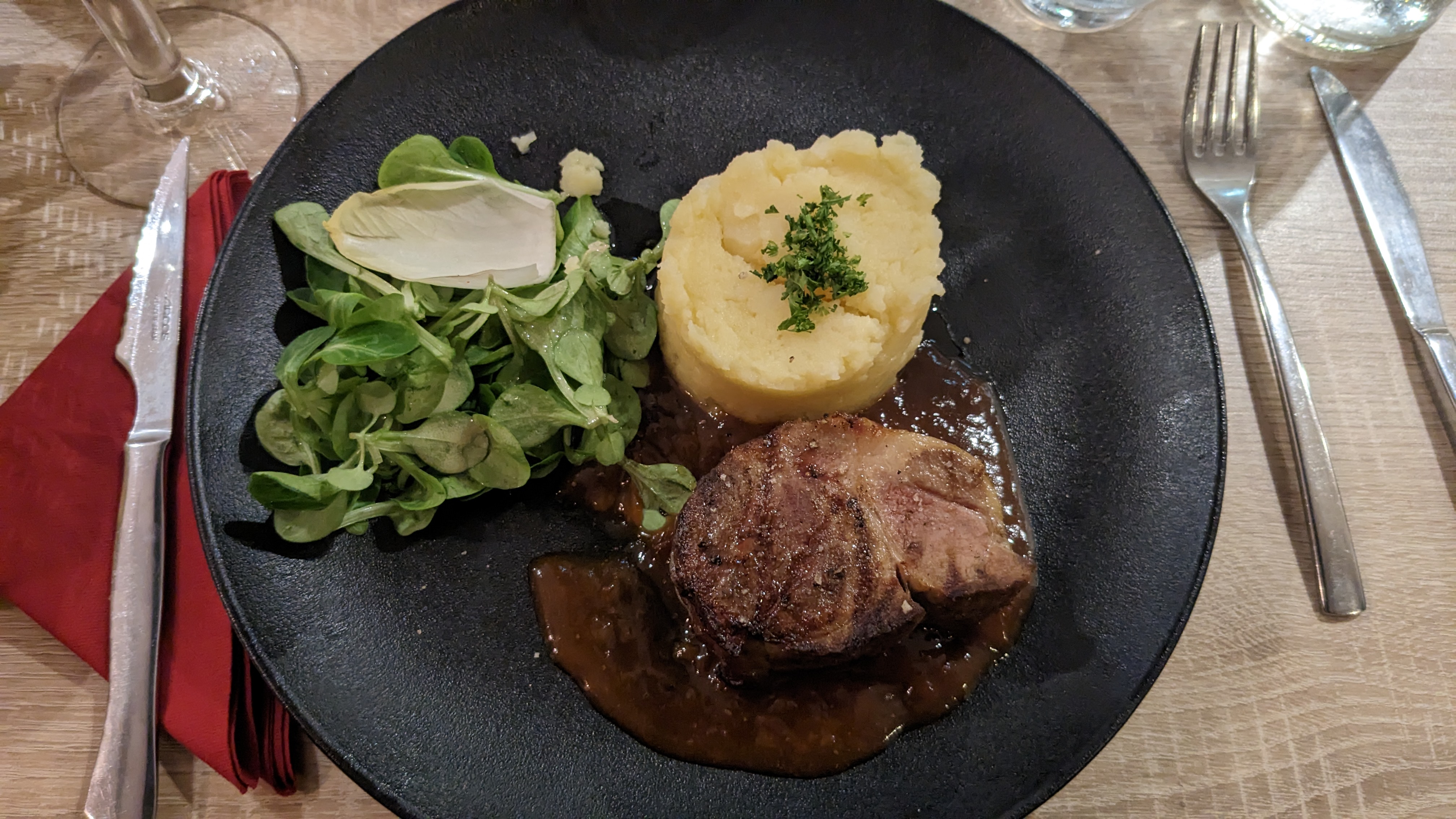 Excellent restaurant : Les différentes cuissons des viandes commandées étaient parfaitement maîtrisées, et les accompagnements étaient aussi savoureux. Quant au service, vraiment agréable. On a manqué de rien et on a passé une chouette soirée !