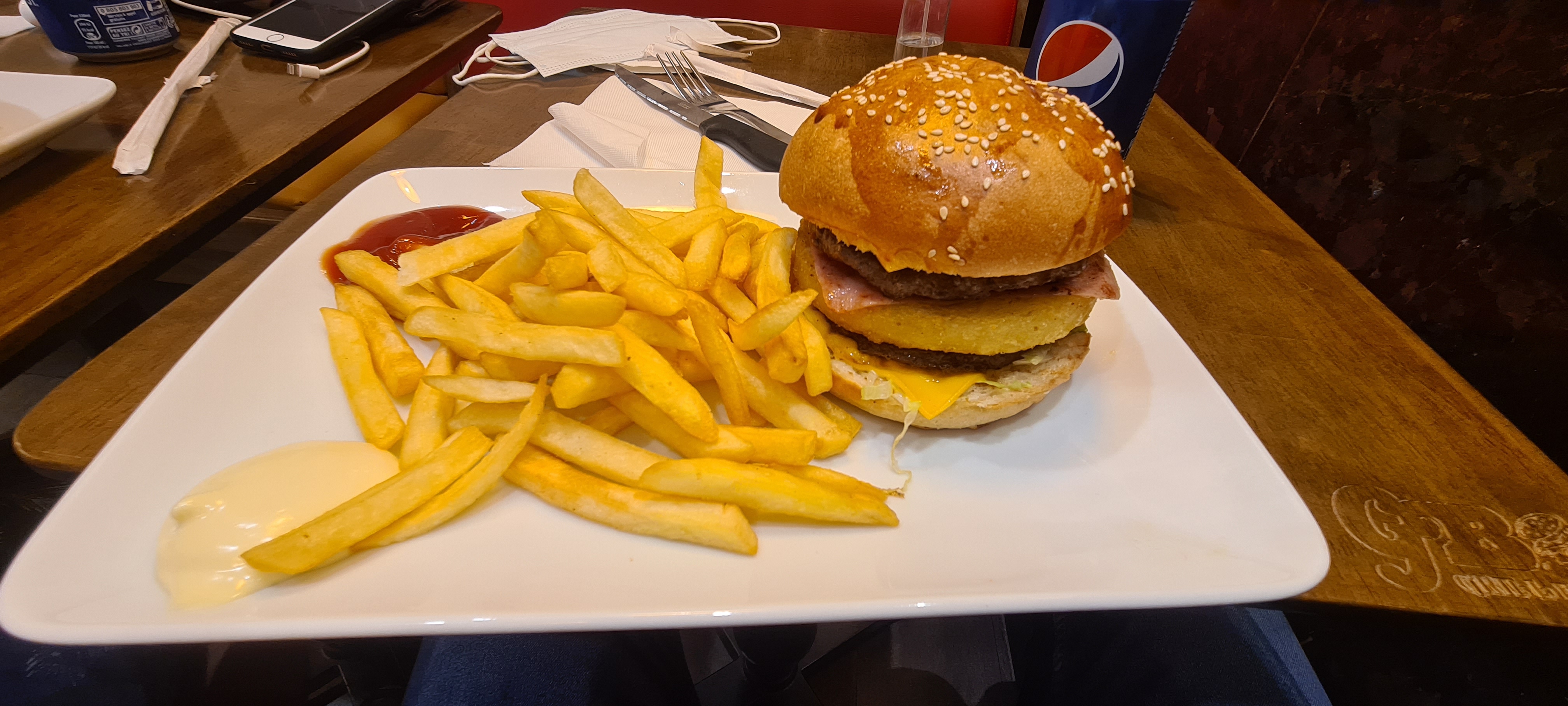 viande hachée de mauvaise qualité, frites pas cuites. Blé pas frais on dirait celui de la veille, comme s’il a tourné ...dommage. Accueil correcte mais restaurant pas très propre.