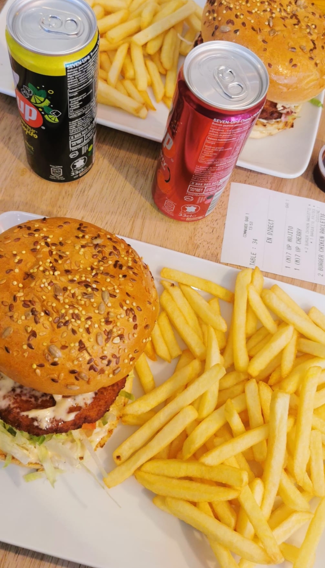 Super bon ne suffira pas a décrire l'humburger que jai pris dans ce fast food je pourrais même dire que c'est le meilleur humberger que j'ai mangé de toute ma vie , la viande est grillée, la croquette de pomme de terre au milieu donne un super bon goût , le filet de dinde et la sauce ... c'était vraiment trop bon, je le recommande à 1000%