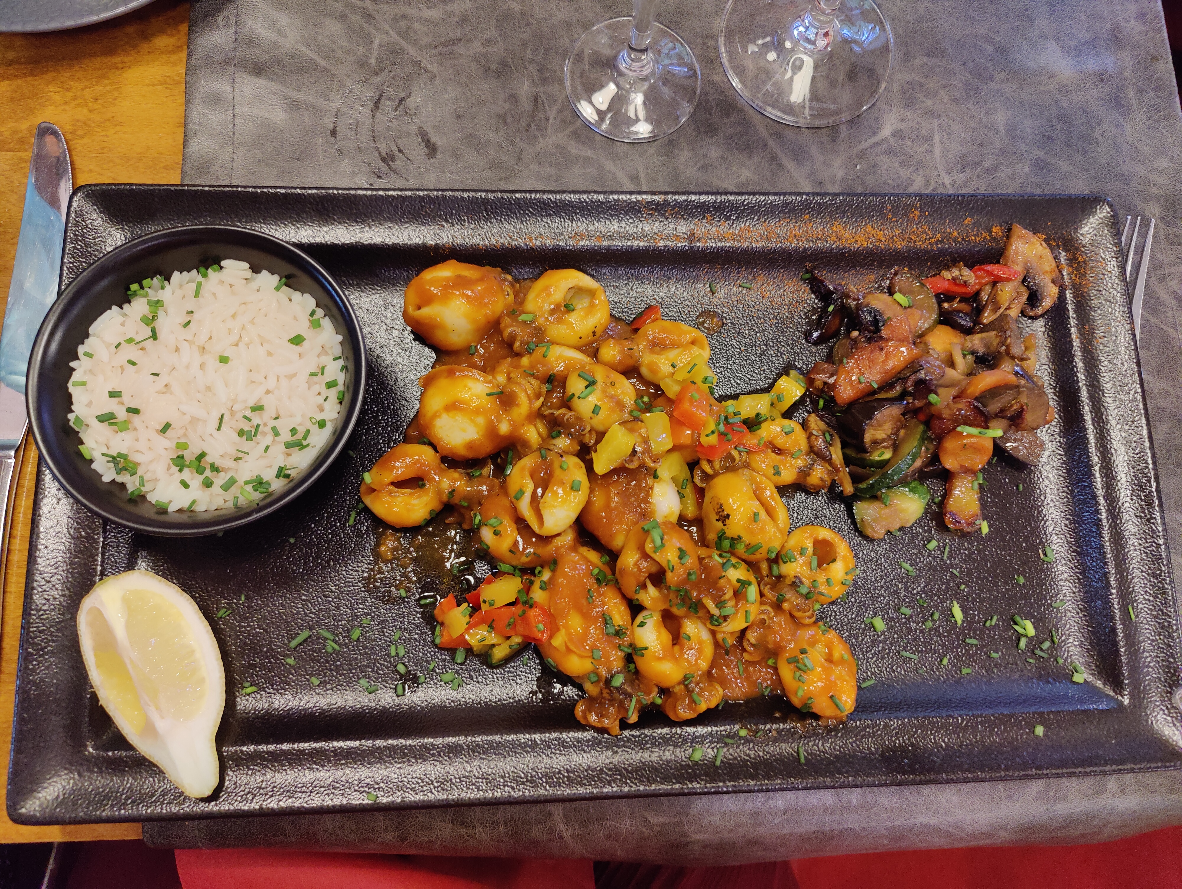 Plats en bonne quantité mais de qualité industrielle, décevant surtout à ce niveau de prix. Et surtout je suis très déçu de la réaction de certains membres du personnel concernant mon importante allergie alimentaire, réponse pas claire et prise en considération laxiste. Le décret n°2015-447 du 17 avril 2015 n'est pas réellement respecté.