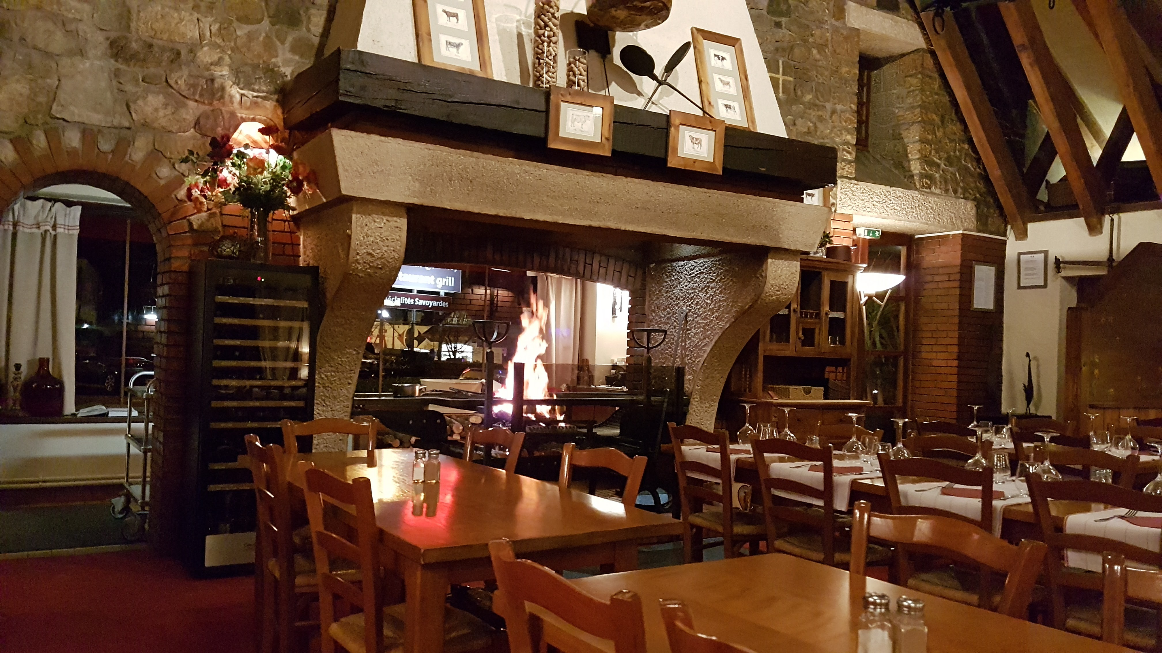 Une très belle ambiance se dégage de ce restaurant. Une cheminée gigantesque pour faire des AUTHENTIQUES grillades au feu de bois, mais aussi des spécialités savoyardes. Tout est super bon et de qualité. très bon service. Je recommande!!!