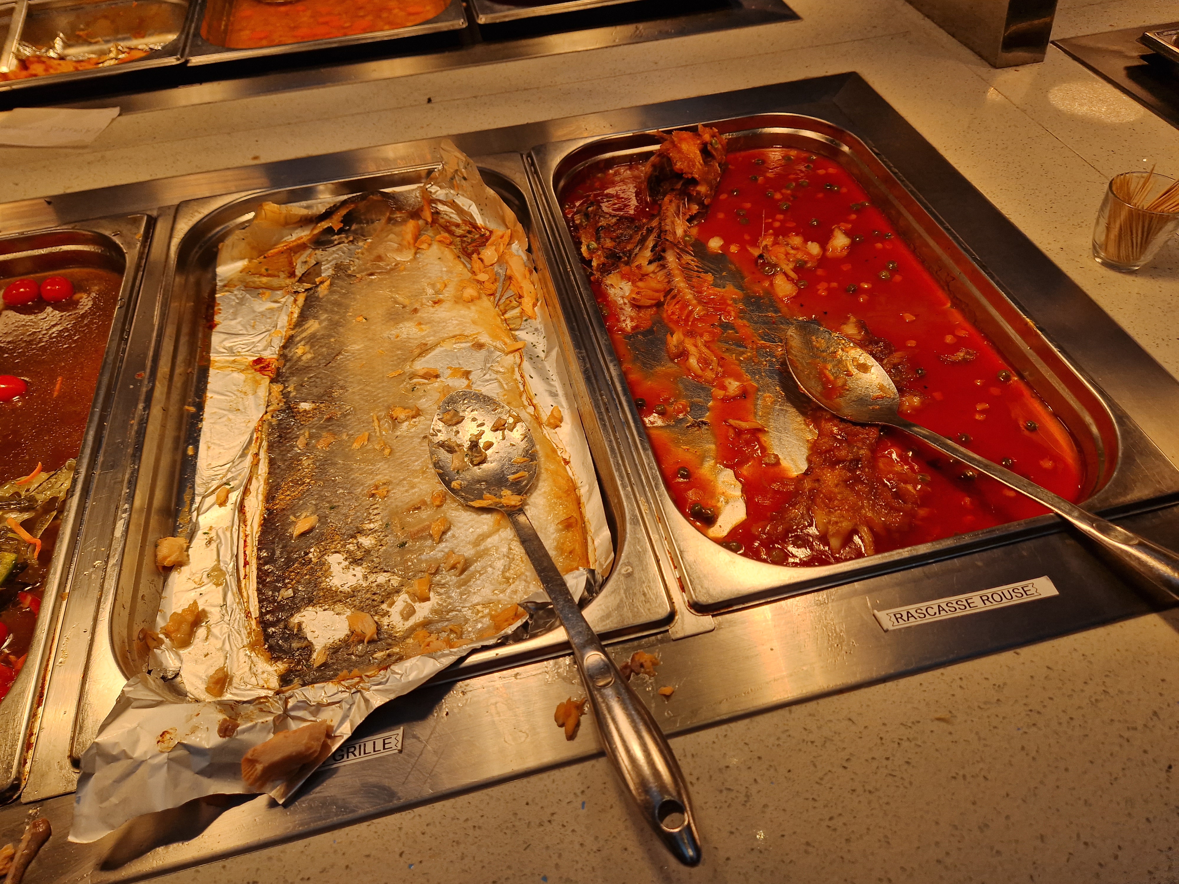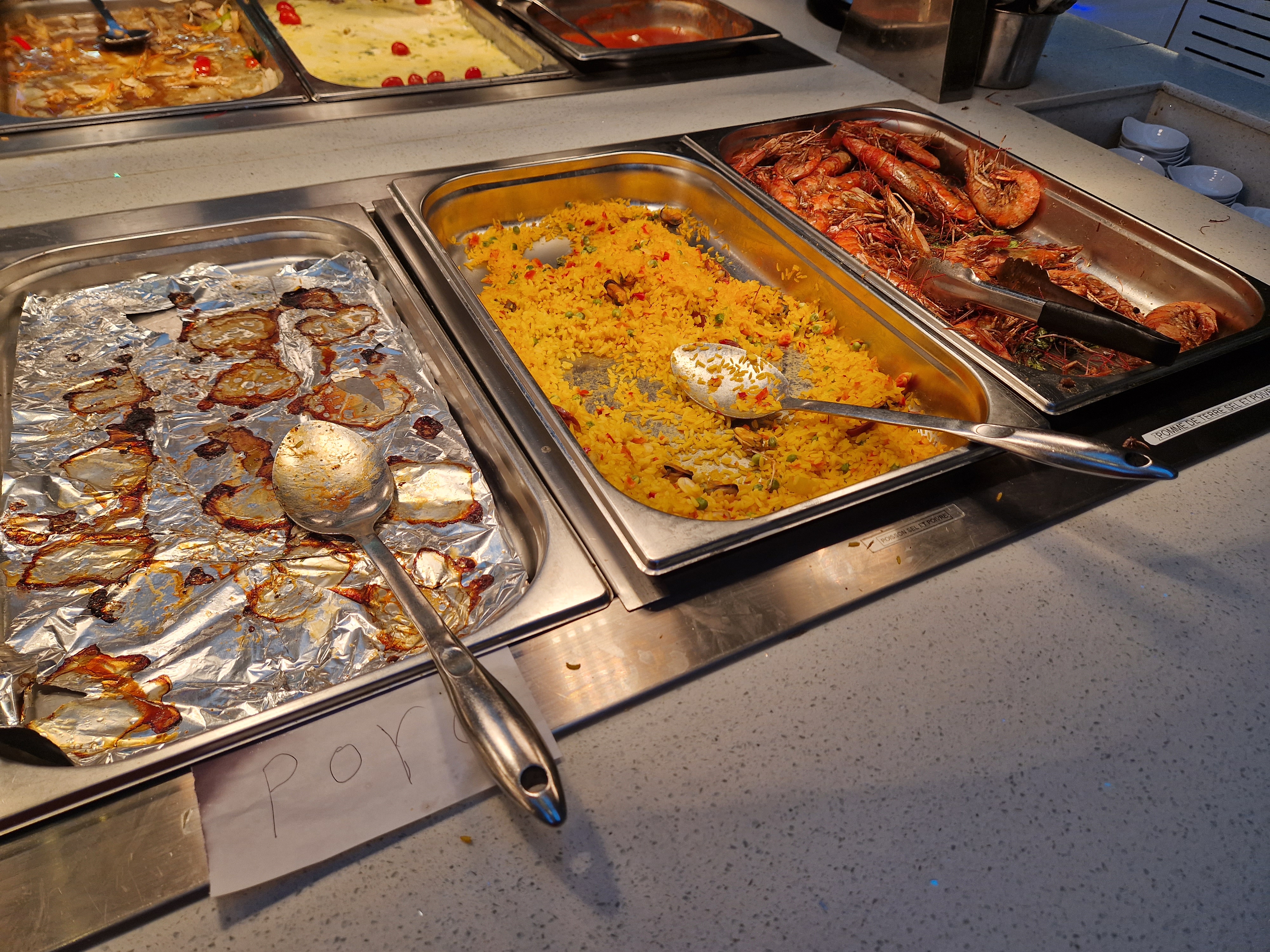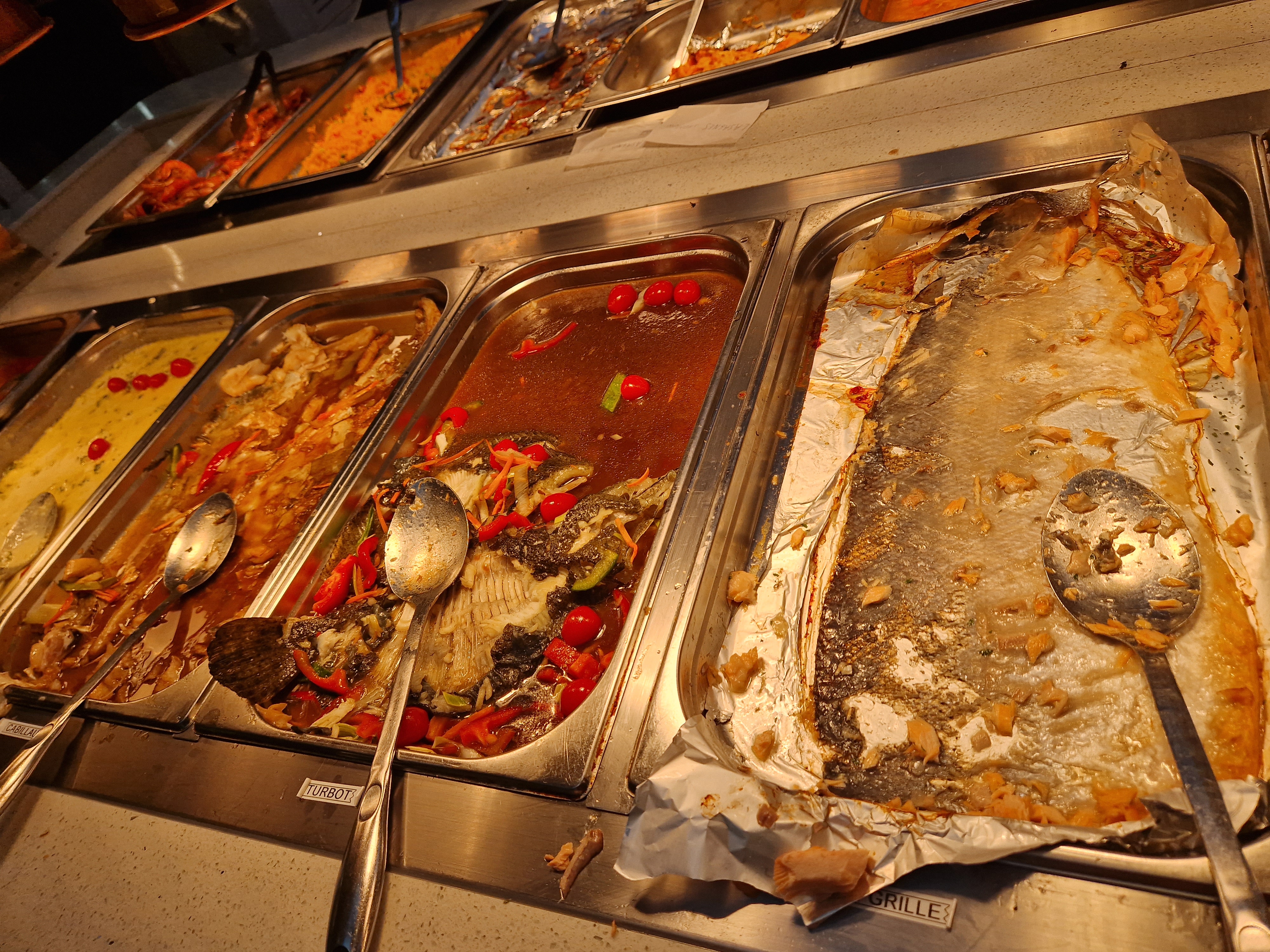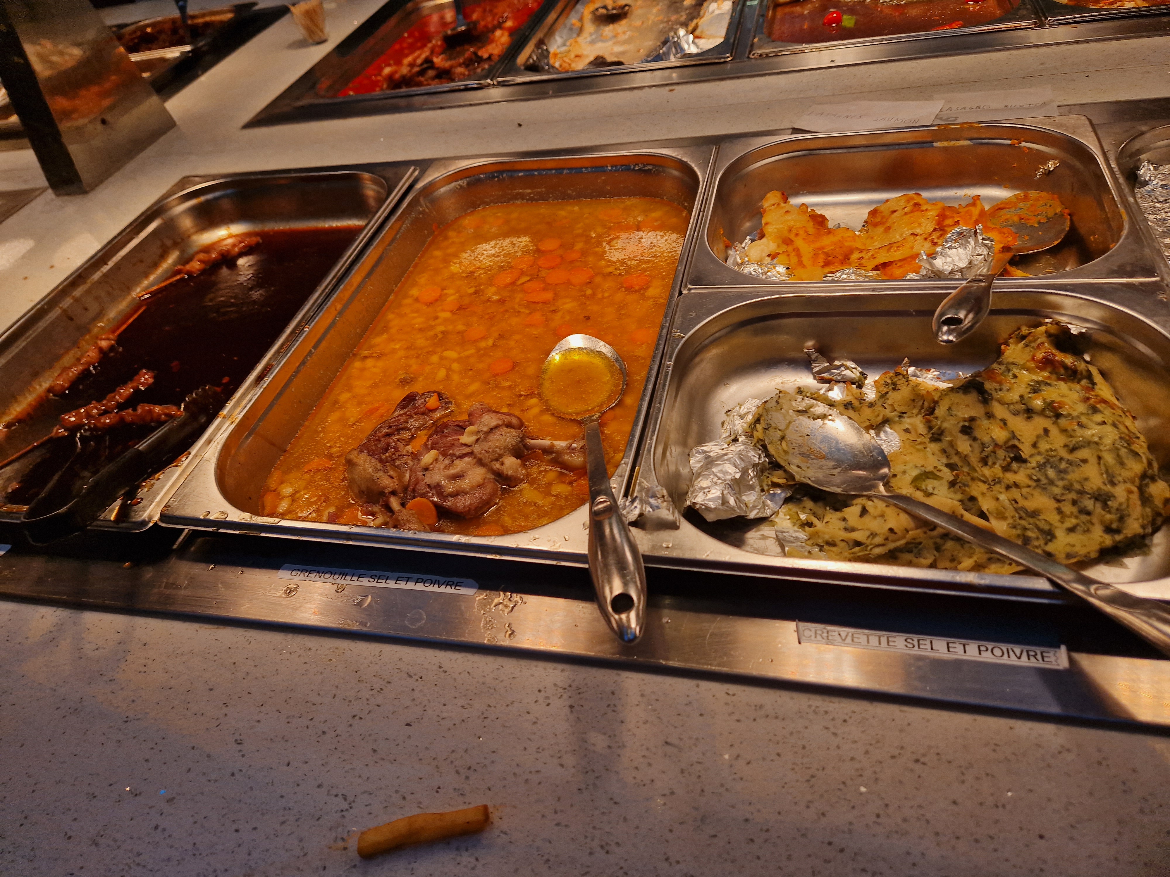 Beaucoup de choix, il y en a pour tous les goûts. Les buffets sont pratiques, bien espacés et très diversifiés. Le choix grill est très bien fourni. Seul petit bémol, les plats chauds préparés sont juste tièdes.