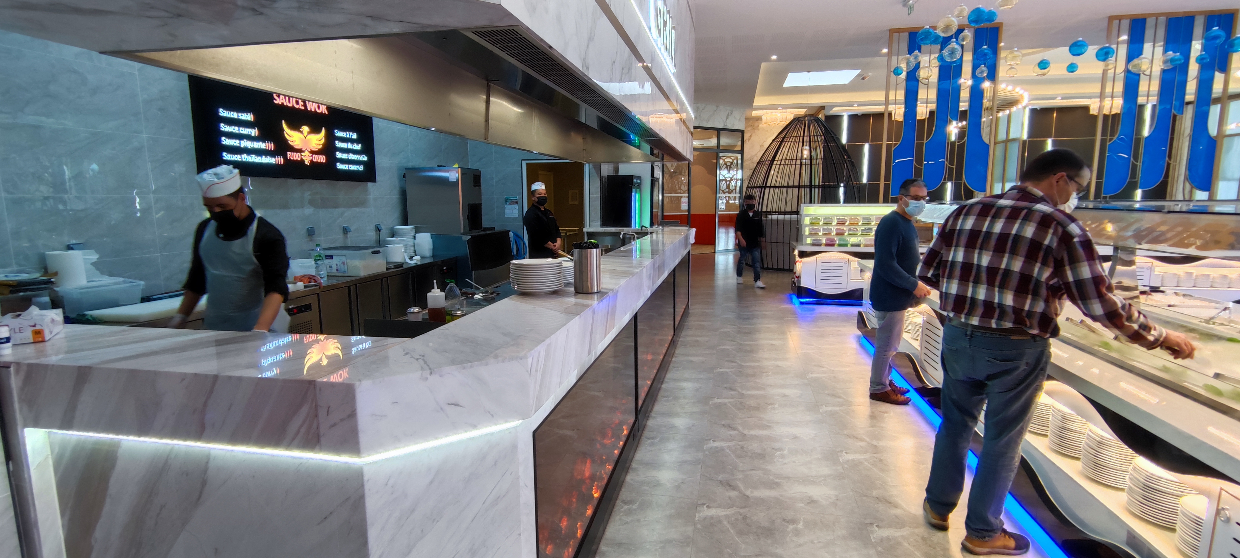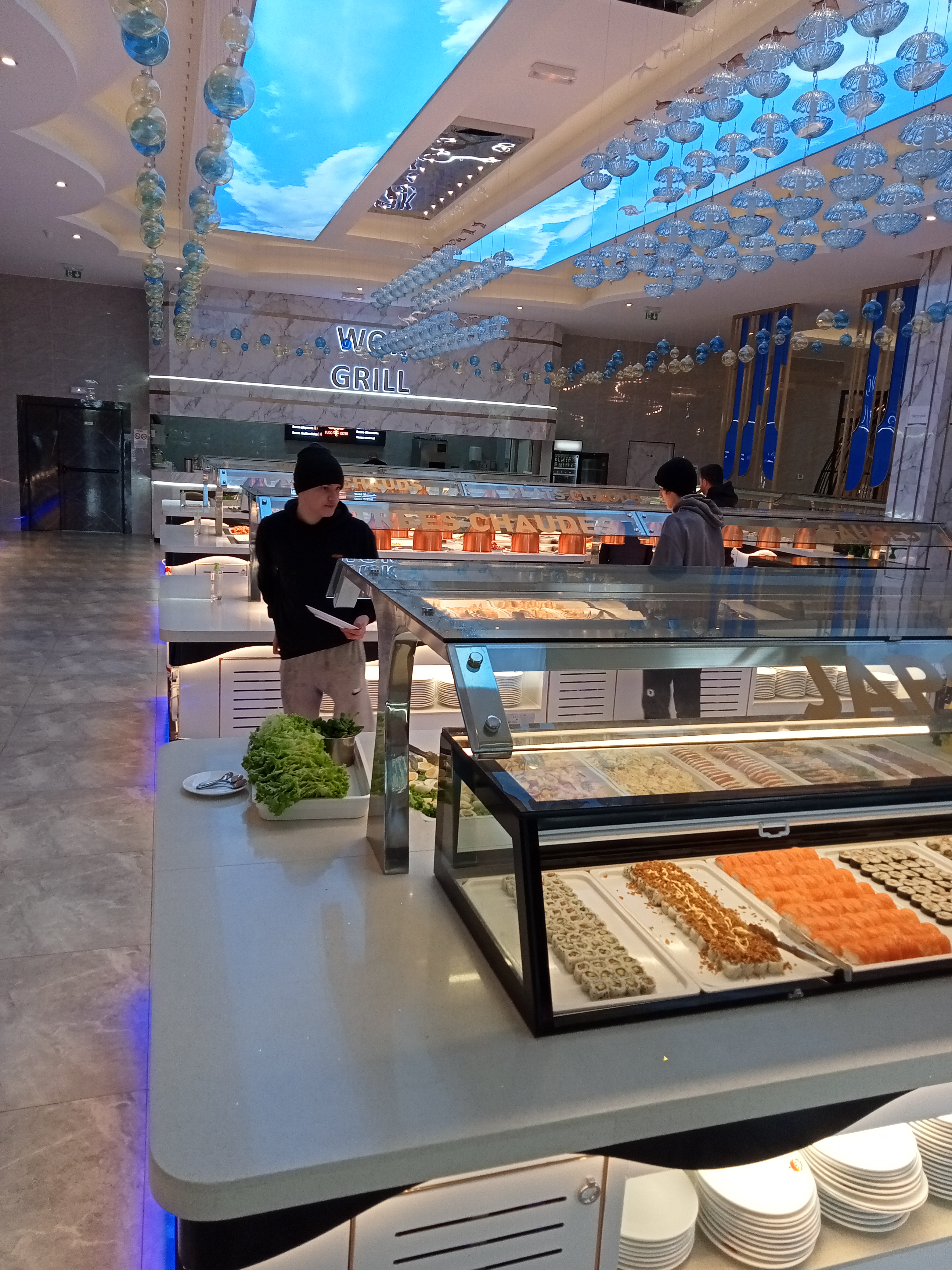Jour d'ouverture, large choix, de buffet, wok, grill et tepaniaki, beaucoup de choix de produavecits frais que ce soit en viande, gambas, Saint Jacques, poisson. Et le tout dans un ecrain moderne et aéré.