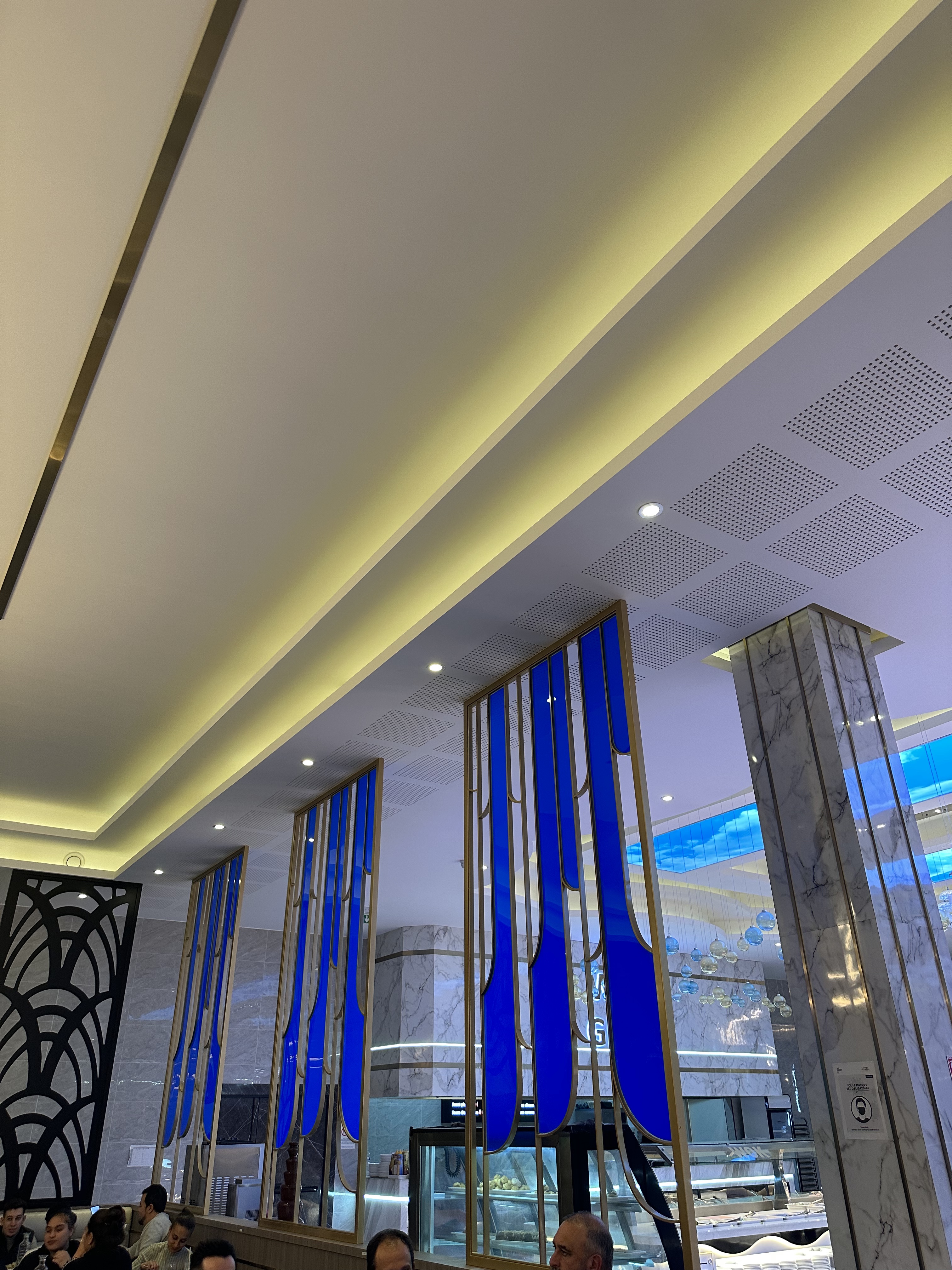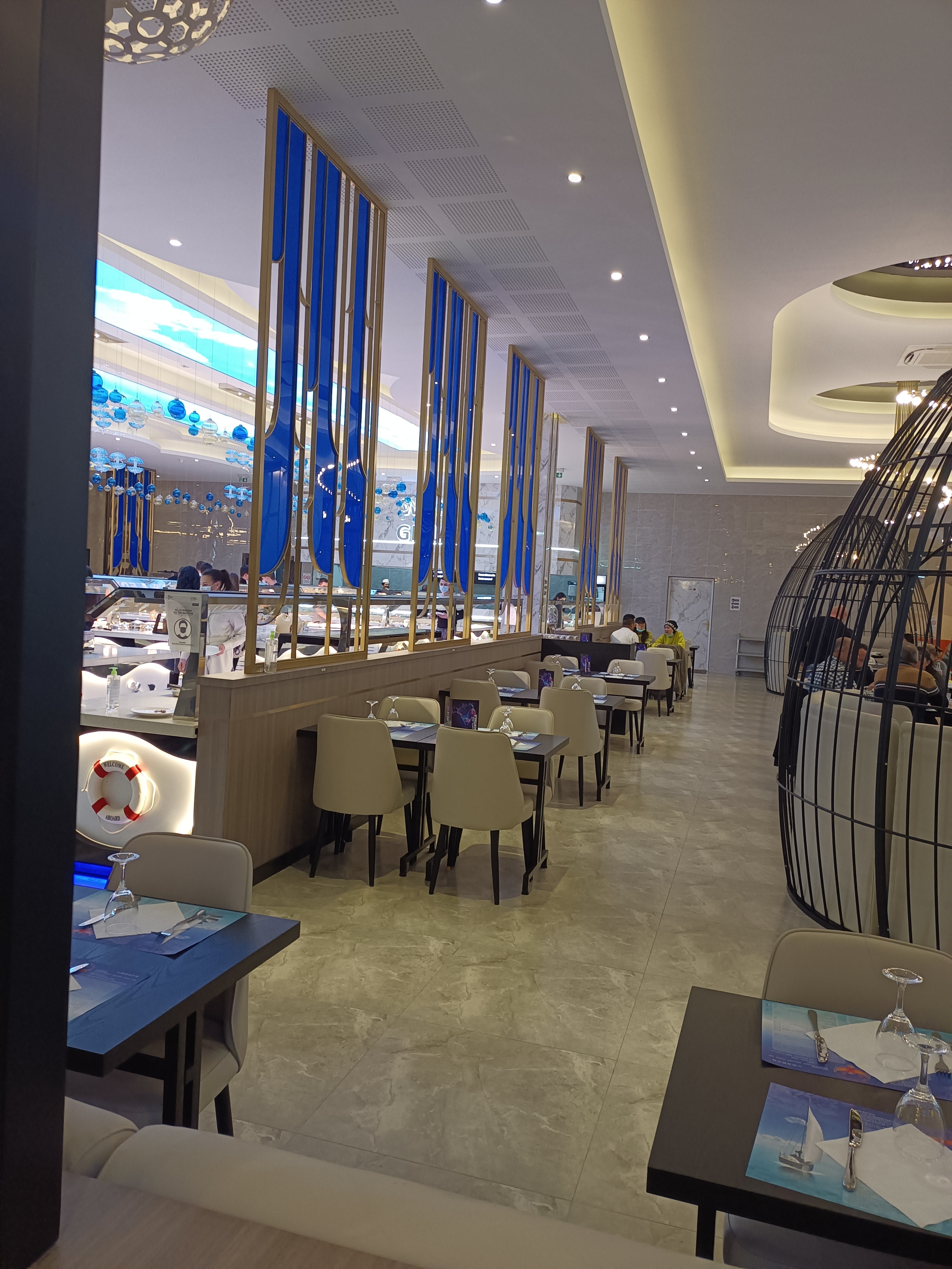 Le restaurant est très beau en effet avec un buffet au large choix . Cependant nous avons tous été avec un mal de ventre la nuit où nous y avons mangé et des troubles du transit ... Je rejoins les commentaires qui l'evoquent .. ! Pas rassurant ..