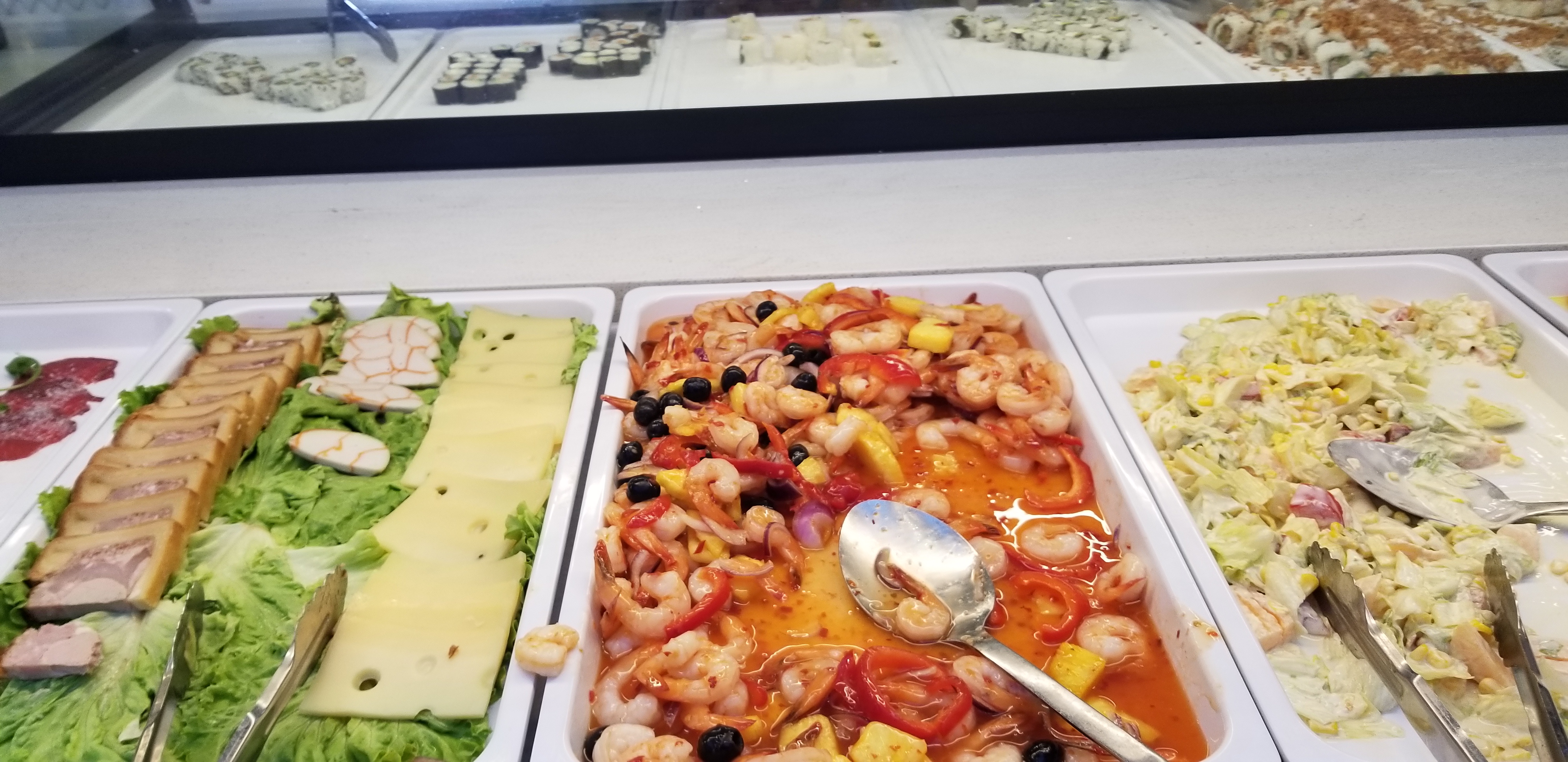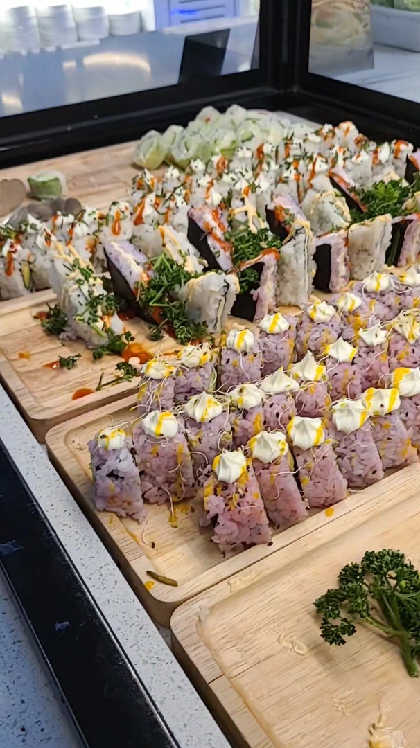 Comparez à d autres buffet à volonté il y a du choix beaucoup et peu de rupture, le lieu est propre avec une deco au gout du jour , petit bémol sur la gamme sushi maki le concept sucré riz coloré et fruits rouge chantilly en déco dessus etait une expérience gustatives étrange .