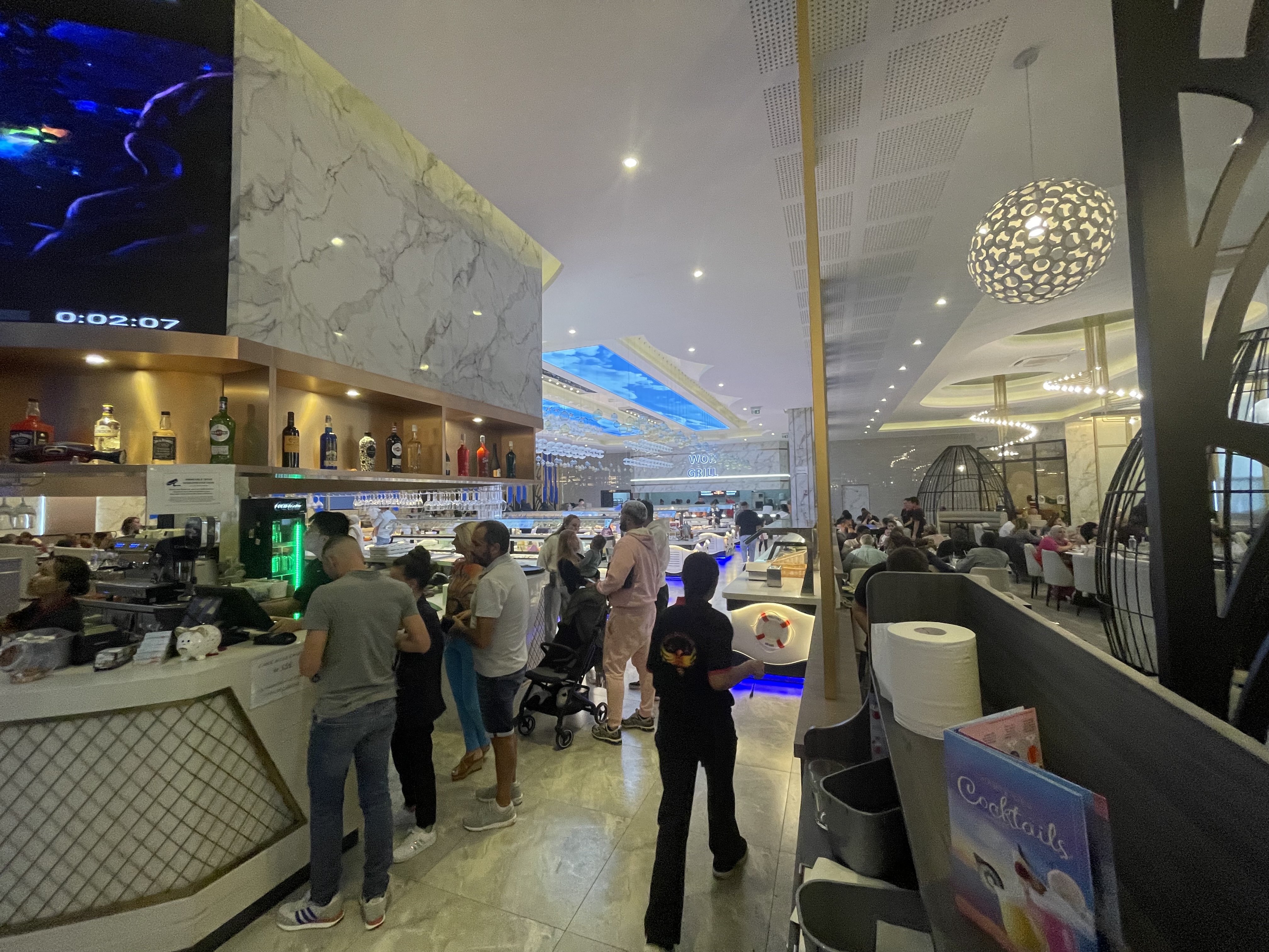Excellent prix, service rapide et au top. Machine du futur qui vous servent vos boissons. Un buffet extra avec de nombreux choix, délicieux en plus. A volonté pour moins de 16 euros en semaine en journée incluant gambas, crabe, fontaine à chocolat, bonbons par milliers..... espace enfants avec 2 petits jeux pour occuper nos bambins. Qui nems pas ça ?!!!