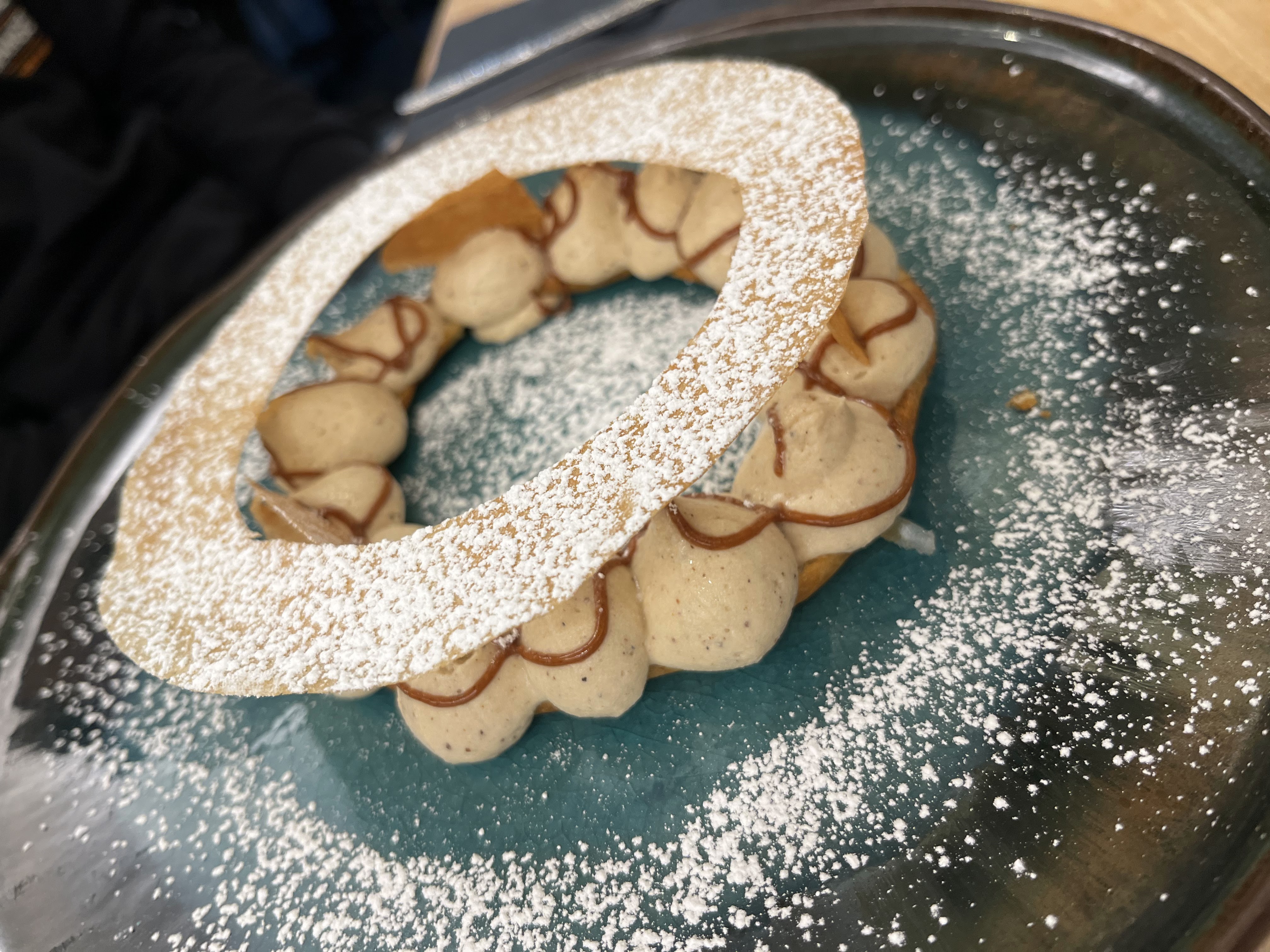 Nous venons de manger pour la première fois dans ce restaurant.c est une belle découverte.le service est rapide et accueillant. Les serveurs et serveuses sont adorables.les produits proposés sont variés et très bons.le paris Brest revisite est original léger et délicieux.l atmosphère est agréable et ce n est pas bruyant.bravo a toute l equipe.continuez comme cela.muriel et laurent.