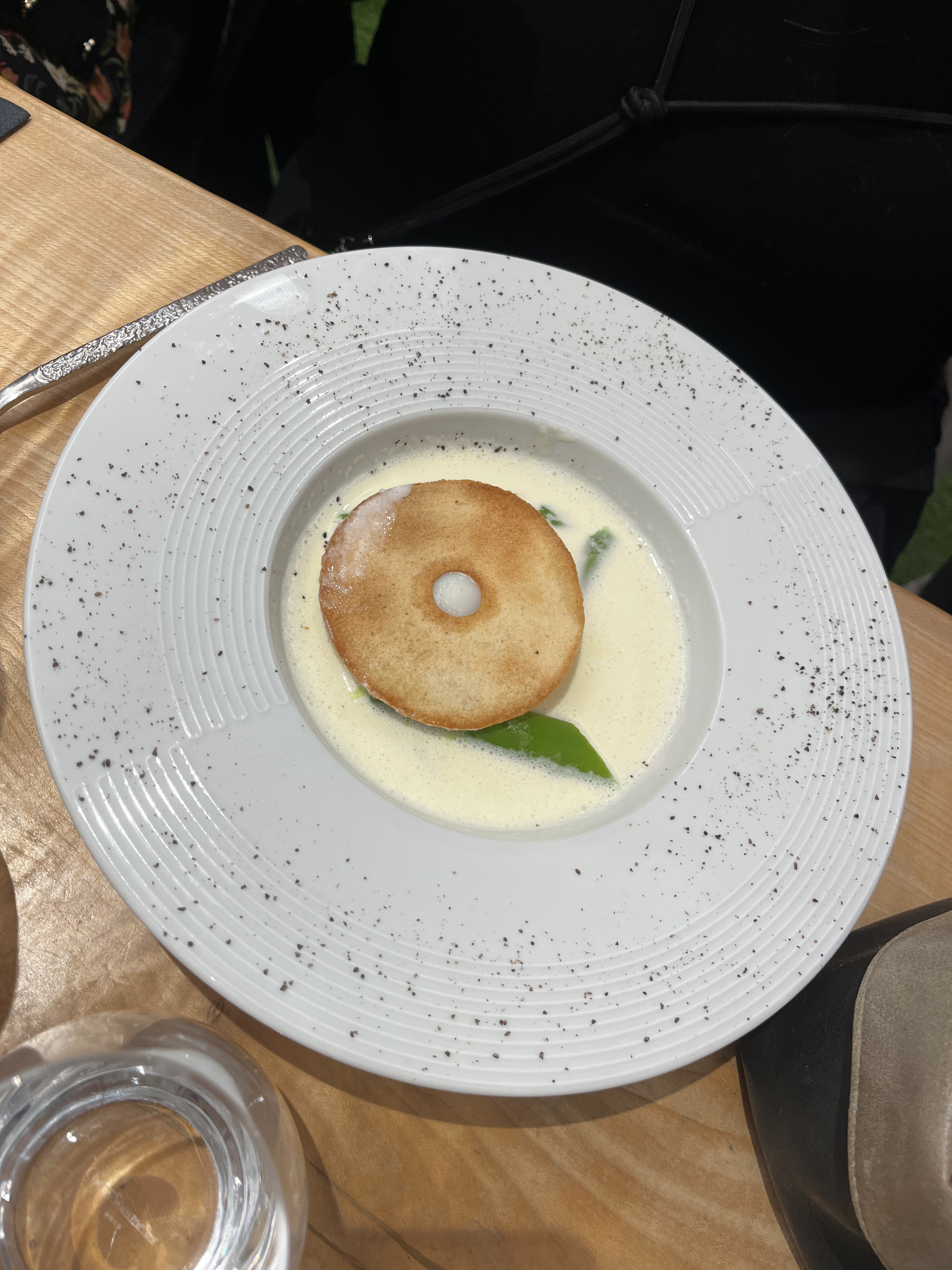 Lieu sympathique avec une jolie décoration à l'intérieur. Le personnel est accueillant et souriant. La carte change chaque semaine (nous n'avons pas eu les mêmes plats que des amis qui y sont allés y a un mois). Nous avons testé différentes entrées et nous avons été assez étonnés de la quantité servie par rapport au prix. Un tout petit bout de foie gras pour 12€ (cf photo) Une burrata plutôt classique à 12€ L'ensemble fût bon, mais ne vaut malheureusement pas ces prix...
