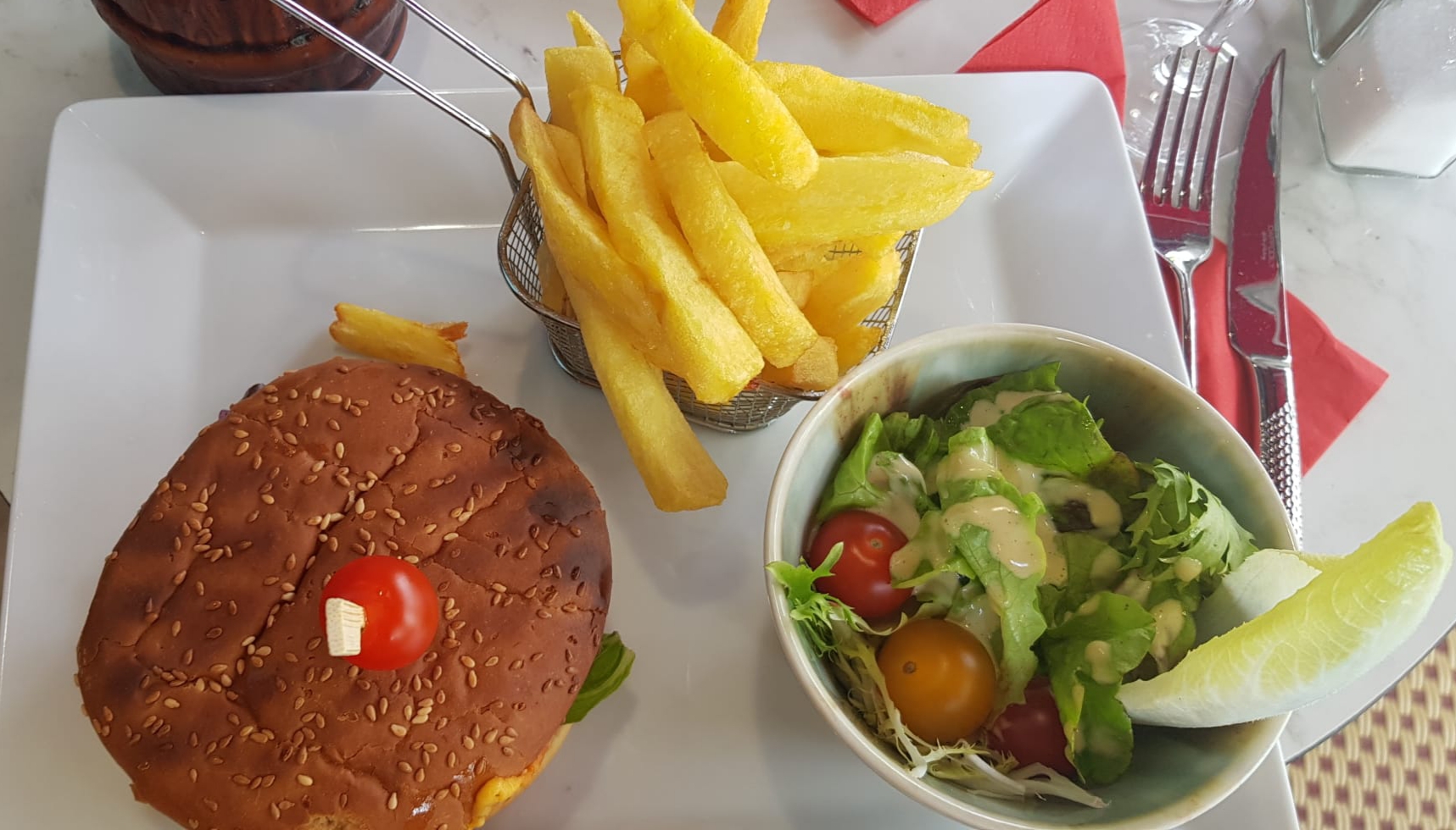 Excellent hamburger avec des bonnes frites maison.