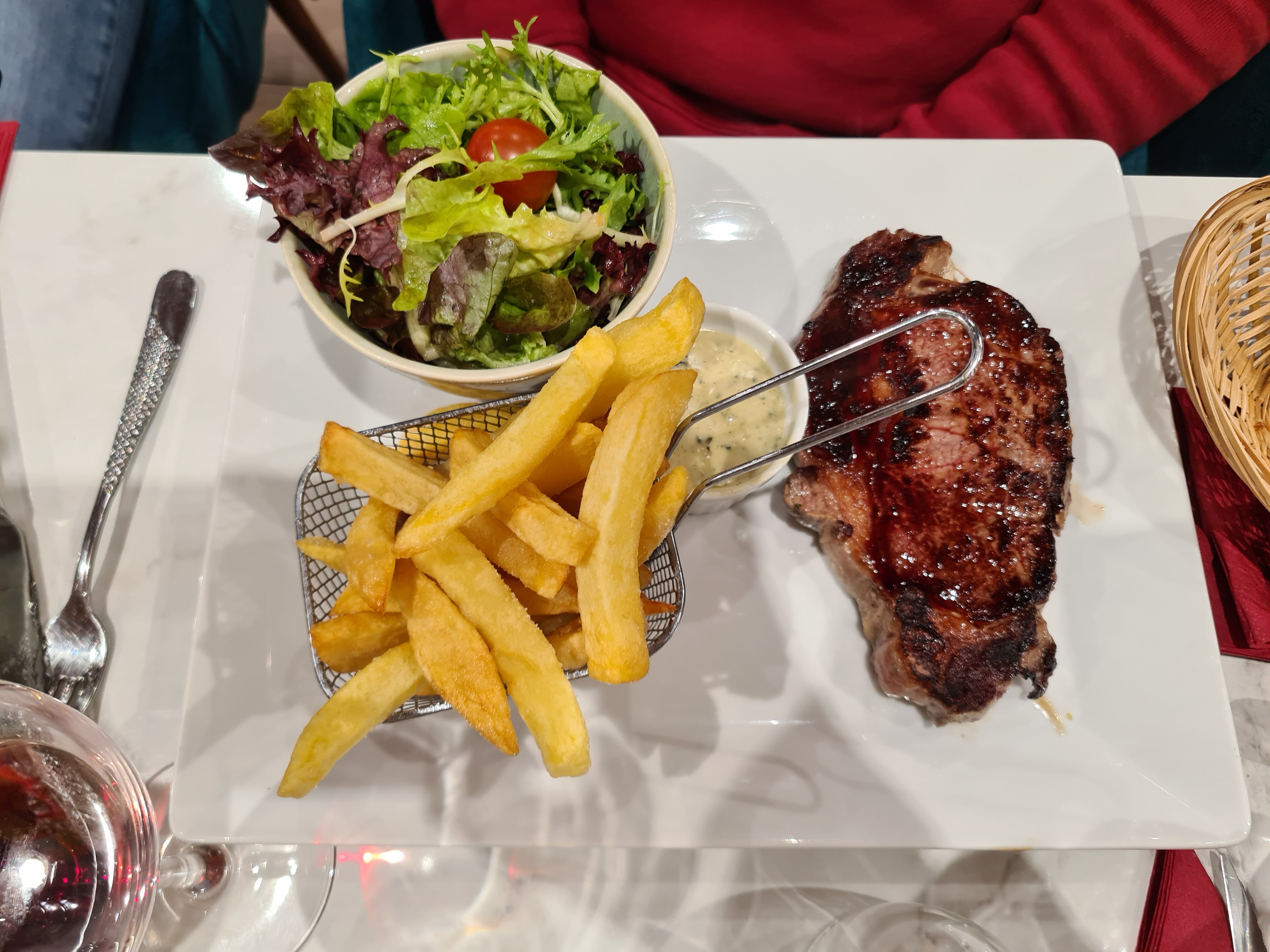 Ma femme dit qu'elle n'a jamais mangé de meilleur burger (L'avergnant), j'ai eu le rumsteck sauce au poivre. Le steak était exceptionnellement bon, la sauce était la meilleure que j'ai jamais goûtée. Les frites étaient également très bonnes, pourraient peut-être utiliser un peu plus de sel, mais elles étaient bonnes car elles étaient fraîches et faites maison. Mais dans l’ensemble, c’est absolument génial ! Et le prix est tout à fait raisonnable, surtout pour Paris, où chaque chewing-gum coûte 10 euros.
