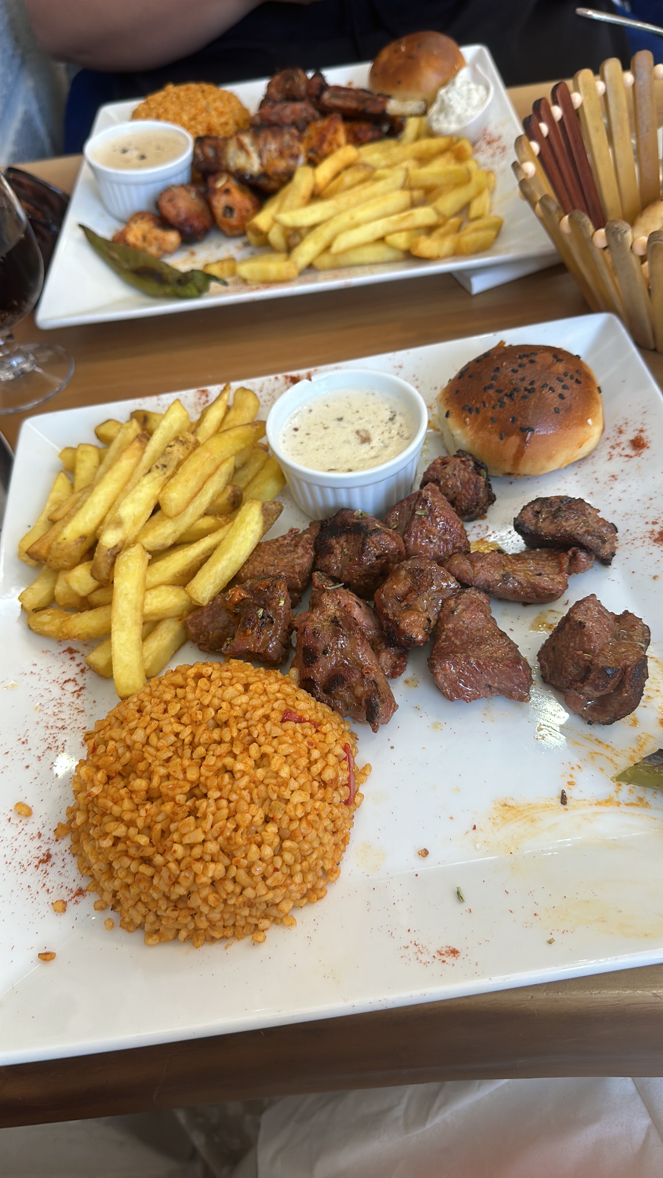 La cuisine est bonne, ainsi que le service, seulement j'ai pris une planche familiale pour 3 personnes d'un montant de 70e, on m'indique qu'il ya un peu de tout, finalement, il ya surtout pleins de petite assiette avec des sauces ( Mayonnaise, ketchup etc...) qu'une sauce turc au yaourt grec. Pas assez de frites et manque de viandes, 2 petites cotelettes et 2 petit steak hachée + quelques morceau de poulet et d'agneau... nous avons du recommandé des frites que nous avons payé 3 euros en supplément. 73e euros pour ça c'est vraiment dommage.. Vaut mieux prendre 3 plats individuels.. Bref nous nous ne reviendrons plus.