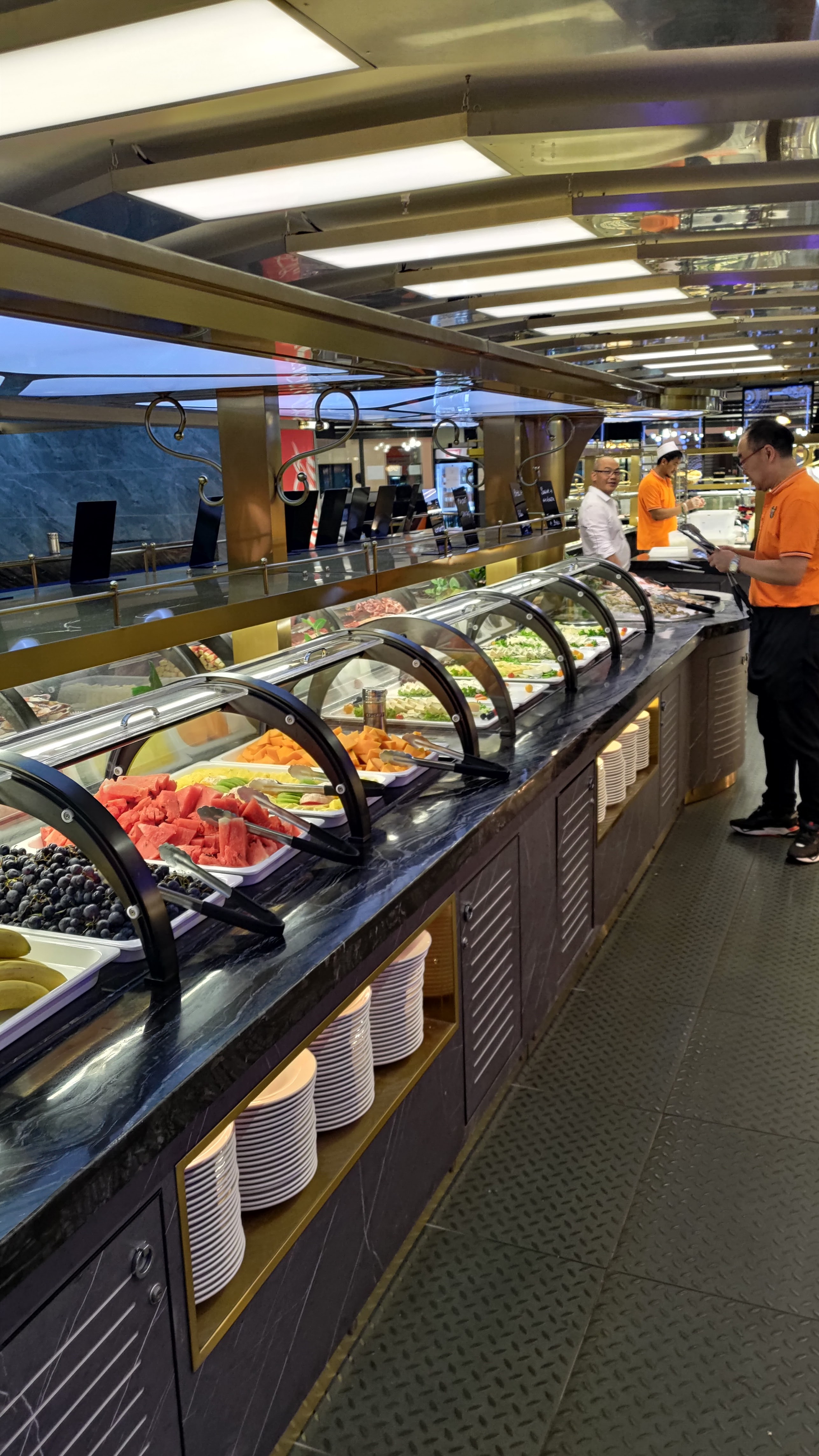 Bon repas en famille! Le buffet est gigantesque, on ne s’attend pas à ce que ça s’étend autant et qu’il y ait une autre salle encore plus grande au fond! Petit bémol, les différents poissons en fond de buffet sont trop cuits et du coup trop secs. Sinon, bonne expérience et énormément de choix!