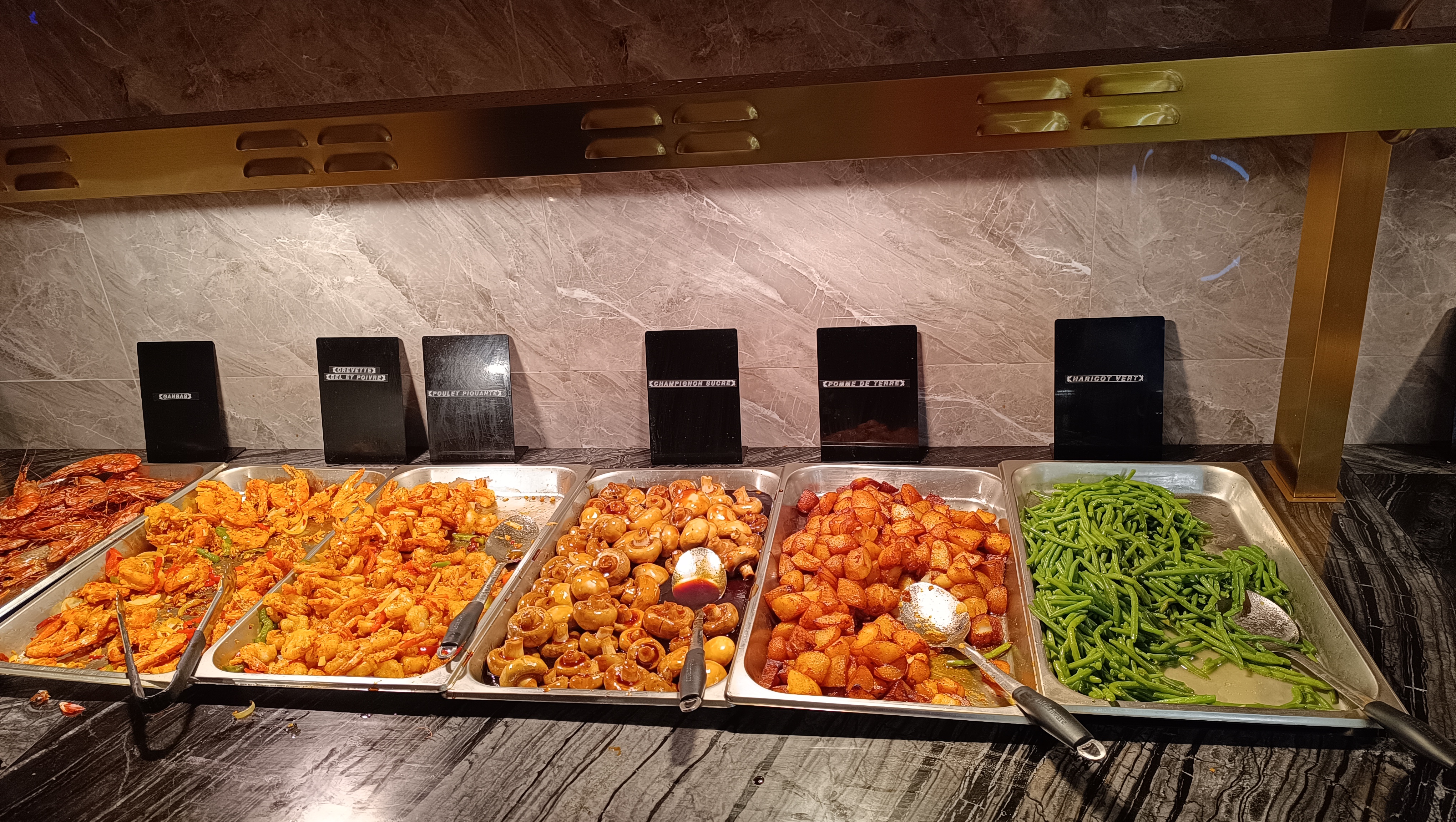 j' ai été surprise par le choix divers et important du buffet aussi bien en entré que en plat et dessert.Seule bémol il pourrait avoir un coin avec des morceaux de viande un peu plus petit pour les enfants.