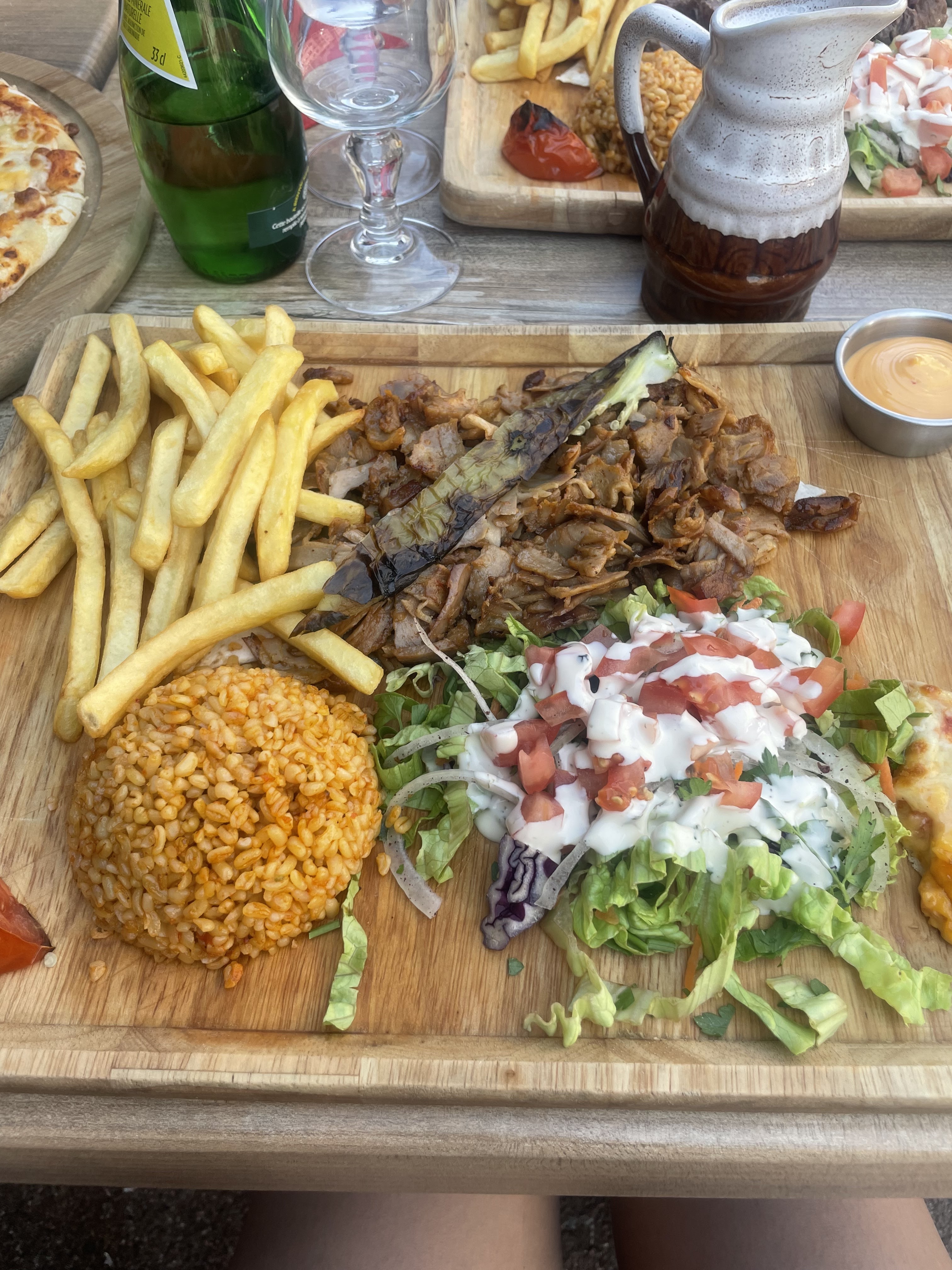 Frite tiède, la viande commandé était de l’agneau, finalement pas beaucoup le goût d’agneau, j’ai même le doute si c’était de l’agneau .. pas beaucoup de frite dans l’assiette, on est sorti de là obligé d’aller dans un fast food pck on avait encore faim. La qualité pas ouf par rapport au prix, 10€ l’assiette tu as même pas de sauce, faut la demander à côté ..