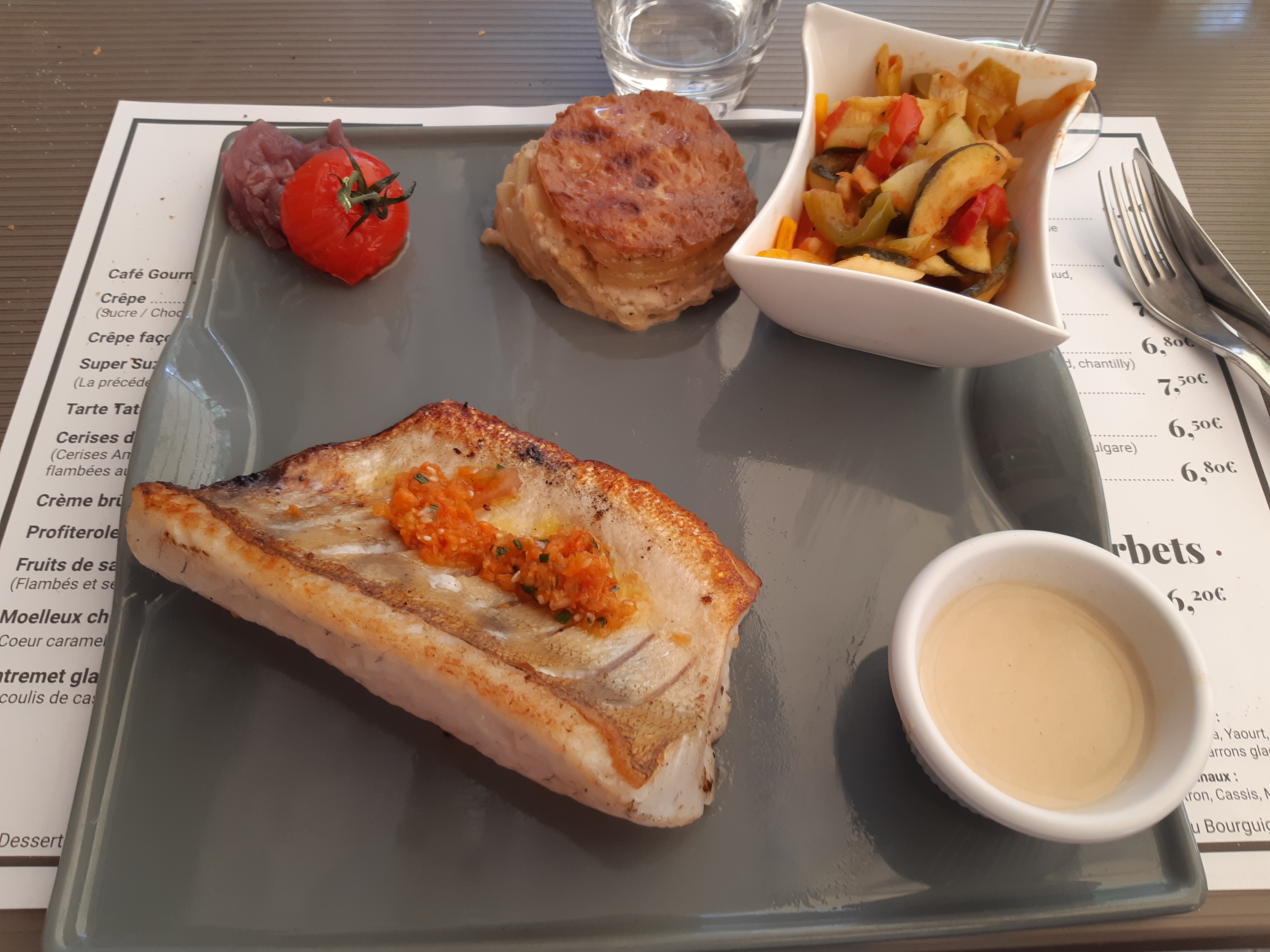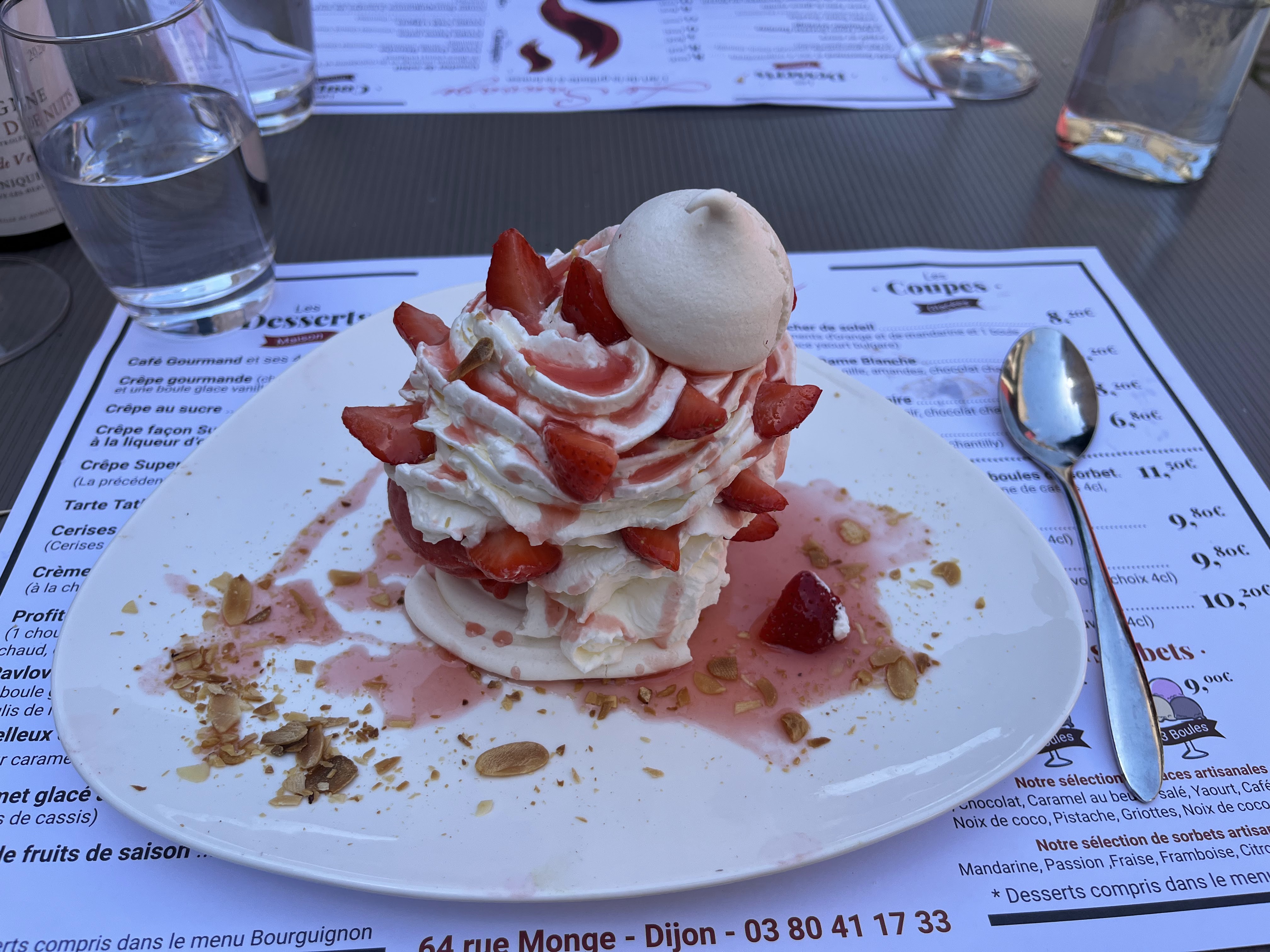 Parfois il est de bon ton de jouer les touristes… car le menu bourguignon proposé est de bonne harmonie… belles proportions, belles saveurs… big up pour LA profiterole XXL et sa crème chantilly maison qui replonge dans notre enfance.