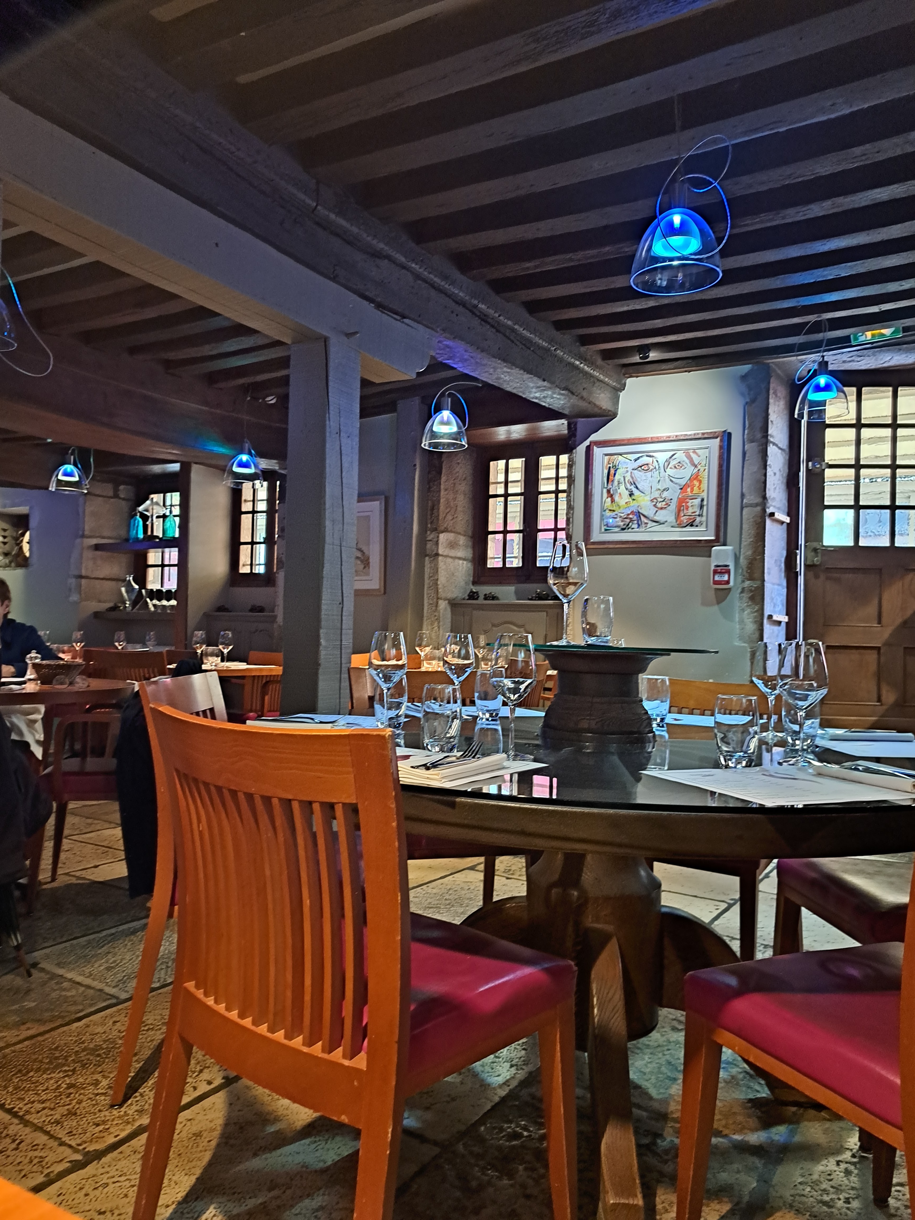 Très bonne cuisine, service impeccable, seule ombre au tableau : un des tableaux, justement : un truc un peu glauque avec un type portant un masque à gaz. Pas compris ce que ça faisait là.