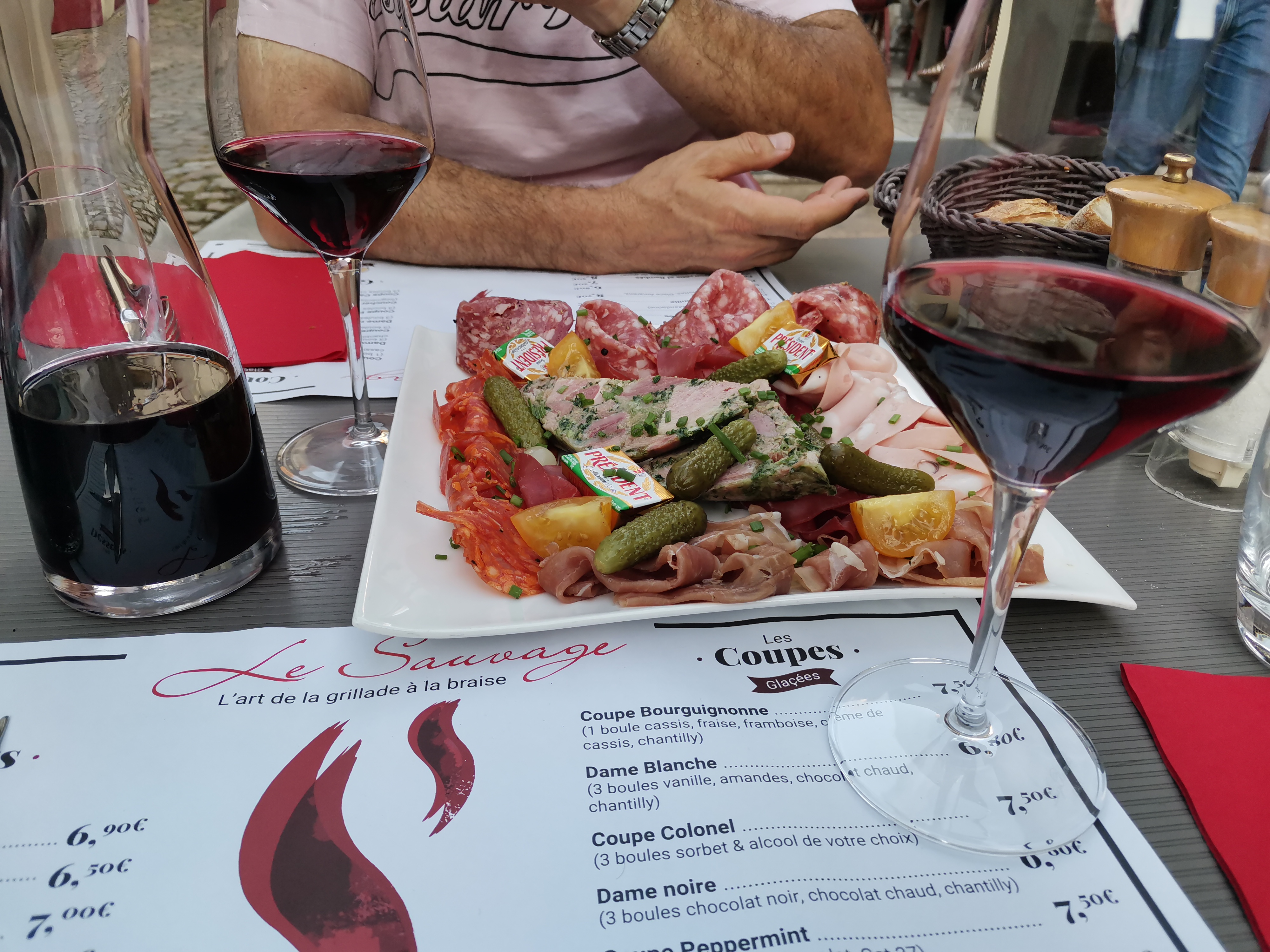 Accueil très sympathique et avec humour, nous avons déjeuné dans la véranda située en arrière cour, tous les plats étaient très bons, cassolette d'escargots, pièce du boucher, rognons,... nous avons partagé le dessert méga Profiterole , Bref vous avez compris, nous avons adoré l'endroit, et la cuisine qui s'y fait Je recommande vivement le Grill le Sauvage Malheureusement, nous en avons oublié de faire des photos...