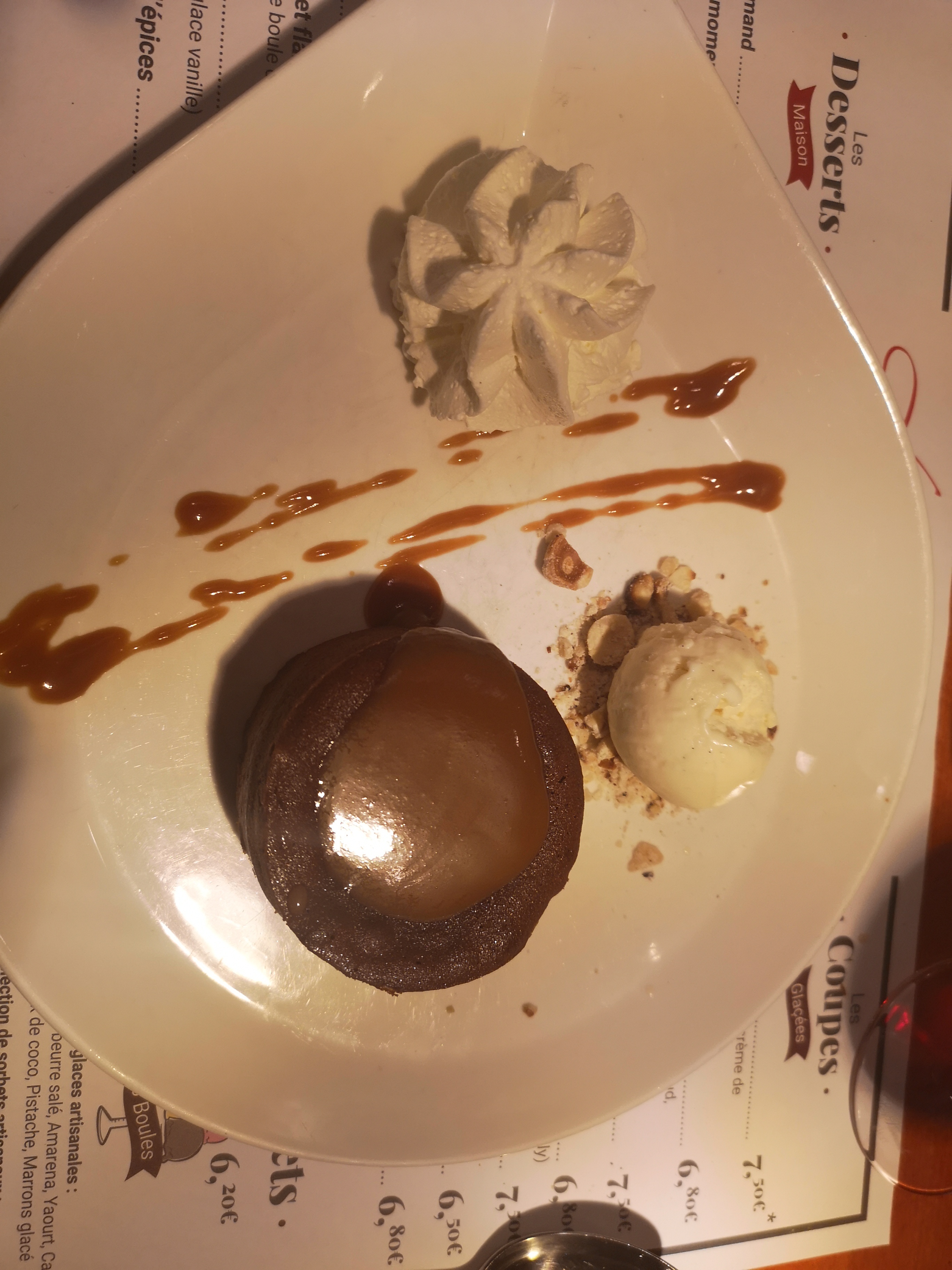 Très bon accueil très beau cadre de l humour sourire vraiment sympa par contre je sui fan des profiteroles elle était bonne mais pas les meilleurs de ma vie et la présentation a amélioré