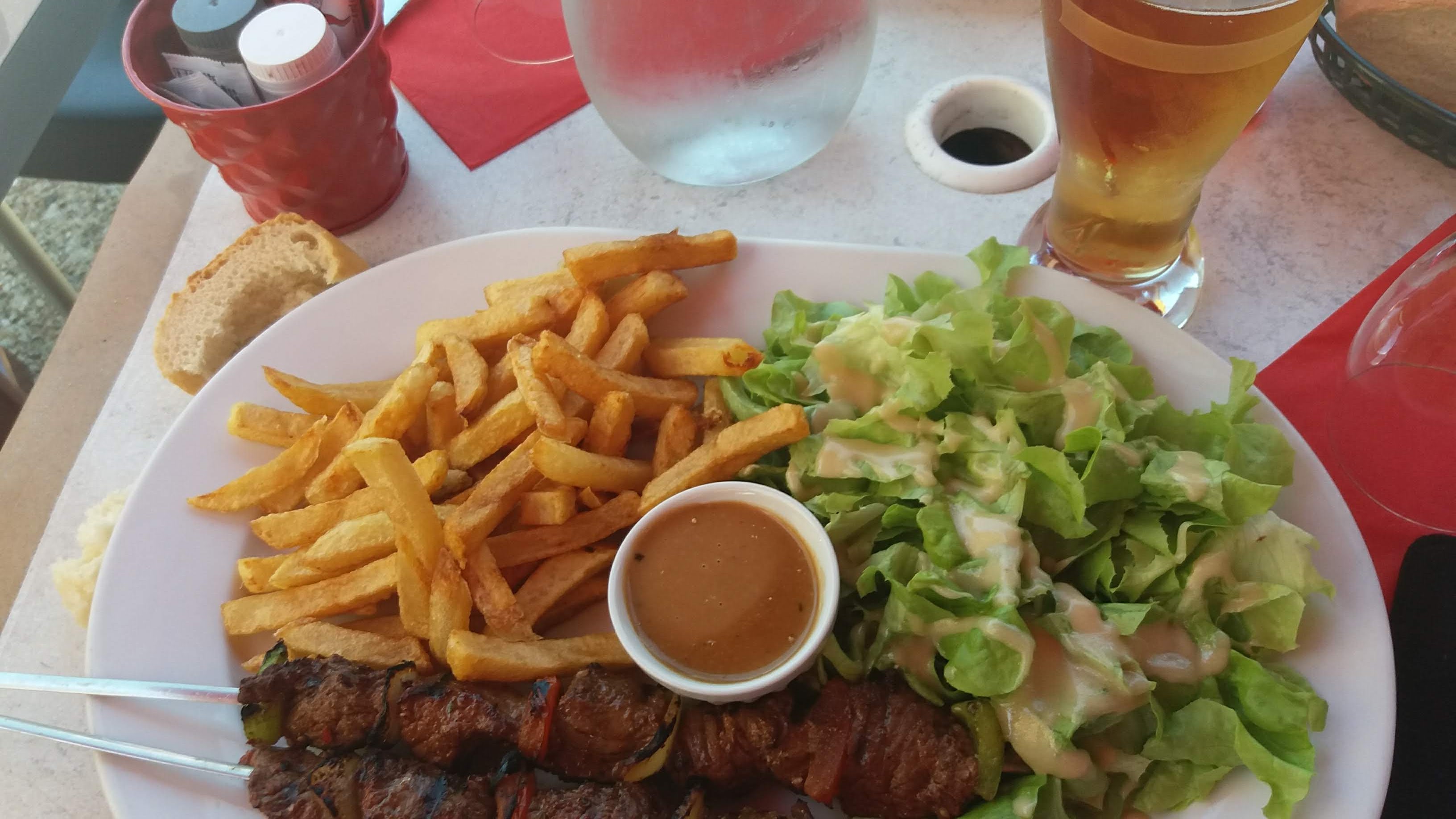 Brochettes de boeuf très bonnes et copieuses. La coupe glacée très bonne également. A refaire