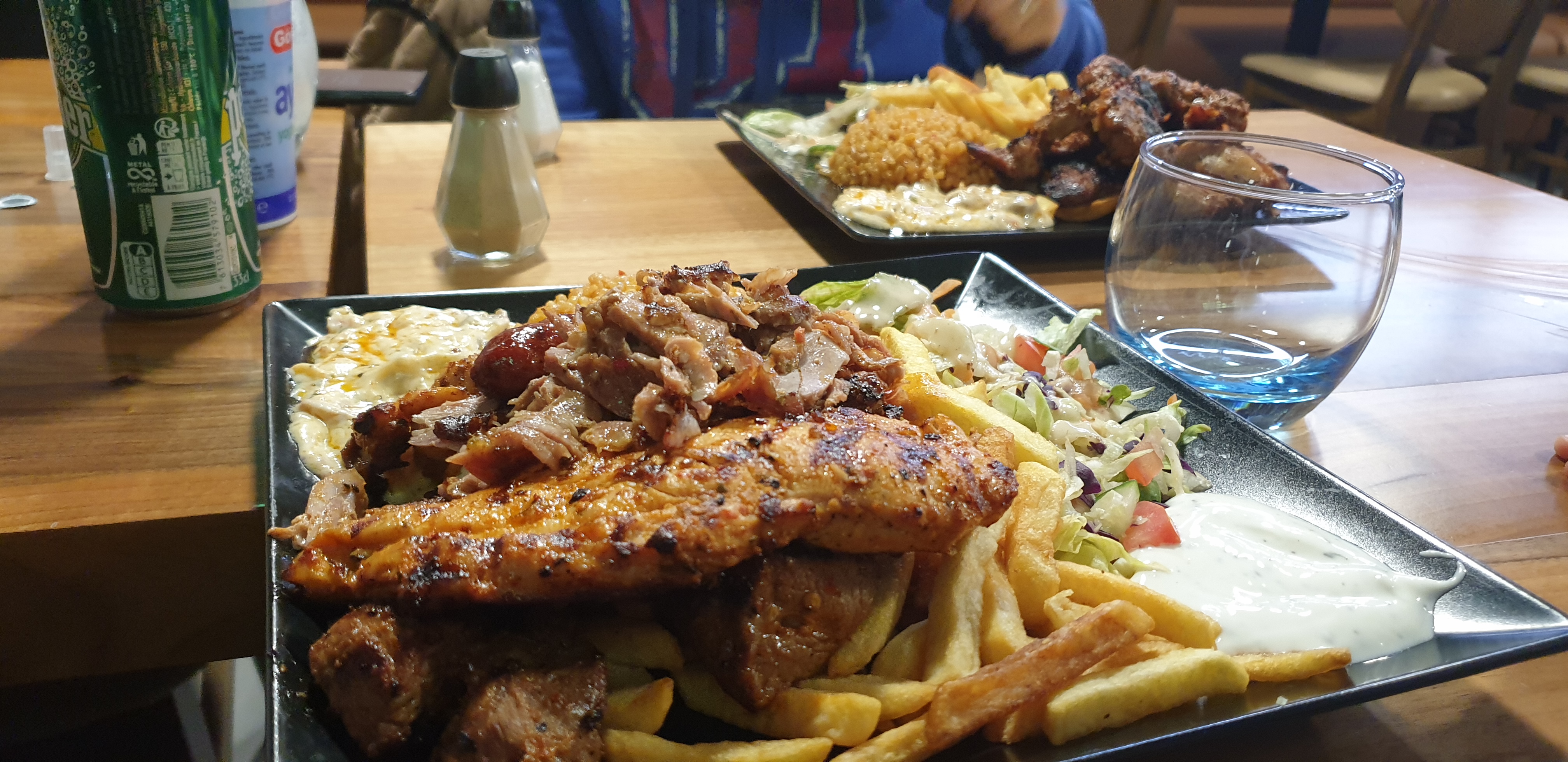 Services à table très long car le service aux commandes a emporter était privilégié. La viande manquait de goût je pense parce qu'il n'y avait pas d'agneau ou mouton dans la brochette a kébab. Les assiettes sont tout de même bien fourni.