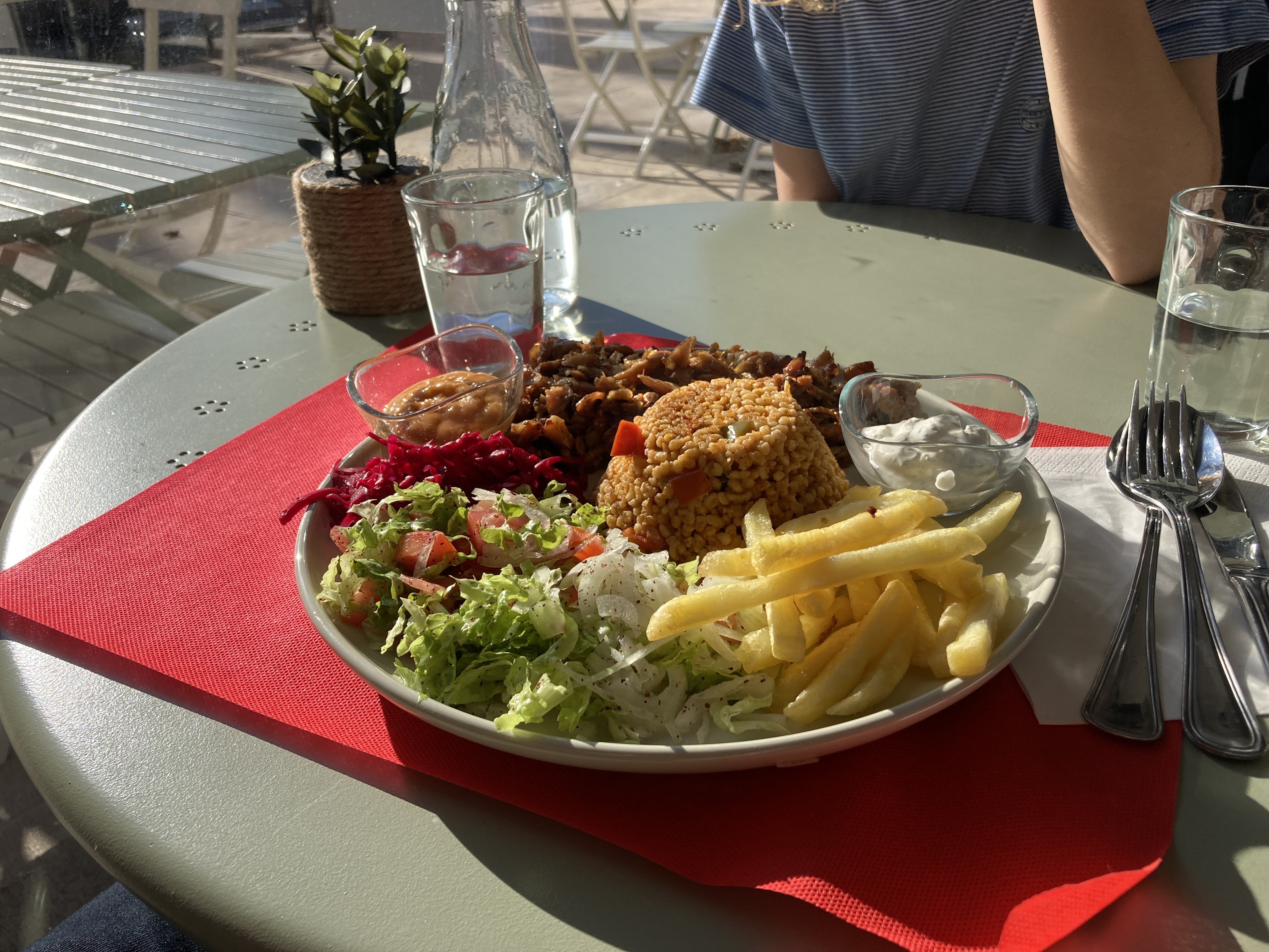Déjeuner sympathique au soleil pour une assiette kebab. La personne qui m a reçu est très discrète gentille et serviable. Très bonne expérience