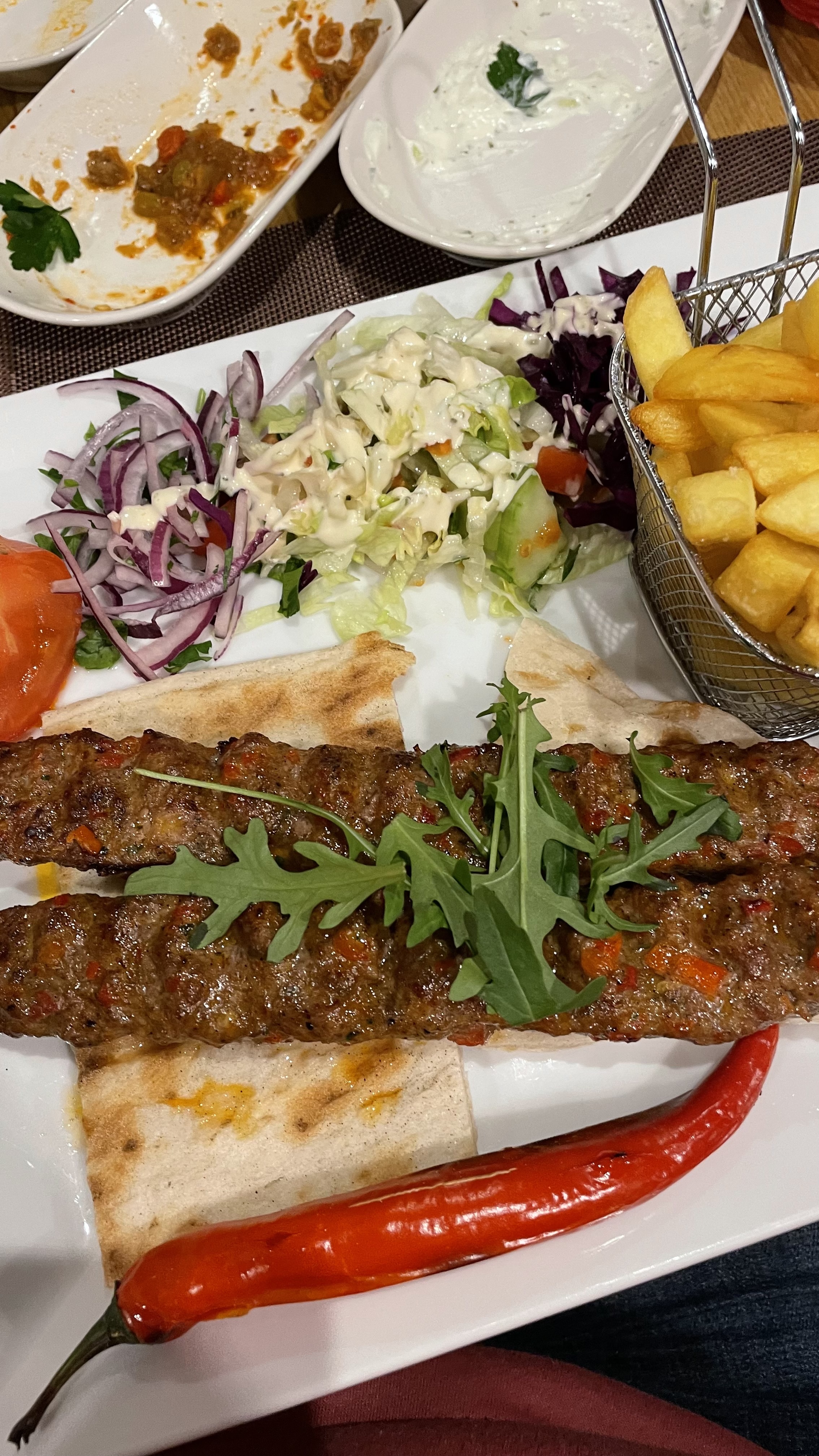 Très beau restaurant avec une belle carte, les plats sont très bon. J'ai pris l'adana et c'est vraiment délicieux. La brochette d'agneau est fondante. Dommage pour la sauce blanche top. Il y a pas mal d'attente et il fait un peu chaud dans le restaurant.