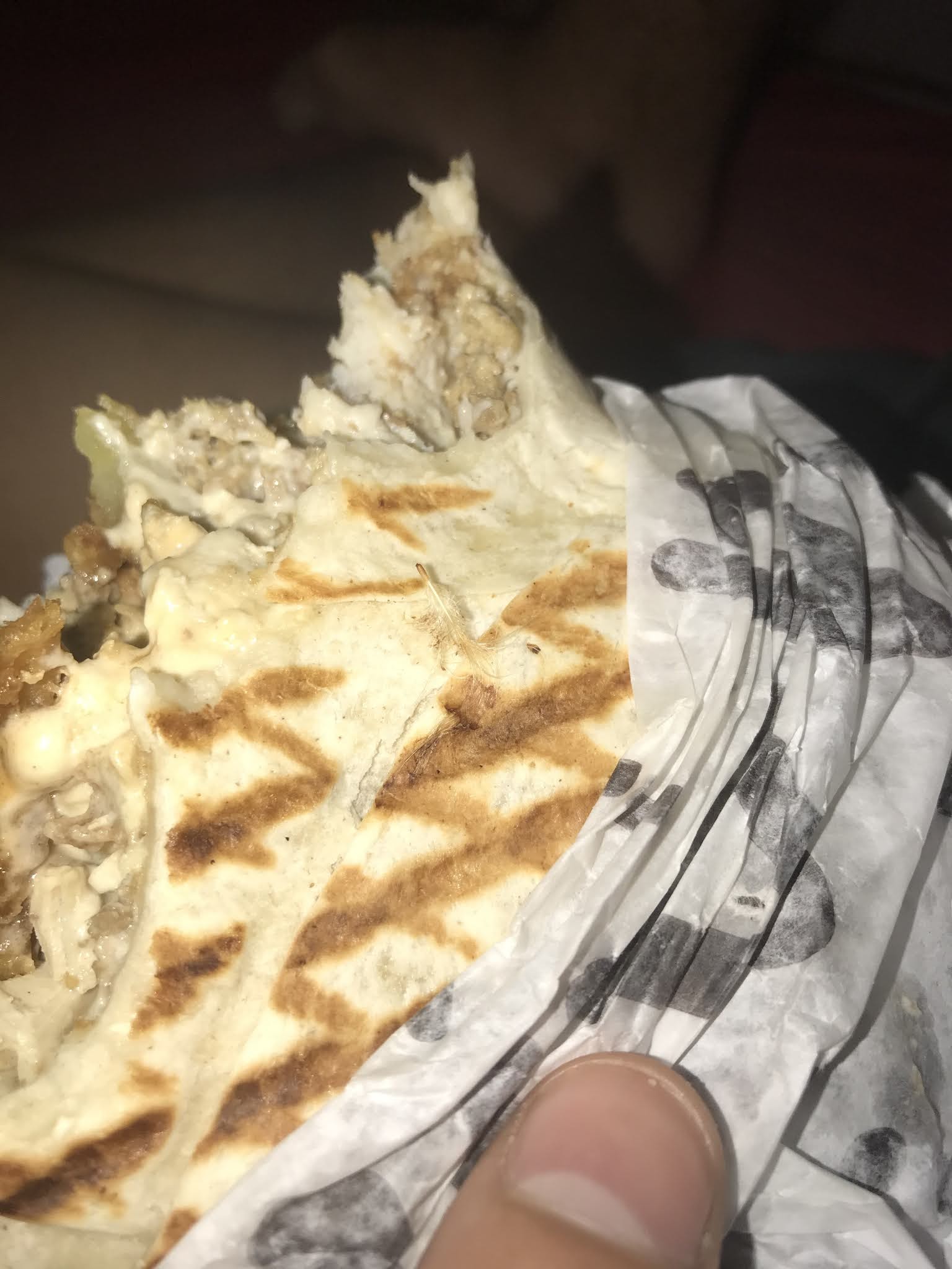 J'ai commandé un tacos et un kebab par le biais de uber eats dans la soirée. Je déballe, mange plus de la moitié avant de me rendre compte de la présence d'une plume dans la pâte du tacos! C'est une honte c'est pire que dégueulasse et je me demande comment elle a pu arriver ici si ce n'est par la négligence des employés. Je ne recommande absolument pas cet endroit, fuyez et n'y mettais jamais les pieds. Degueulasse ne mérite même pas l'étoile qui est obligé parce que j'en aurais mis aucune! J'ai aussitôt demandé le remboursement et informé la plateforme de ce que servait grillade et tacos à ses clients. Cela met un doute sur l'hygiène qui doit circuler dans ce restaurant. En éspèrant ne pas être en plus malade par la suite.