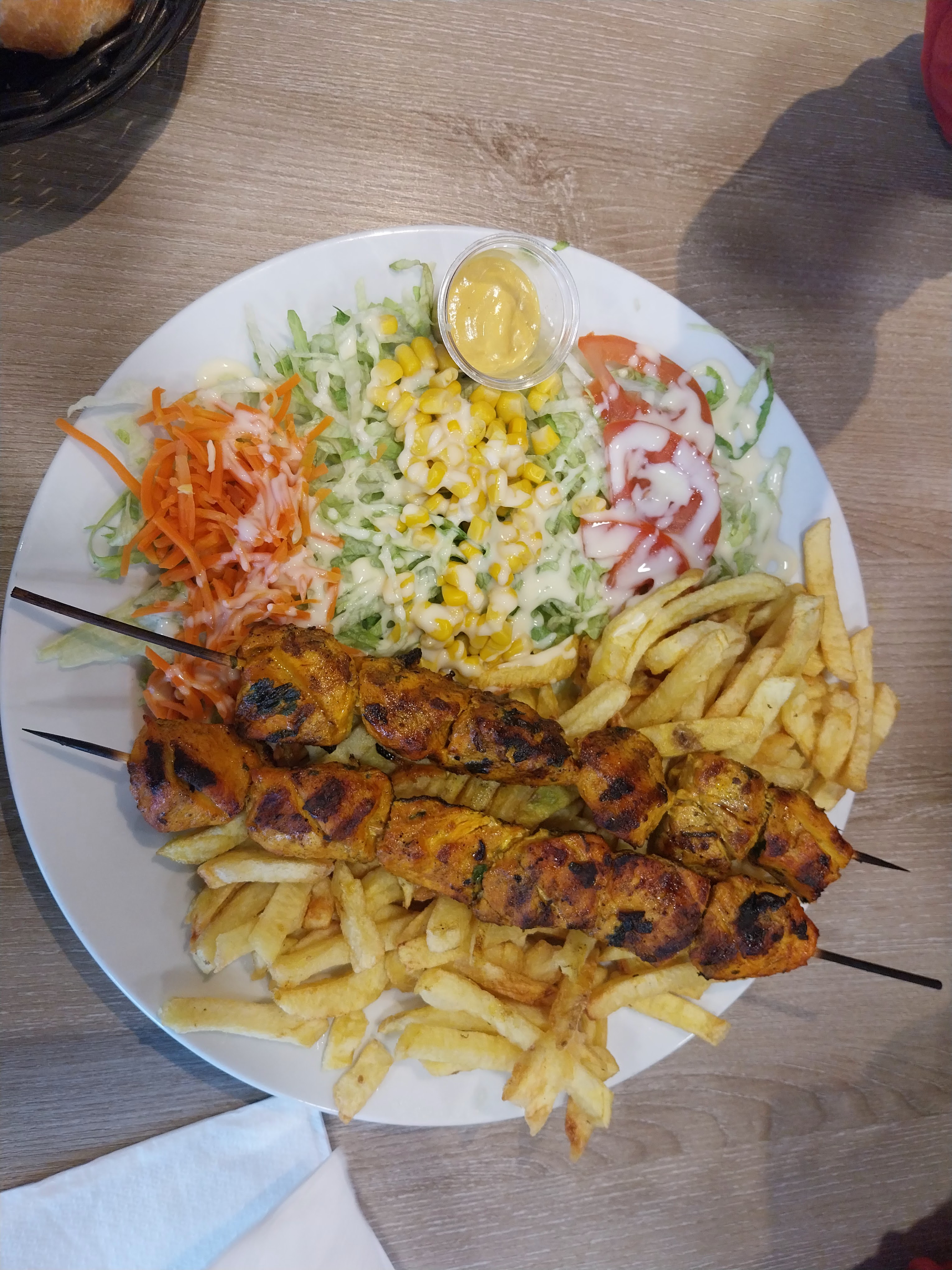 J ai pris les brochettes de boeuf : délicieuses accompagnees de leurs sauces, salade copieuse et frites qui se mange sans fin. Et tout ça pour un tarif incomparable ! Et le service est rapide, Je met un 10/10 pour la propreté de l établissement. Si vous aimez la viande vous êtes à la bonne adresse.