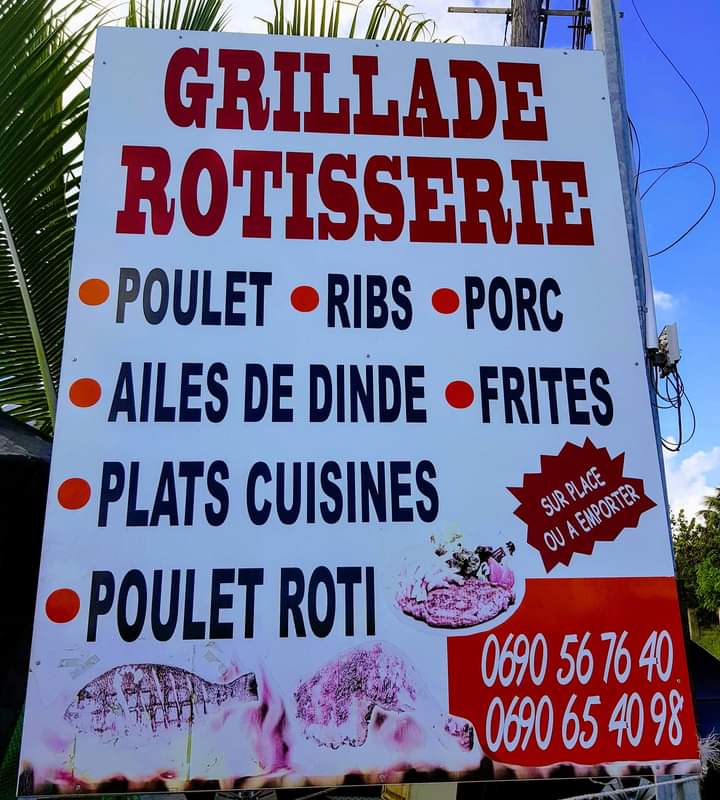 Grillades, frites et riz créoles, très bon. Prix abordables, A emporter, ou sur lace il y a de grandes tables, ambiance conviviale. Nous recommandons à nos locataires cette bonne adresse à 5 minutes de la @VillaBlueLagoonStFrancois