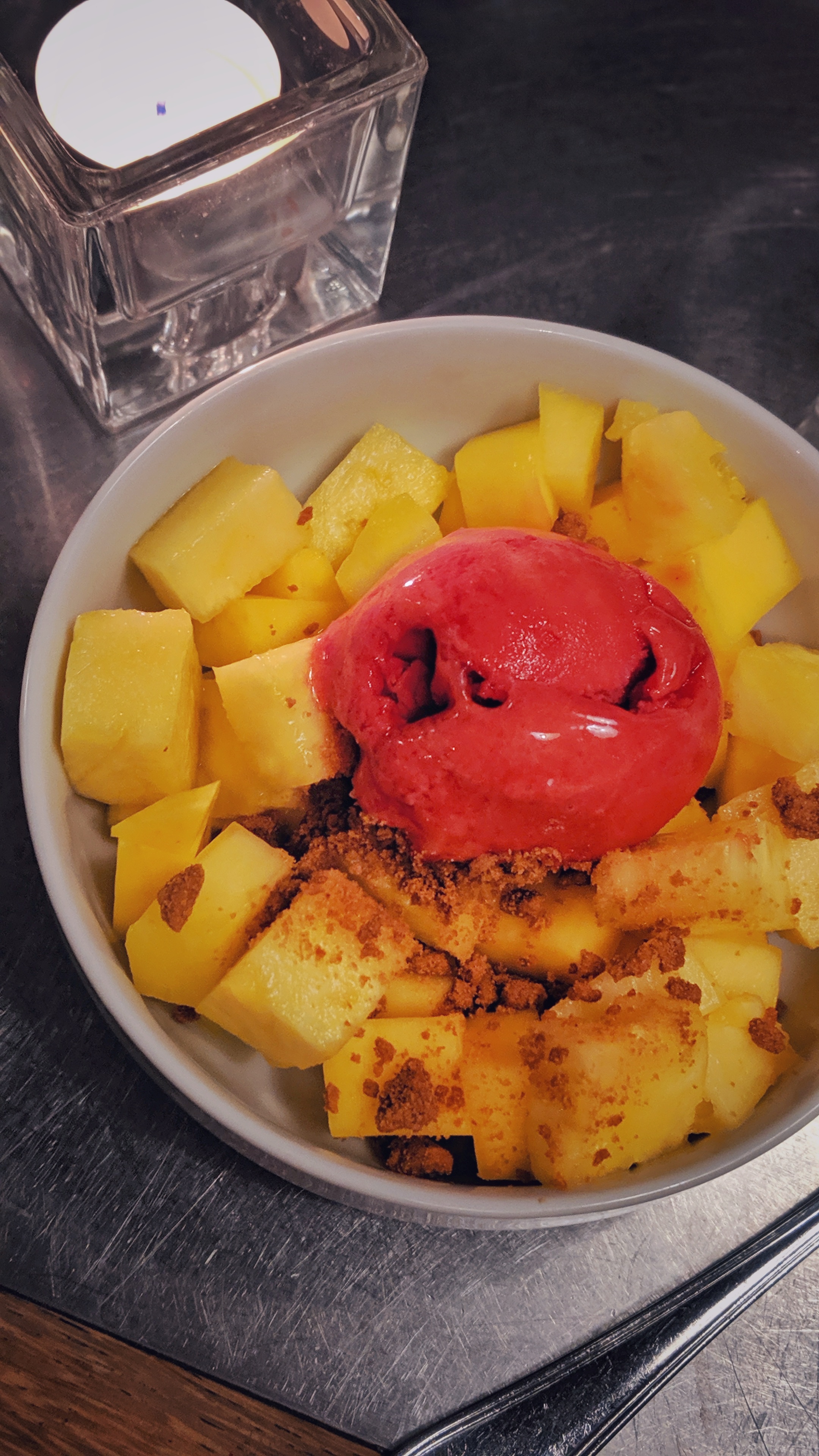Bonne adresse ❤️ Accueil souriant, lieu agréable et de bons produits frais et cuisinés maison, quoi demander de plus ! 🤩 J'ai pris une entrecôte charolaise maturée, avec des pommes dauphines maison 🍽️ Le vrai régal d'une viande délicieusement tendre, en contraste parfait avec le croustillant des pommes dauphines et fondantes à cœur juste comme il faut 😋 Accompagné d'un verre de Merlot 🍷 c'était juste top ! En dessert, de la fraîcheur et légèreté, avec un ananas, mangue, spéculoos et sorbet framboise 🍍🥭🍨 Une bonne adresse donc, que je retiens et recommande vivement 🙌