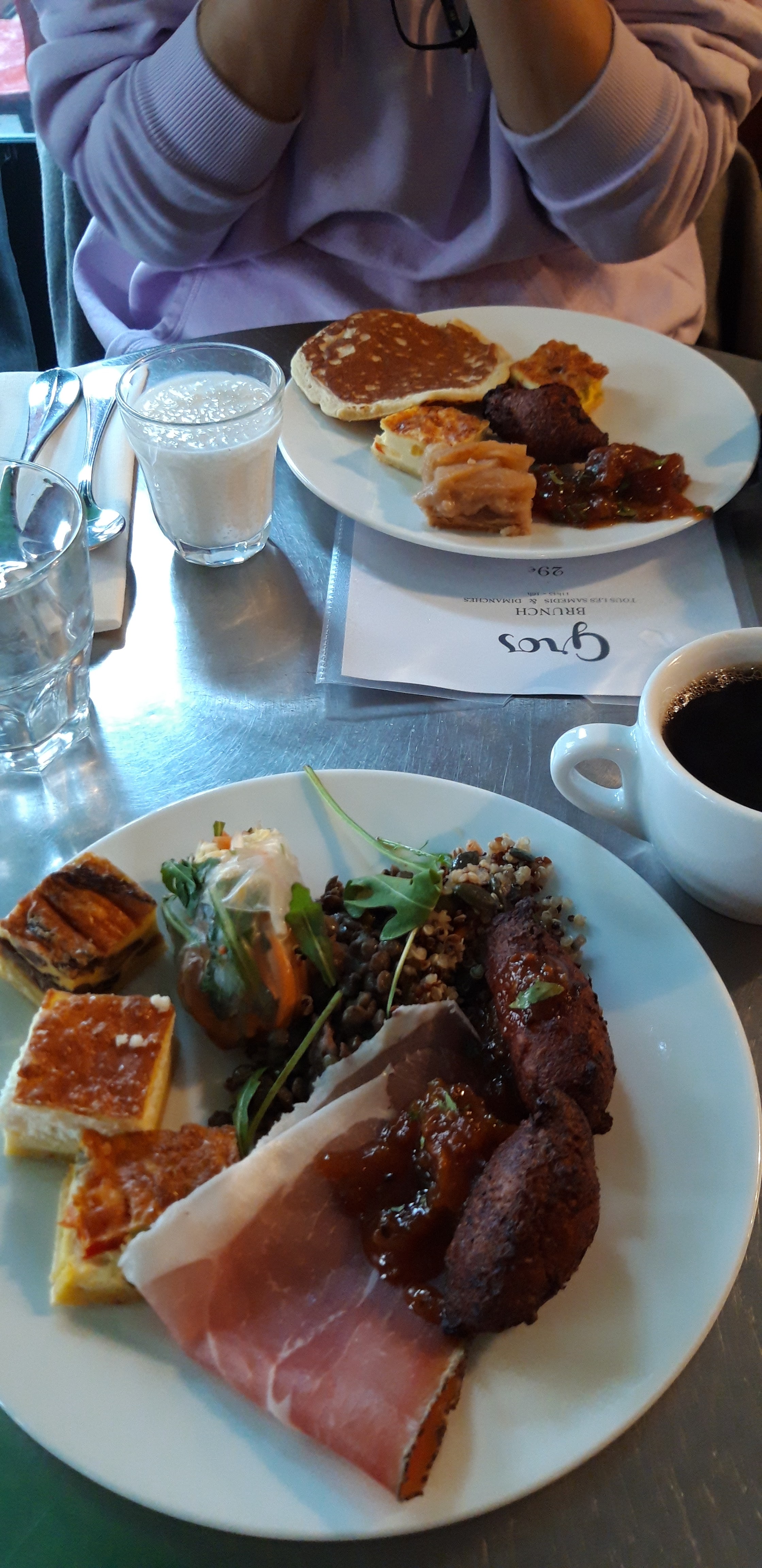 Les 2 plats salés du brunch sont excellents ! Le lieu est calme et sympa. Un peu cher tout de même (29€).
