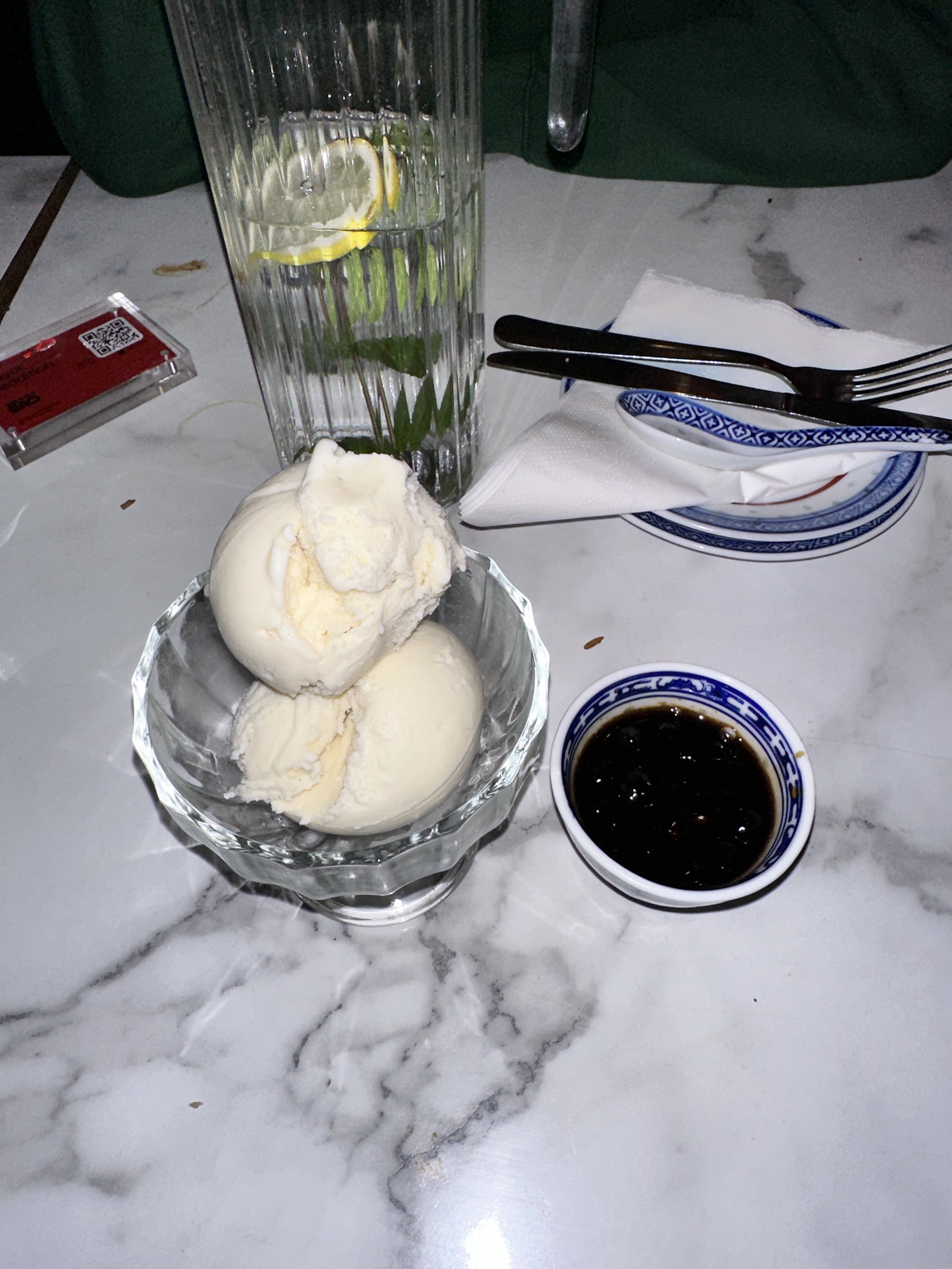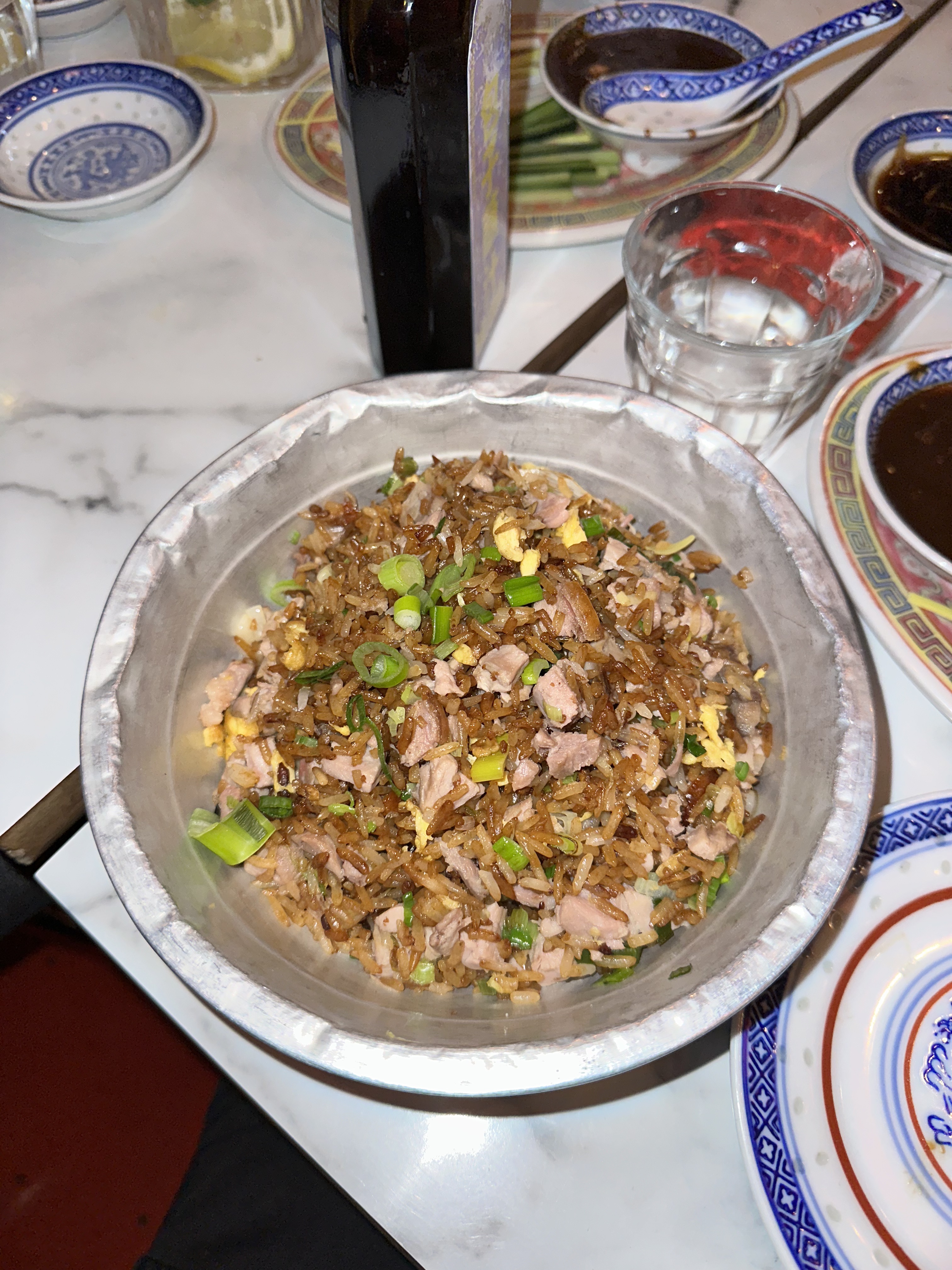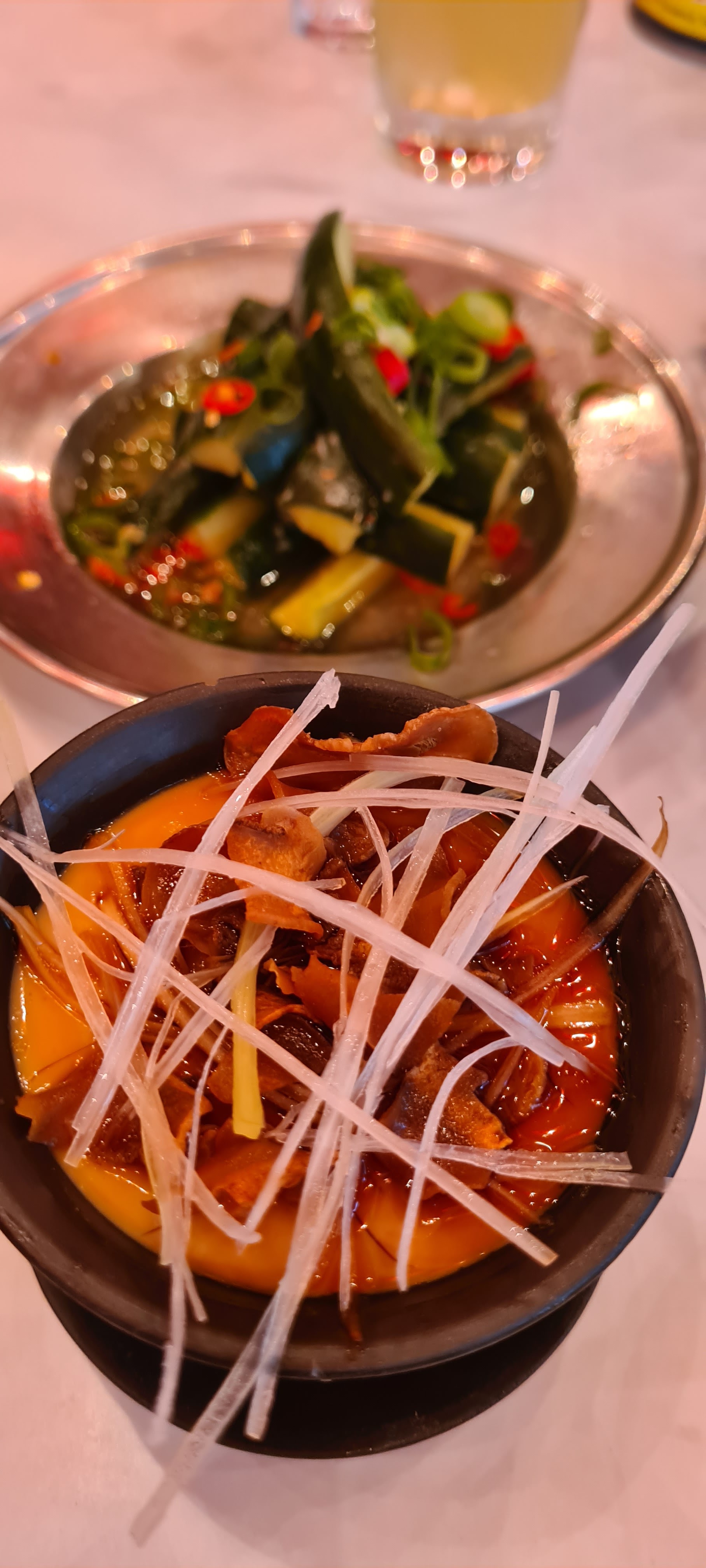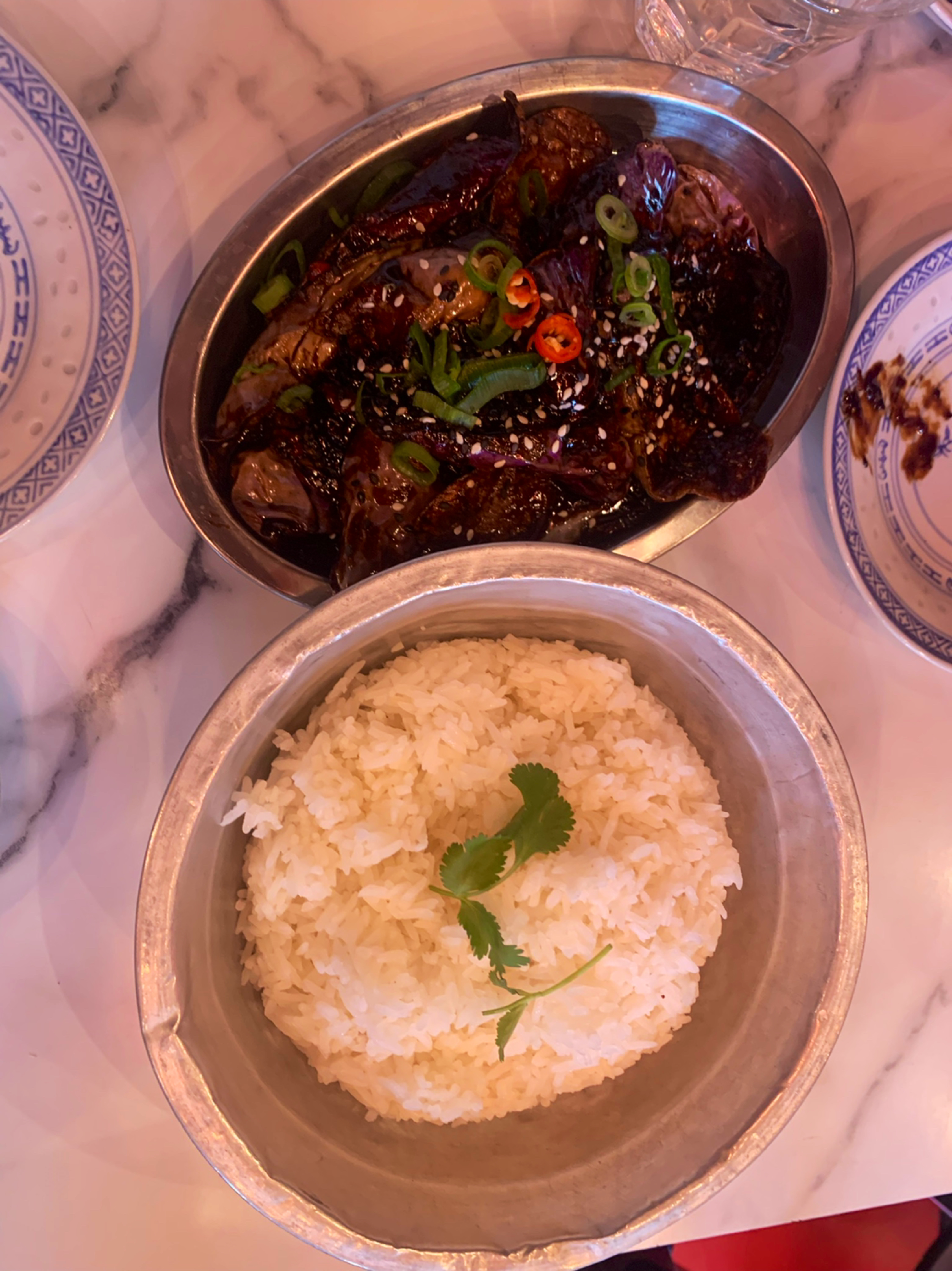 Sincerement un peu fatigué de ces restaurants tres instagramable TRES bien decorés ou en arrivant on voit 3/4 des clients sont des touristes etrangers....le canard laque est au meme prix que chez Yinan et hugo ( l'un des meilleurs de Paris) sauf qu'il est juste pas mal et surtout TRES grossierement decoupee....les aubergines froides en entree sont a 8 euros il y a difficillement pour 3 bouchees ( voir photos)...les aubergines chaudes trop grasses.... on est assis sur des tables de 50 cm de large mais surtout des chaises metaliques retro super inconfortables ( voir photo)..le tout pour 100 euros a 2...avec un service parcontre totalement authentique (chinois...) meme si les setveurs sont Europeens !!! bref un concept marketing avec le quel j'ai un peu de mal.