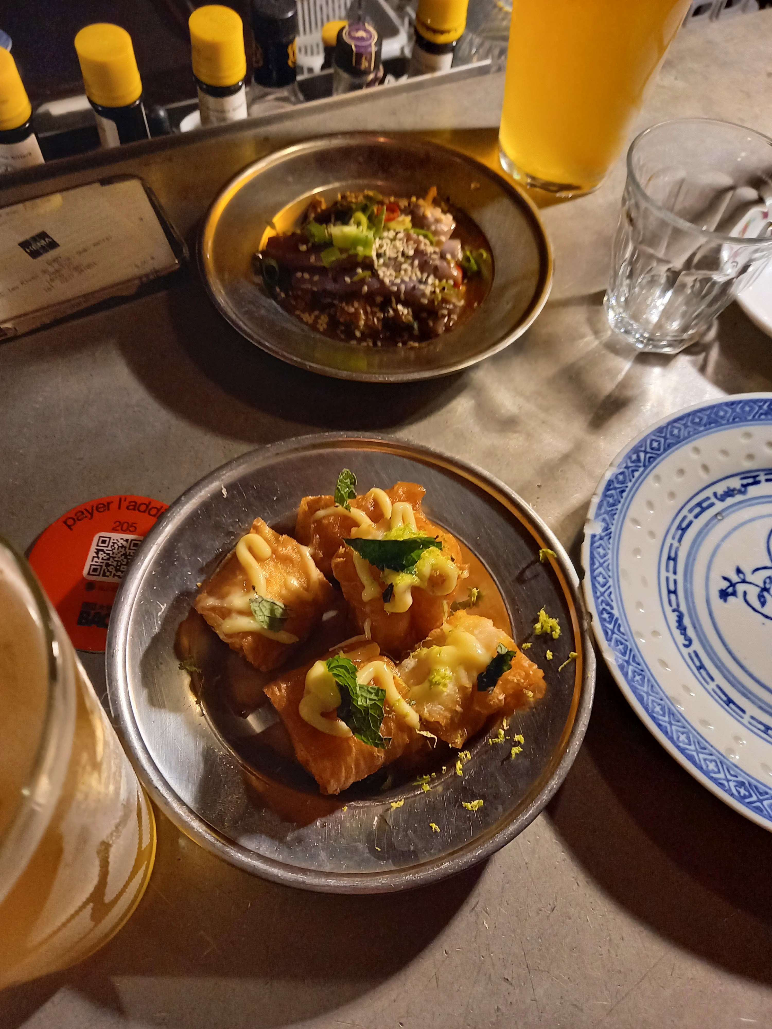 J'ai mangé sur place (midi) : un bruit infernal. Je ne suis pas contre une bonne ambiance, mais là, ça te fout direct la migraine. Difficile d'ailleurs pour les serveurs d'entendre les clients. Le décor est pourtant plutôt sympa. Sinon : nourriture correcte. Le moins réussi de ce que notre table a mangé c'est sans aucun doute les baos (peu de garniture, viandes fades, pas de sauce.). Des plats sympas, surtout ceux qui osent les épices. Bière en collab sympa. Correct mais pas waouh, surtout au vu des prix pratiqués et des quantités. Expérience décevante.