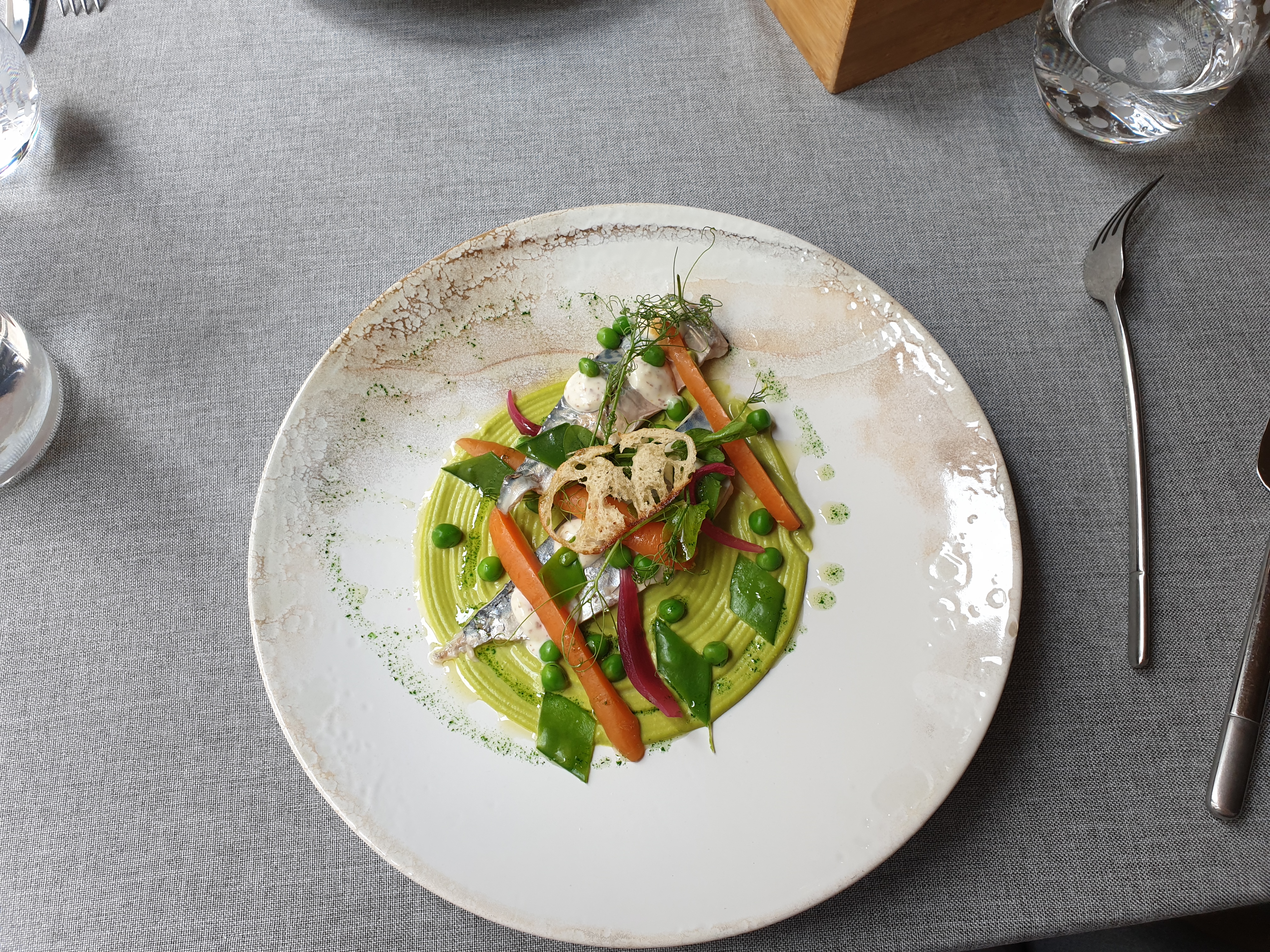 Excellente cuisine, saveurs et mise en valeur des produits. Service agréable , jeune , fluide . Un bémol lié à la saison hivernale : un petit courant d’air froid dans les jambes pendant le dîner !