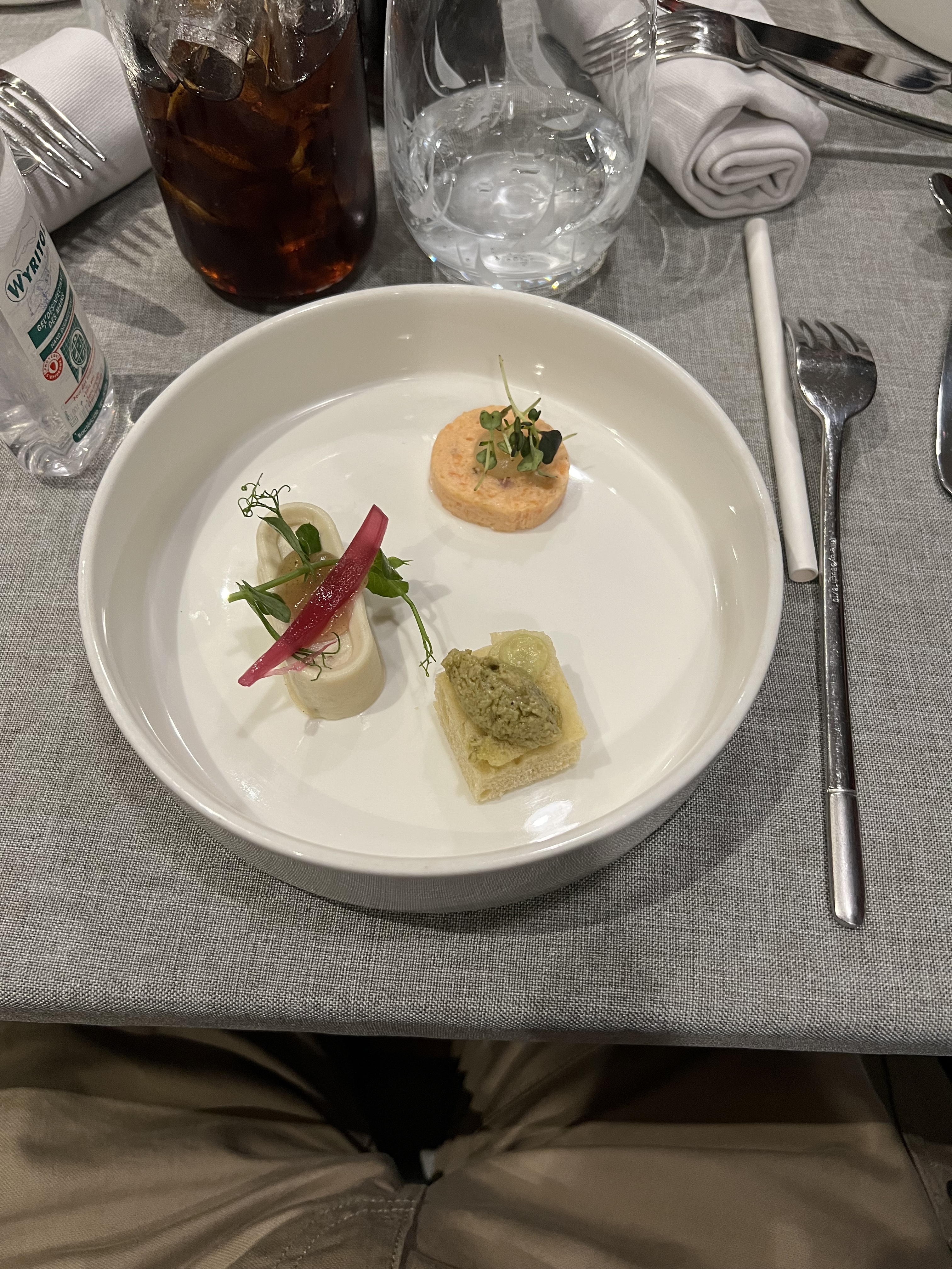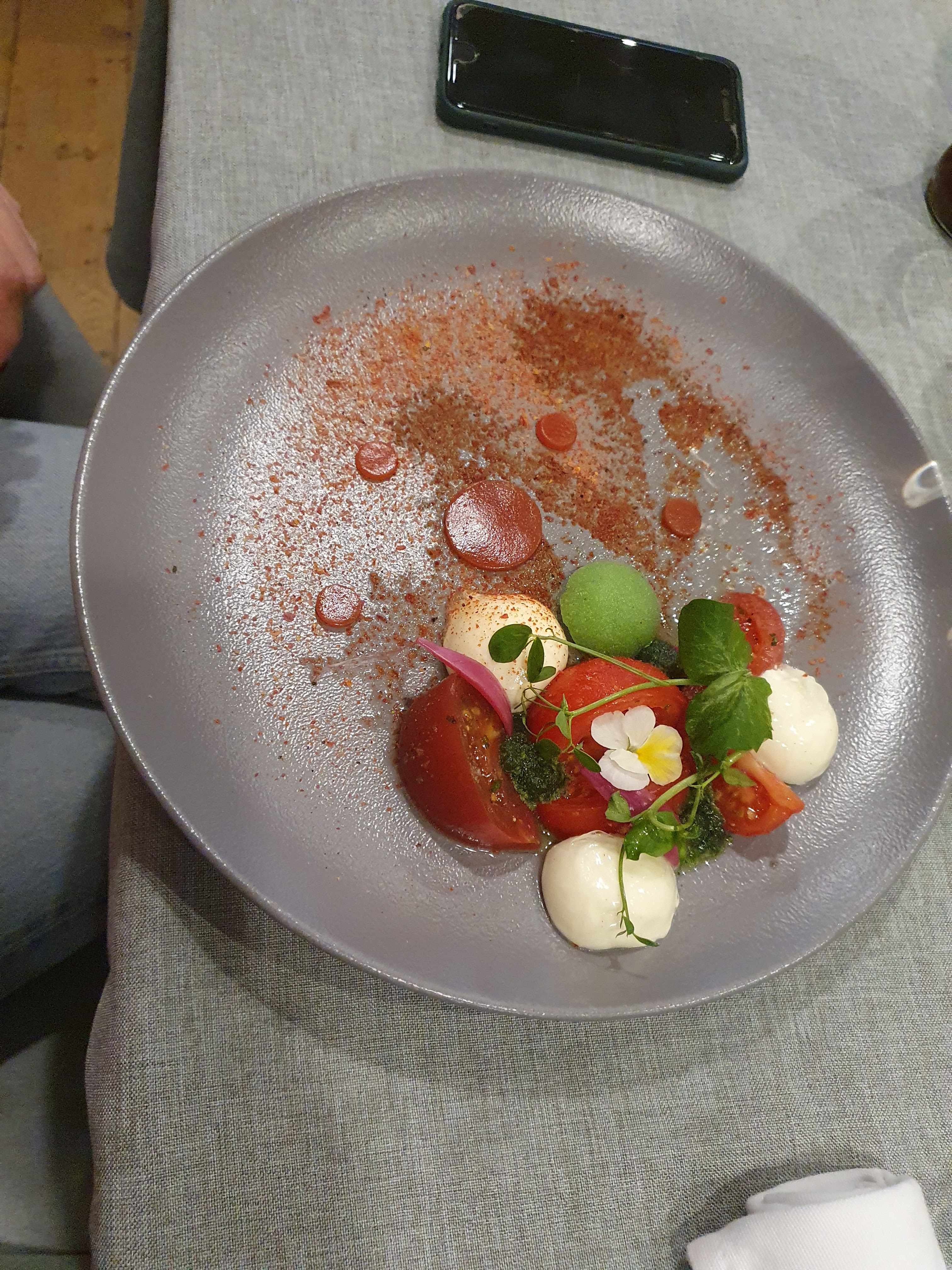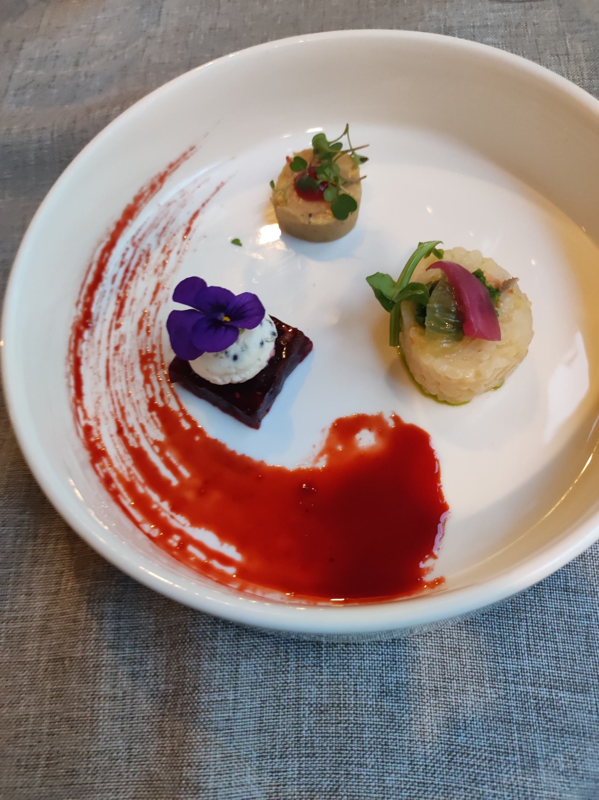 Les plats étaient tièdes .C'est une cuisine vraiment trop minimaliste !Le foie gras fade il manquait une petite brioche pour accompagner .Le pain pas exceptionnel . Les portions et les garnitures sont tellement petites qu'il est impossible d'apprécier les saveurs .Ce concept de restauration ne nous a pas convenu bien que tendance . L'addition est beaucoup trop élevée et le service moyen . Nous avons été déçus.