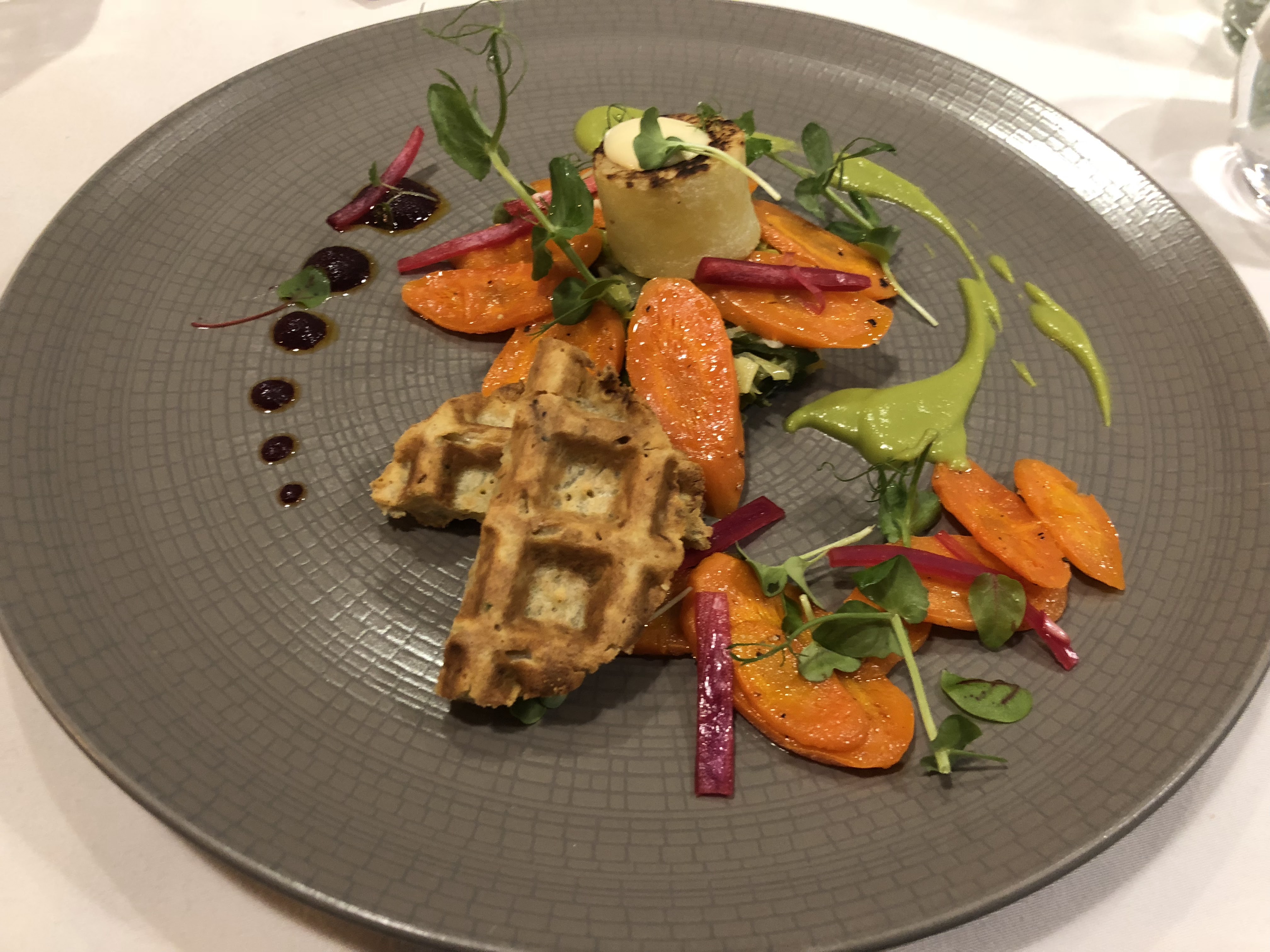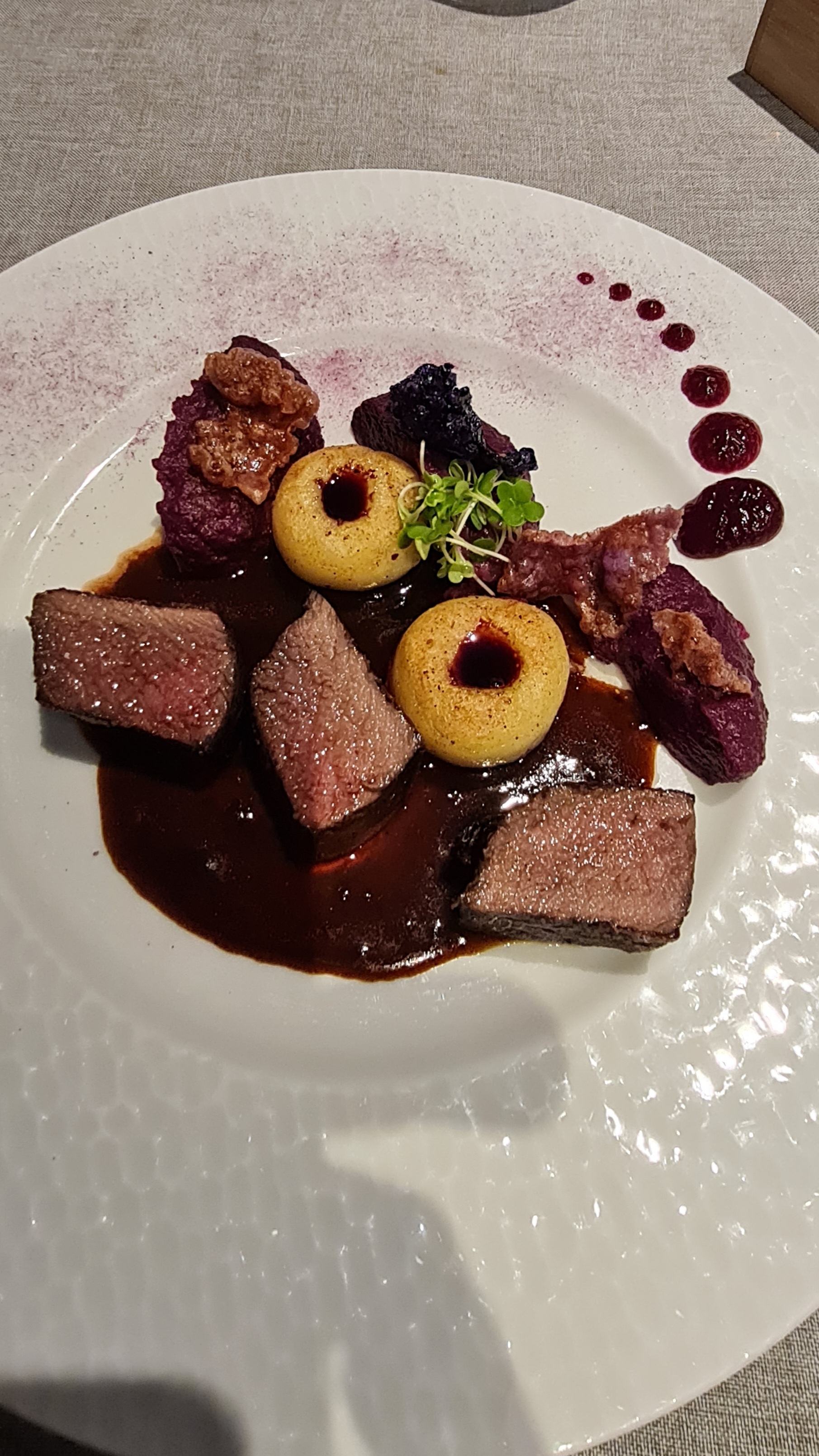 Menu dégustation, sur invitation, 56€. Belle expérience, mais avec plusieurs bémols. Points positifs : accueil et service agréables et sympathiques, plats visuellement très réussis, gustativement également pour la plupart, notamment les noix de Saint Jacques. Les nuances : en 3eme assiette, encore du foie gras, comme en mise en bouche, mais en plus grande quantité, certes travaillé différemment, mais cela pèse sur l'estomac et fut redondant. Le cerf: cuisson de la viande imposée, ce qui ne convint pas à mon épouse. Le snack de poisson: nettement trop cuit, sec, décevant. Le dessert au citron: la cannelle, en trop grande quantité, a tué les autres goûts. Au total, un bon moment, mais quelques déception, à ce niveau de prix.