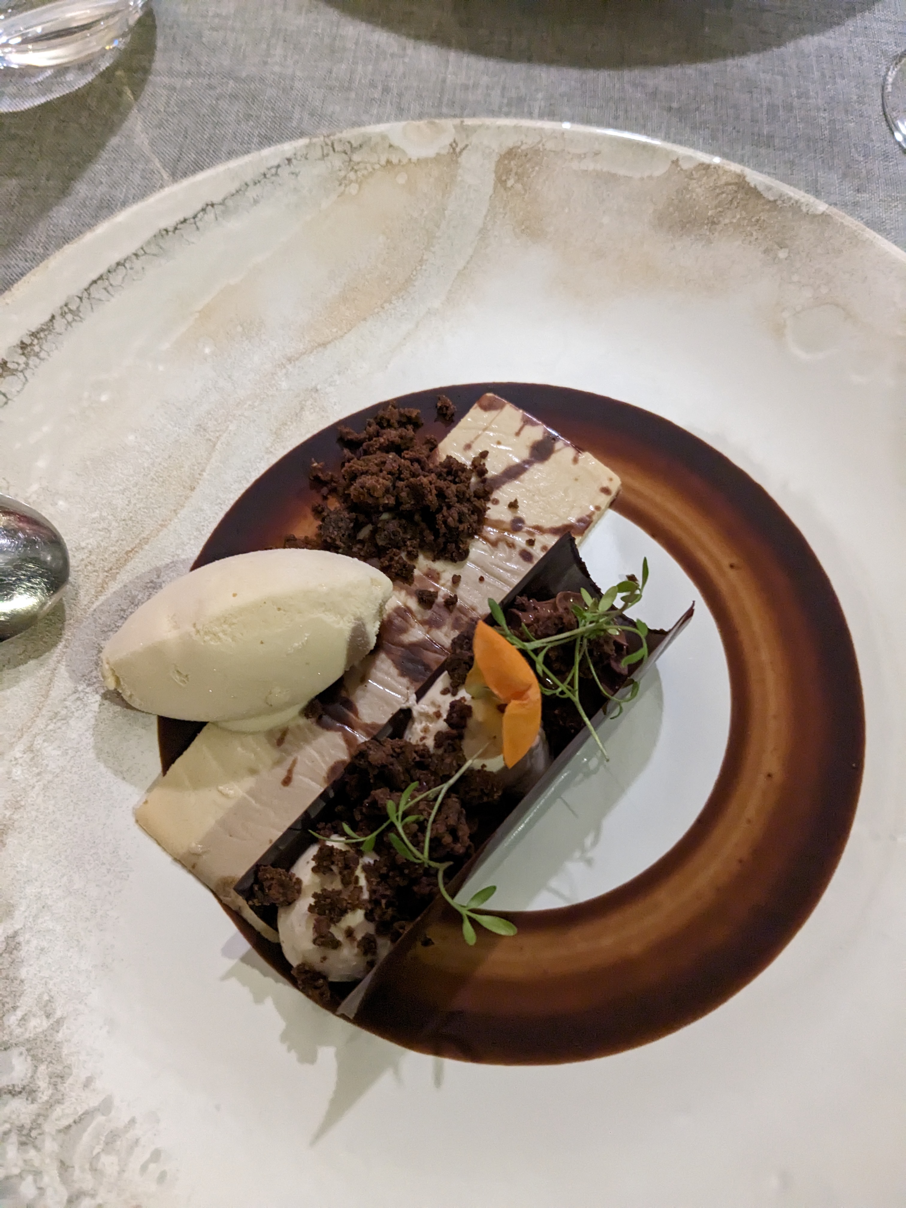 Nous avons passé un moment très agréable et tout était parfait de A à Z, merci 🙏 Félicitations à la cuisine pour nous avoir fait voyager tout au long du repas et bravo pour votre dessert autour du chocolat et panais (je suis moi même pâtissière avec une spécialité en dessert à l'assiette)