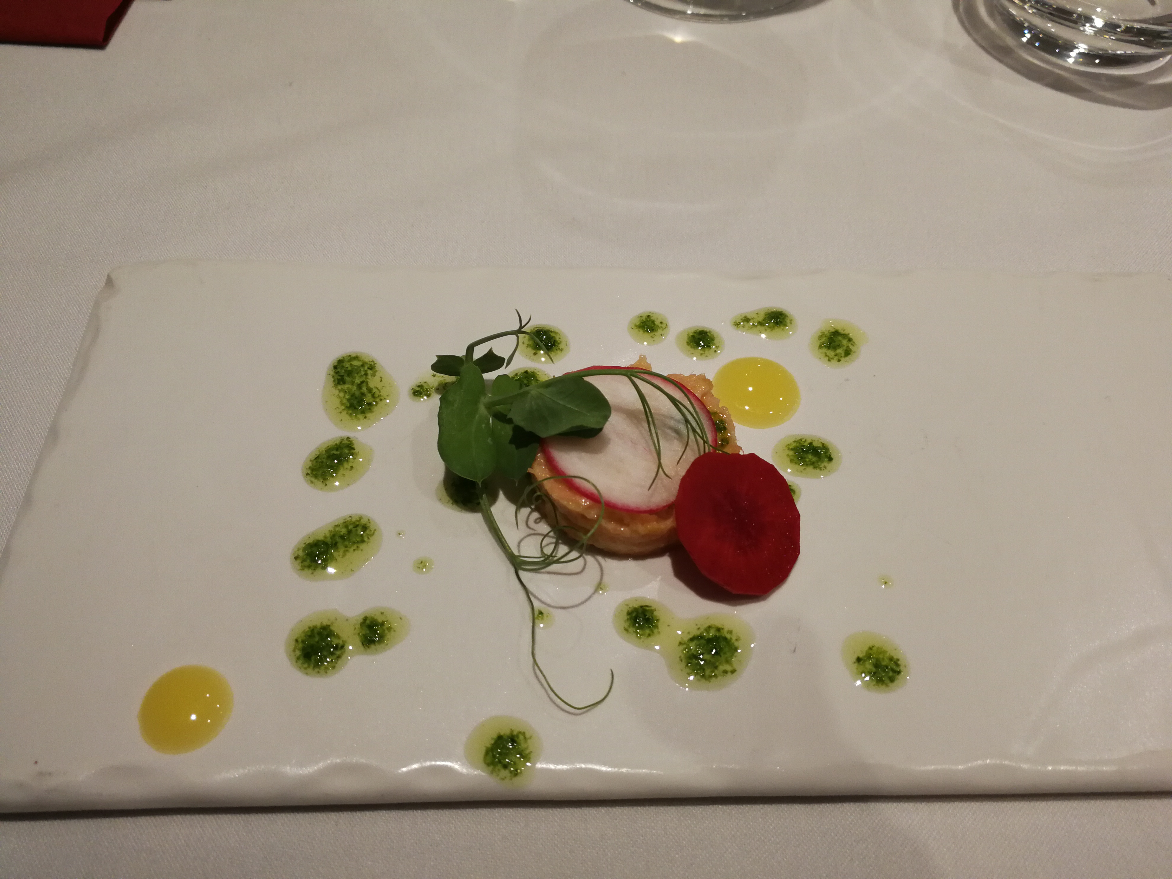 Très très bon restaurant ! Les plats sont beaux et délicieux, aucune fausse note dans les assaisonnements et mélanges de saveurs... 2 bémols cependant : le menu dégustation mériterait des portions un peu plus conséquentes et le pain est moyen, c'est vraiment dommage.