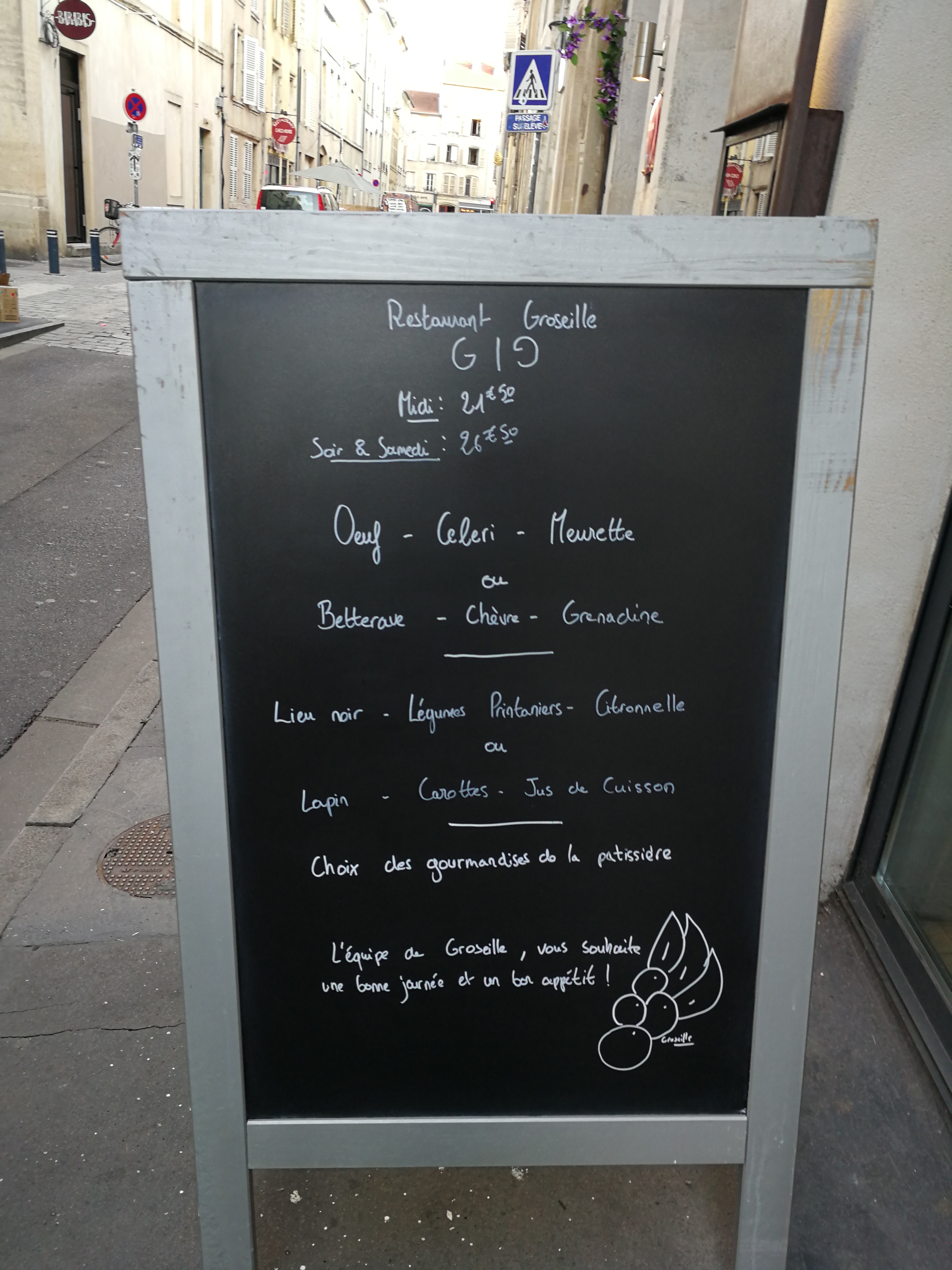 Tout d'abord, je tiens à préciser que Groseille est une très bonne table à Nancy et en l'occurrence un de mes restaurants de prédilection. J'y vais toujours avec plaisir mais je fus très étonné récemment, lors d'un dîner professionnel de constater quelques dysfonctionnements. Tout d'abord, pas assez de cartes pour tout le monde ; il faut attendre que les autres tables aient fait leur choix pour pouvoir prendre connaissance du menu. Ensuite, le serveur nous explique qu'en lieu et place du turbot, ce sera du cabillaud. Evidemment pour le même prix. A la place du homard, ce sera des Saint-Jacques. Même prix aussi. L'ardoise située à l'extérieur du restaurant mentionne bien du turbot et du homard. je pense à ces gens qui sont entrés dans le restaurant, alléchés par un affichage extérieur qui ne tient pas ses promesses. Est-ce si compliqué, d'abord, de mettre les cartes à jour et ensuite d'en imprimer en nombre suffisant ? Attention, une réputation se défait beaucoup plus vite qu'elle ne se fait. Ce serait dommage car il s'agit d'un très bon restaurant. Ressaisisez-vous !