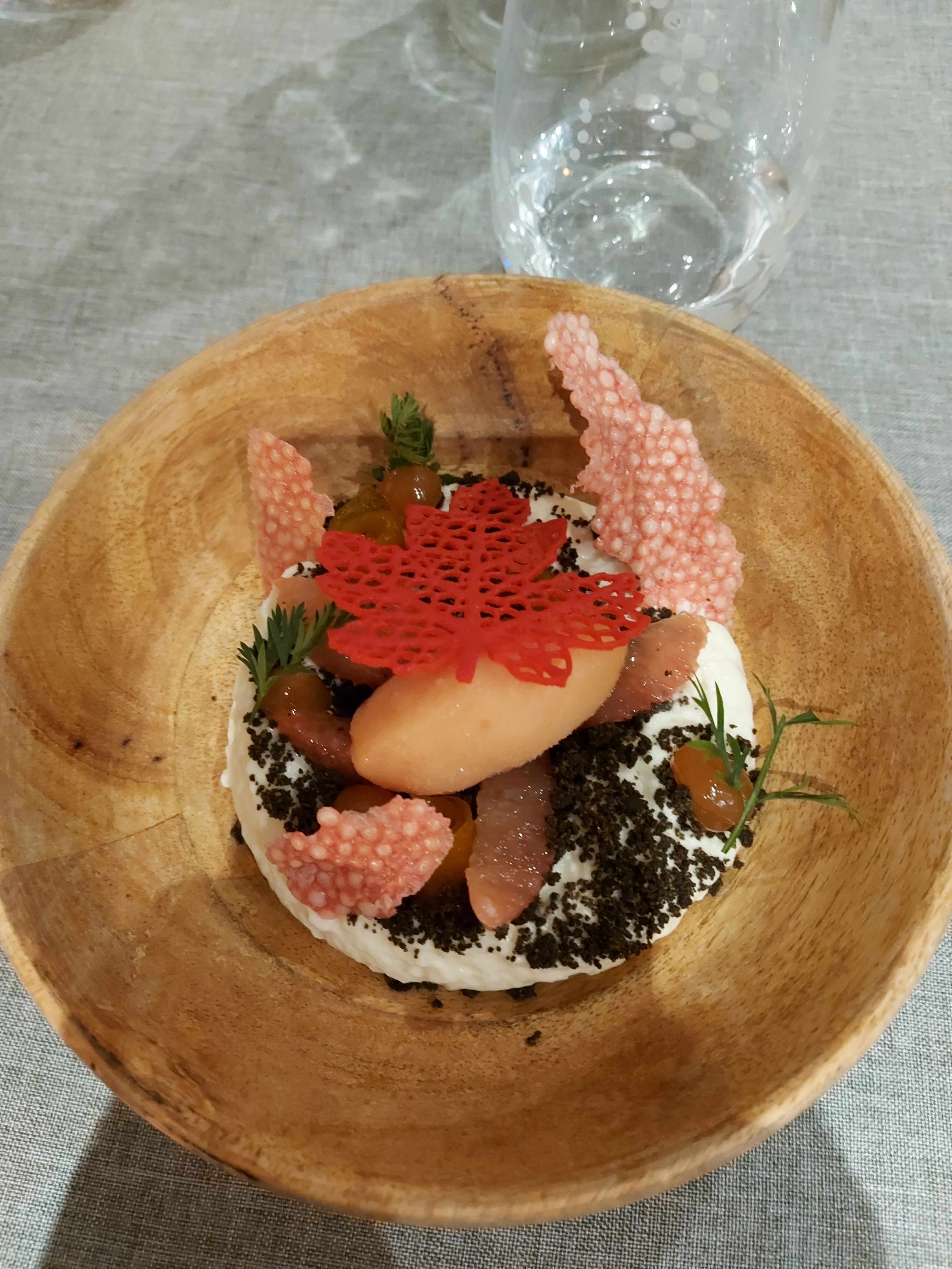 Un dîner parfait, des mises en bouche au dessert avec de très bonnes explications de chaque plats. Merci, j'ai passé un bon moment culinaire.