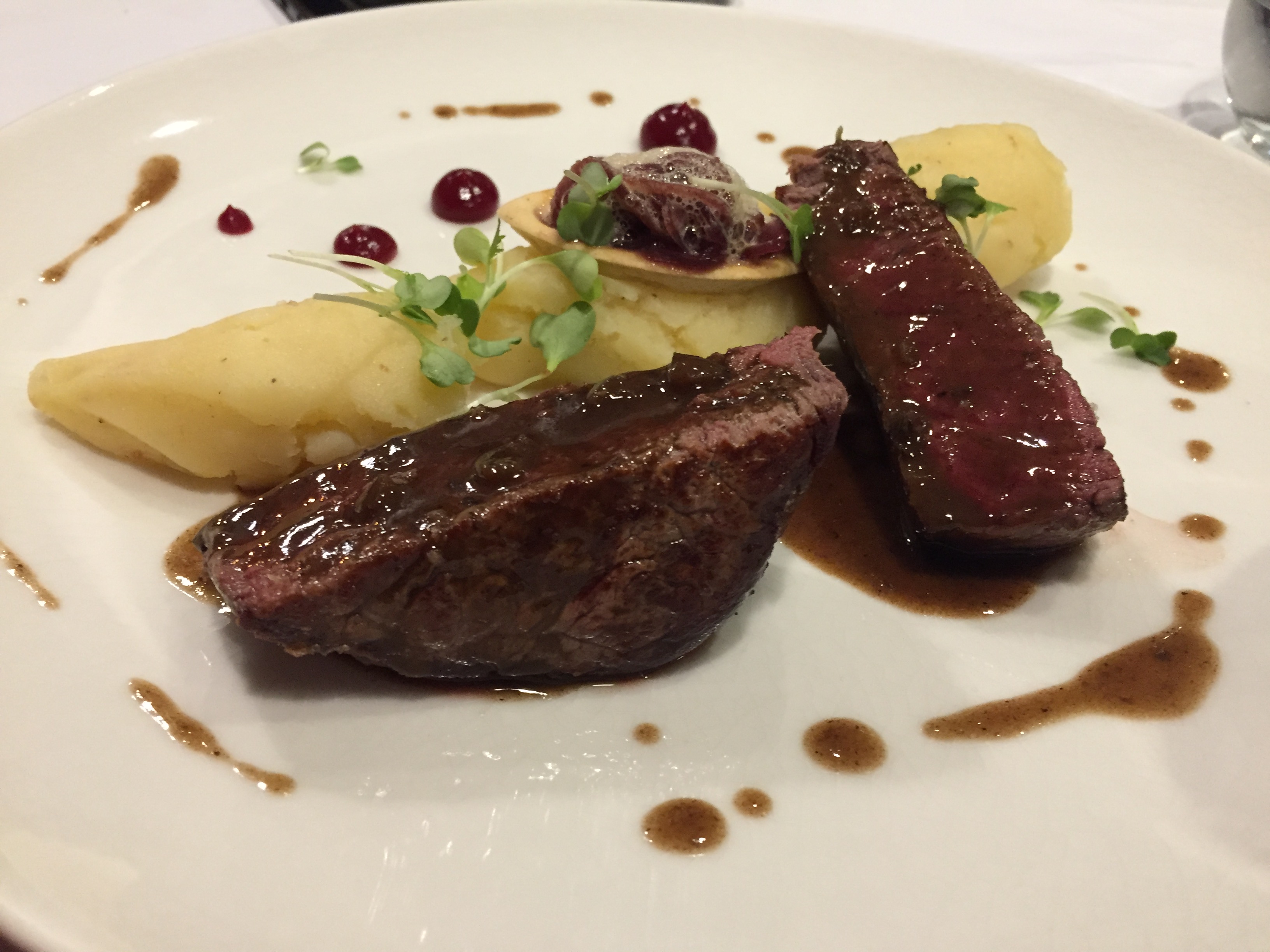 Nous avions réservé pour un déjeuner. Le service était impeccable. Le repas très bon et fin. Une petite fausse note sur un filet mignon qui nous semblait un peu trop ferme. Nous l’avons fait remarquer et la maison nous a offert le café pour corriger le tir ce que nous avons apprécié.