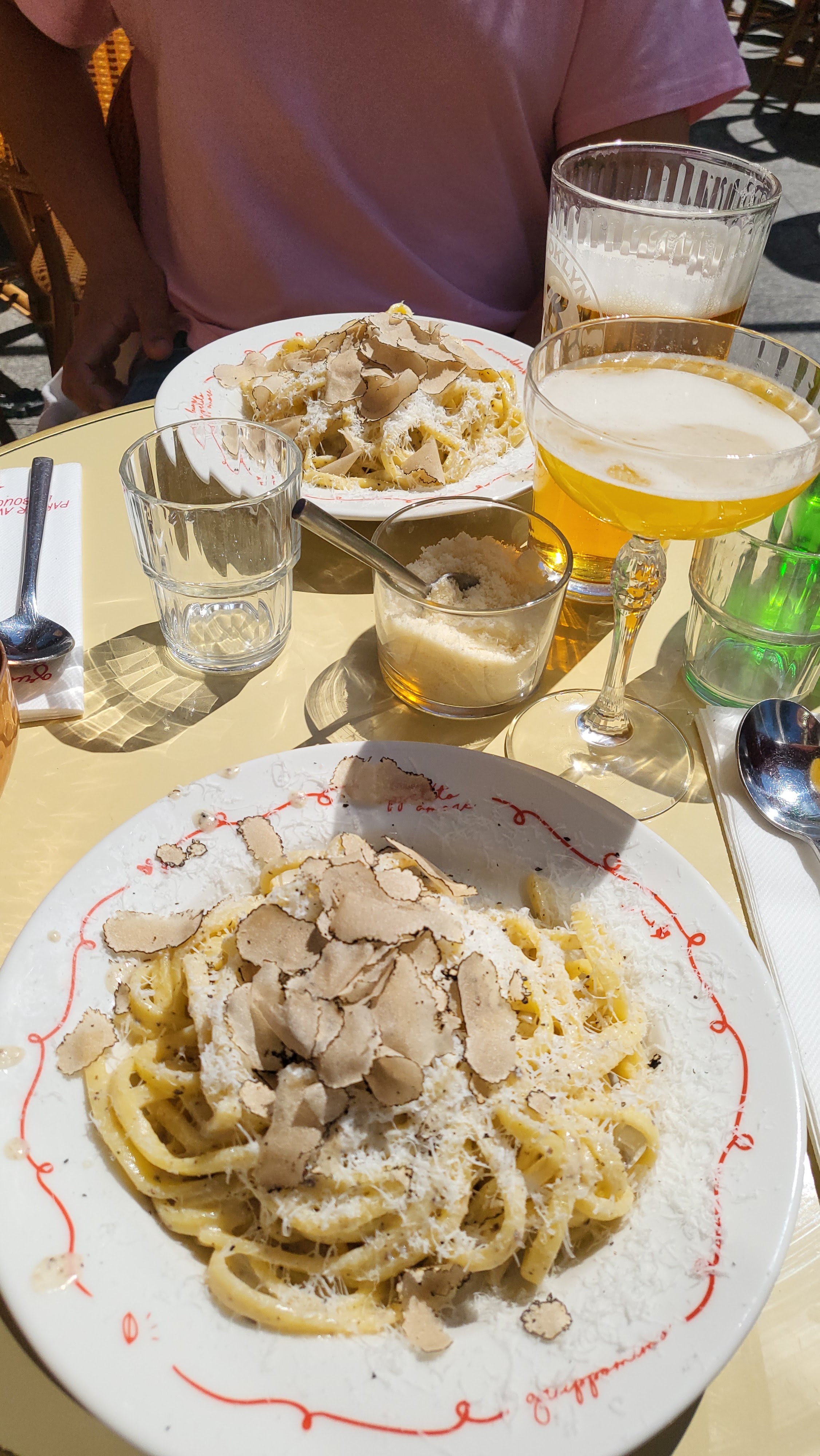 Superbe expérience avec la pasta dans la meule + petit clin d’œil envers le serveur Abdel qui, avec son smile et sa tchatche, a illuminé notre déjeuner :)