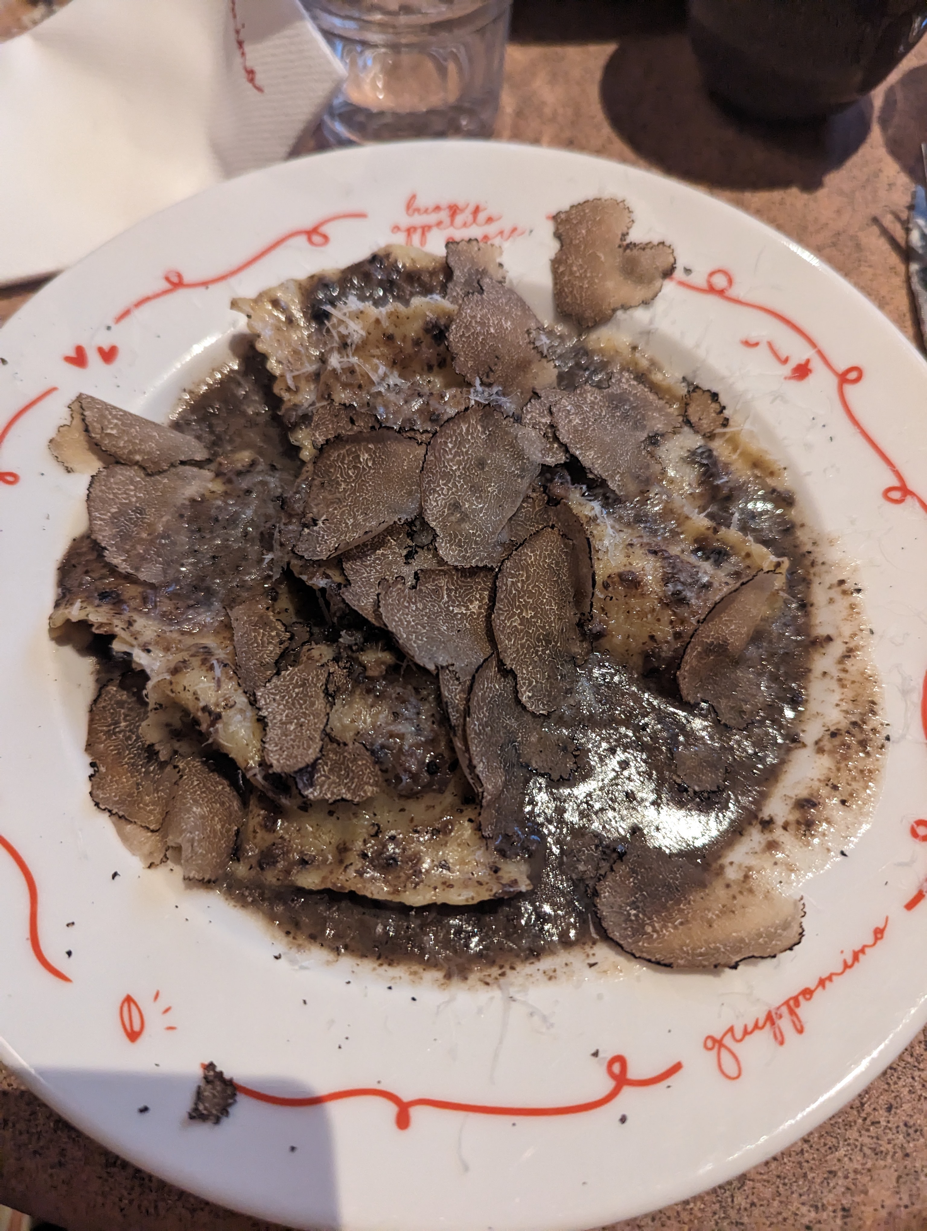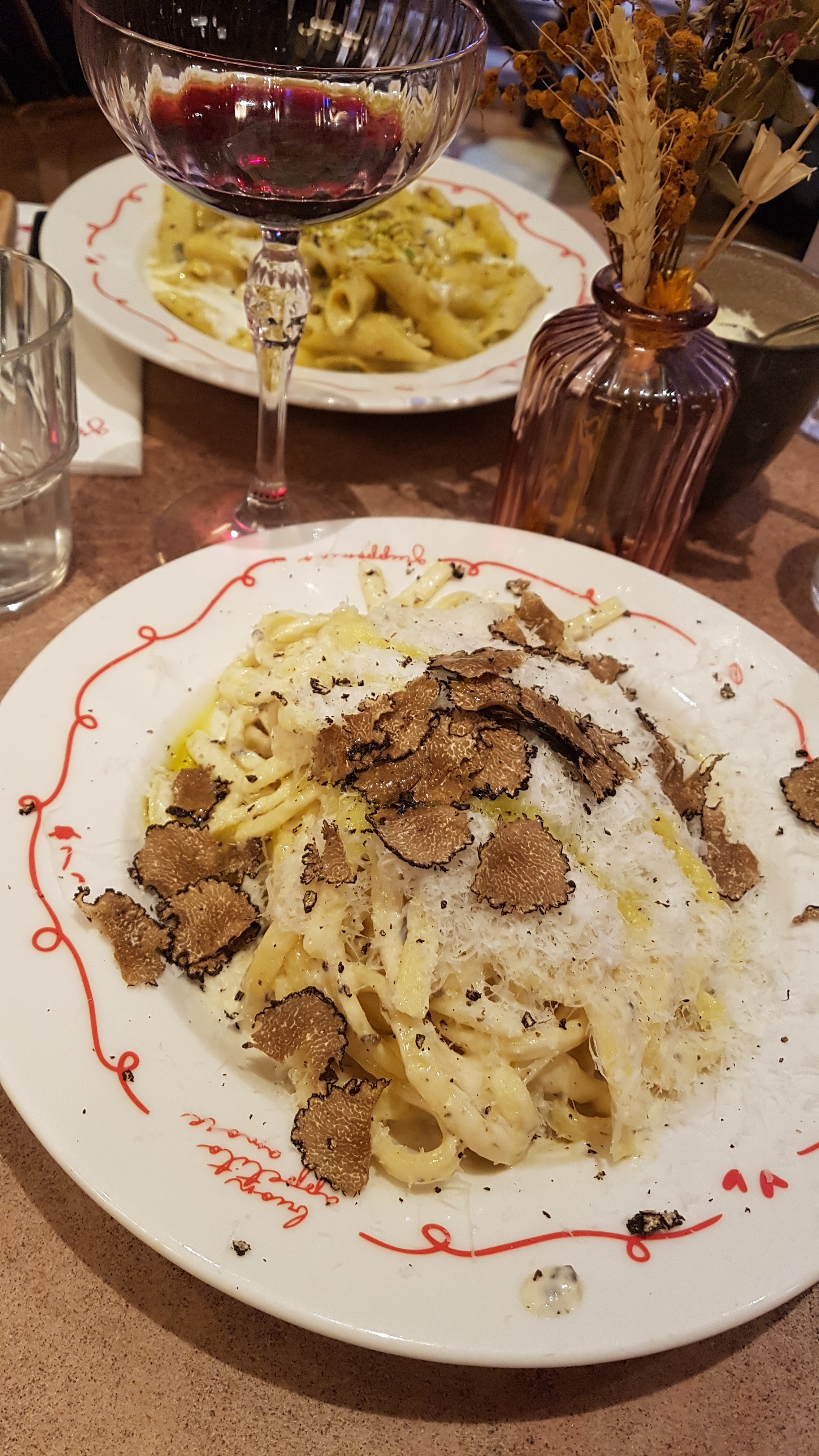 La pizza, avec sa pâte croustillante et ses tranches de truffe, était un délice. Les pâtes, accompagnées d'une sauce crémeuse parfumée à la truffe, étaient tout aussi remarquables. Une expérience gastronomique inoubliable pour les amateurs de cuisine italienne.