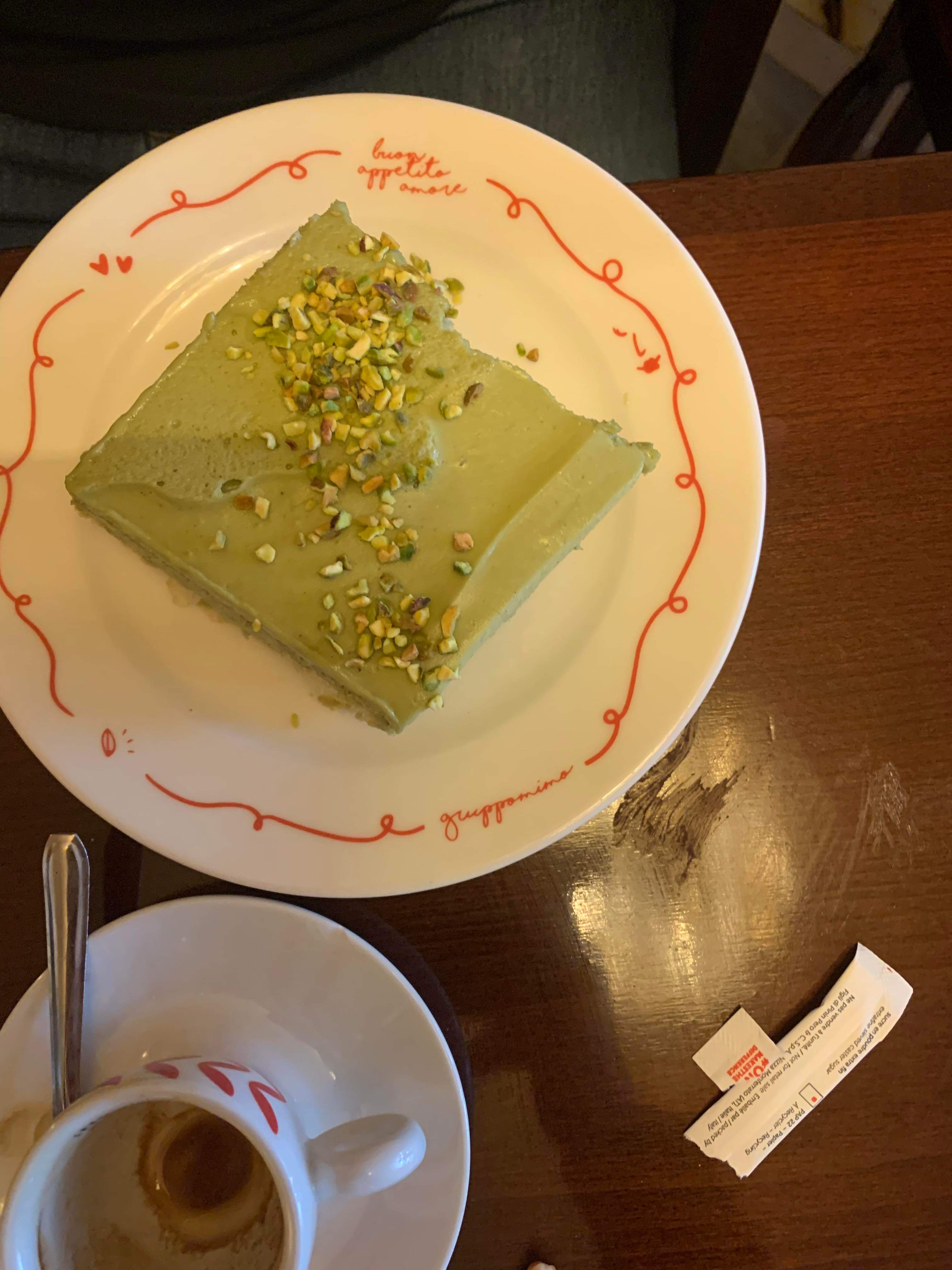 De l’entrée au dessert c’était juste parfait ! Les pâtes au pesto sont très bonnes, par contre les pâtes à la pistache sont vraiment excellentes et sortent du lot ! Vous ne pouvez pas repartir sans avoir goûter le cœur de Pietro… Le fondant à la pistache avec le fondant du chocolat, un mélange plus que réussi ! Je reviendrai à coup sûr !
