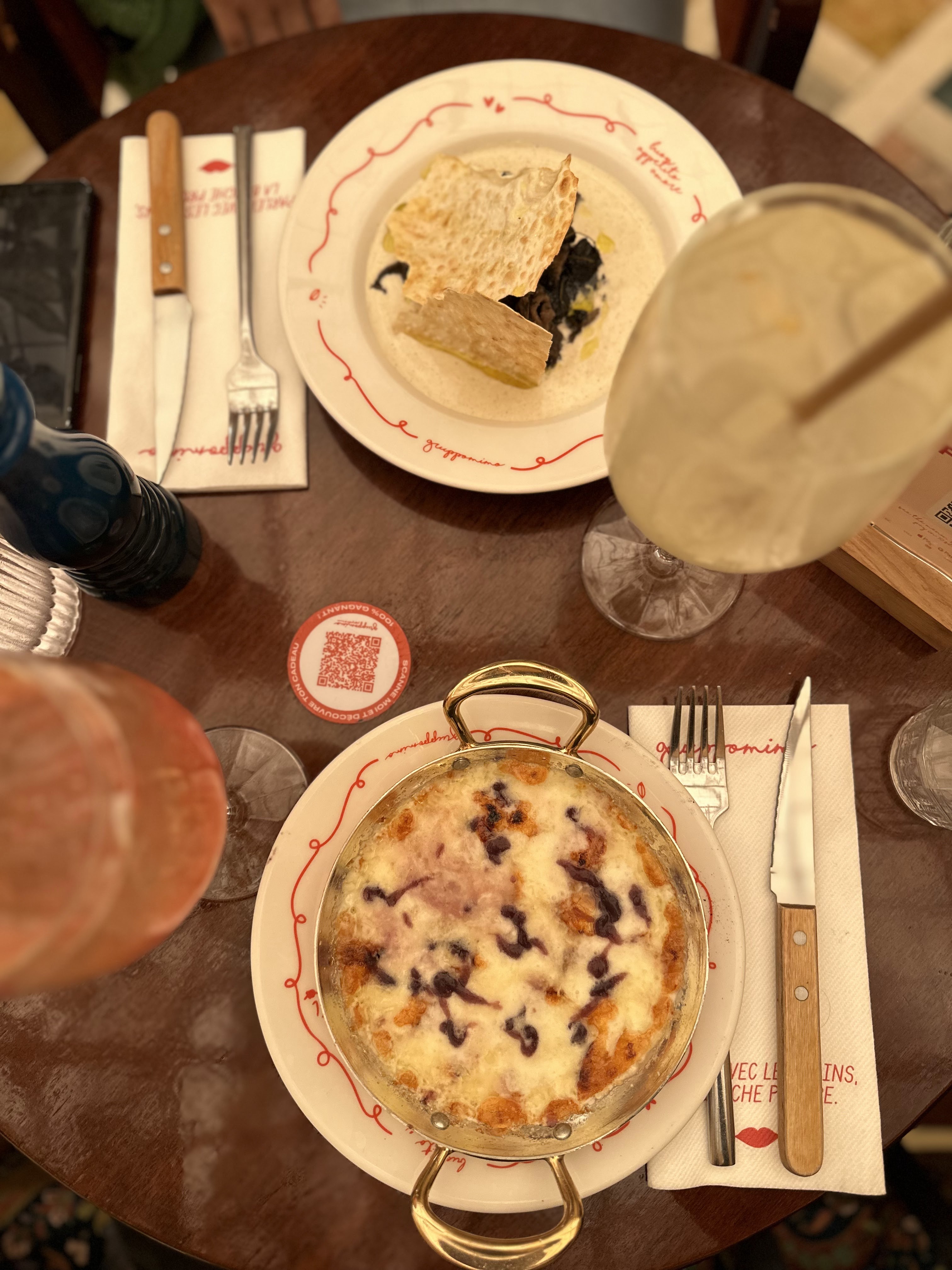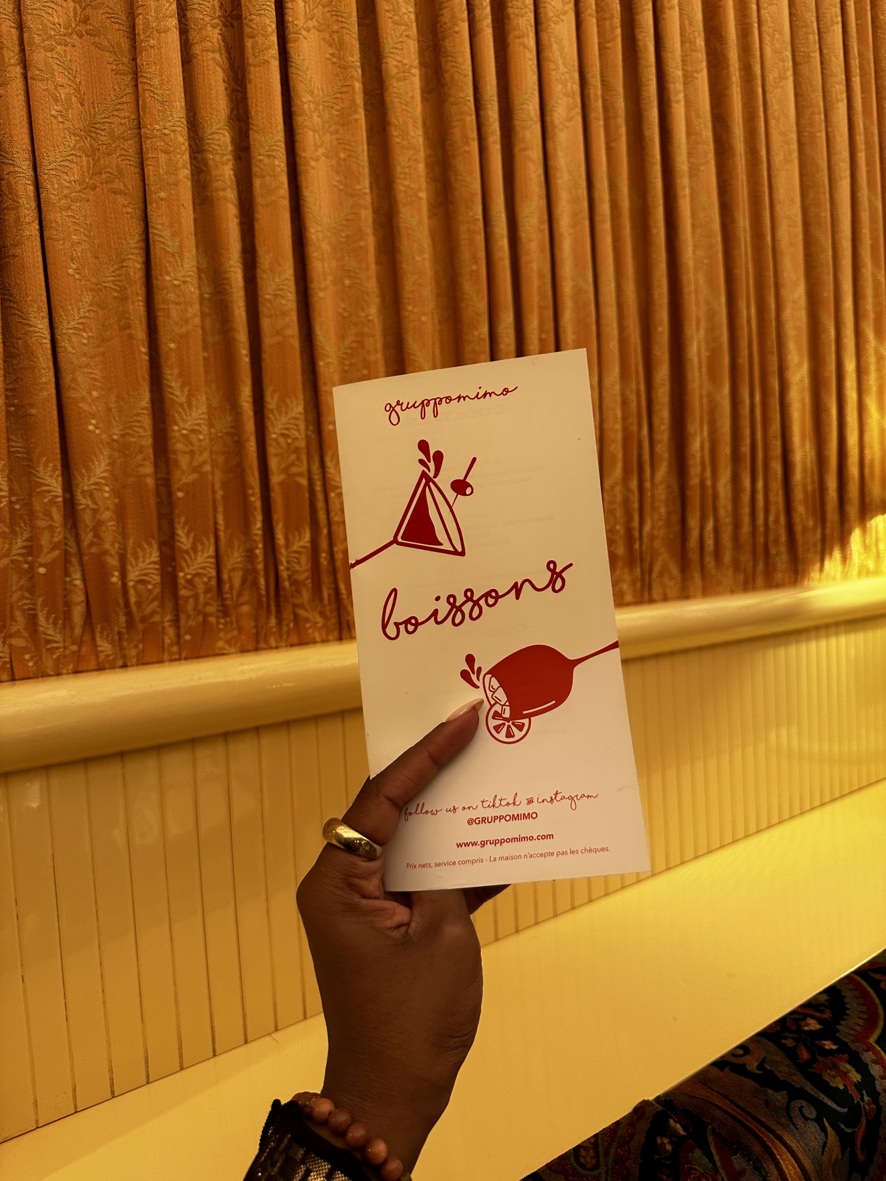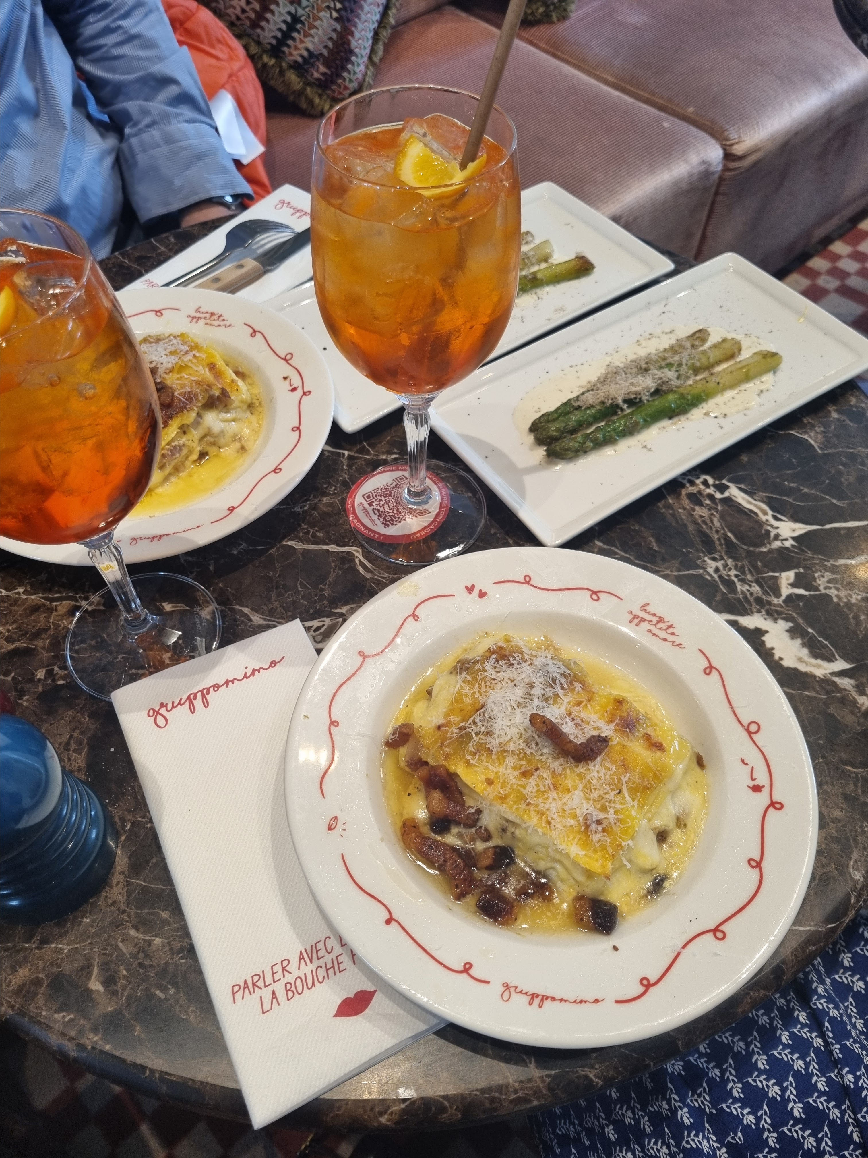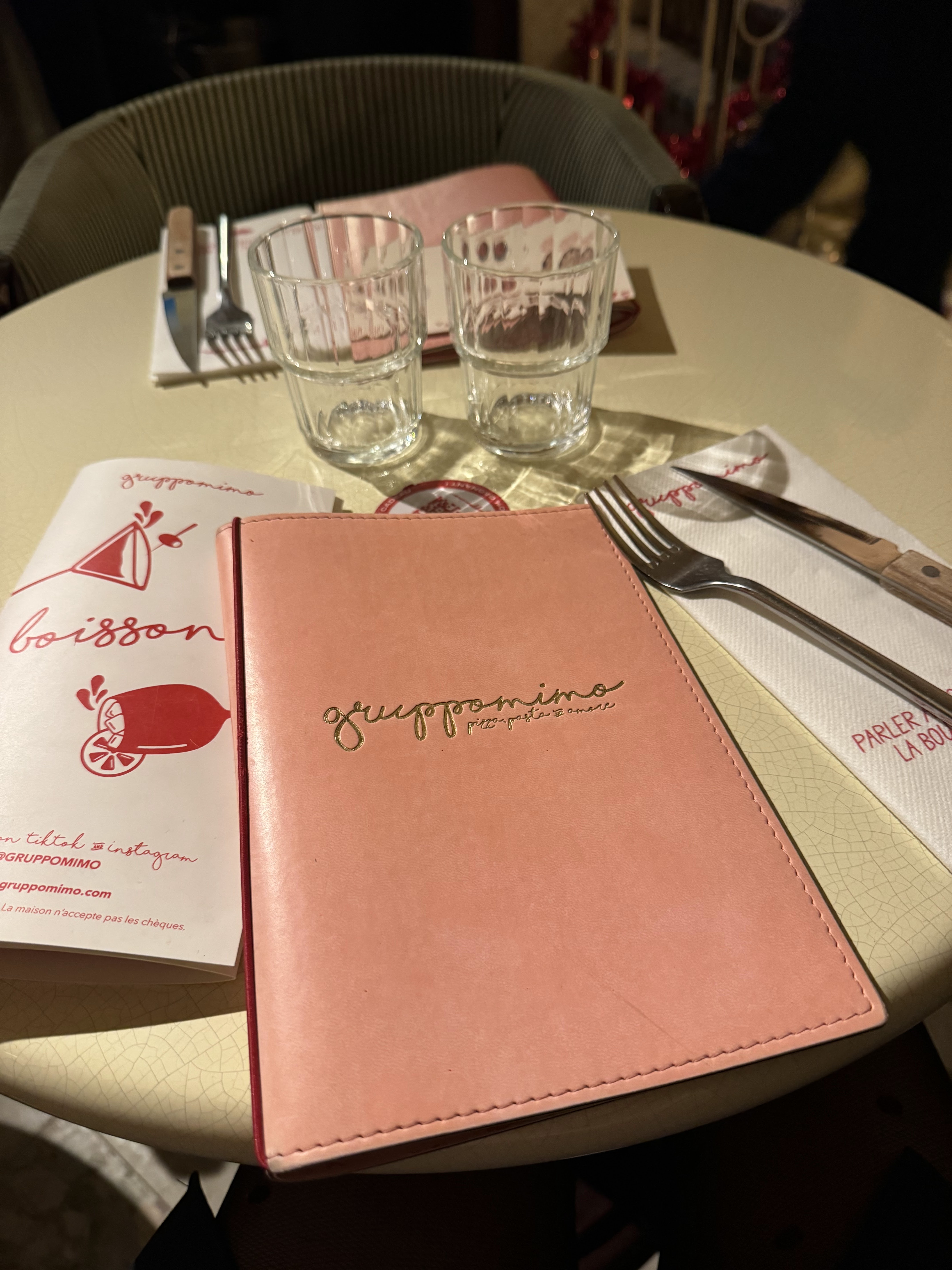 Je suis venu dîner avec des amis chez Gruppomimo (Paris 2) en décembre dernier et nous avons été super bien accueilli. En plus du cadre et de l’ambiance au top, les plats sont savoureux. J’ai goûté les ravioles au butternut, une tuerie ! Sans parler du profiterole à la pistache que j’ai pris en dessert, un vrai délice ! Les portions sont généreuses et le service chaleureux ! On a même eu droit à un petit verre de limoncello et d’amaretto en digestif. Je recommande fortement ce restaurant ! 🇮🇹 Merci pour tout ! 🤌❤️ Mélanie