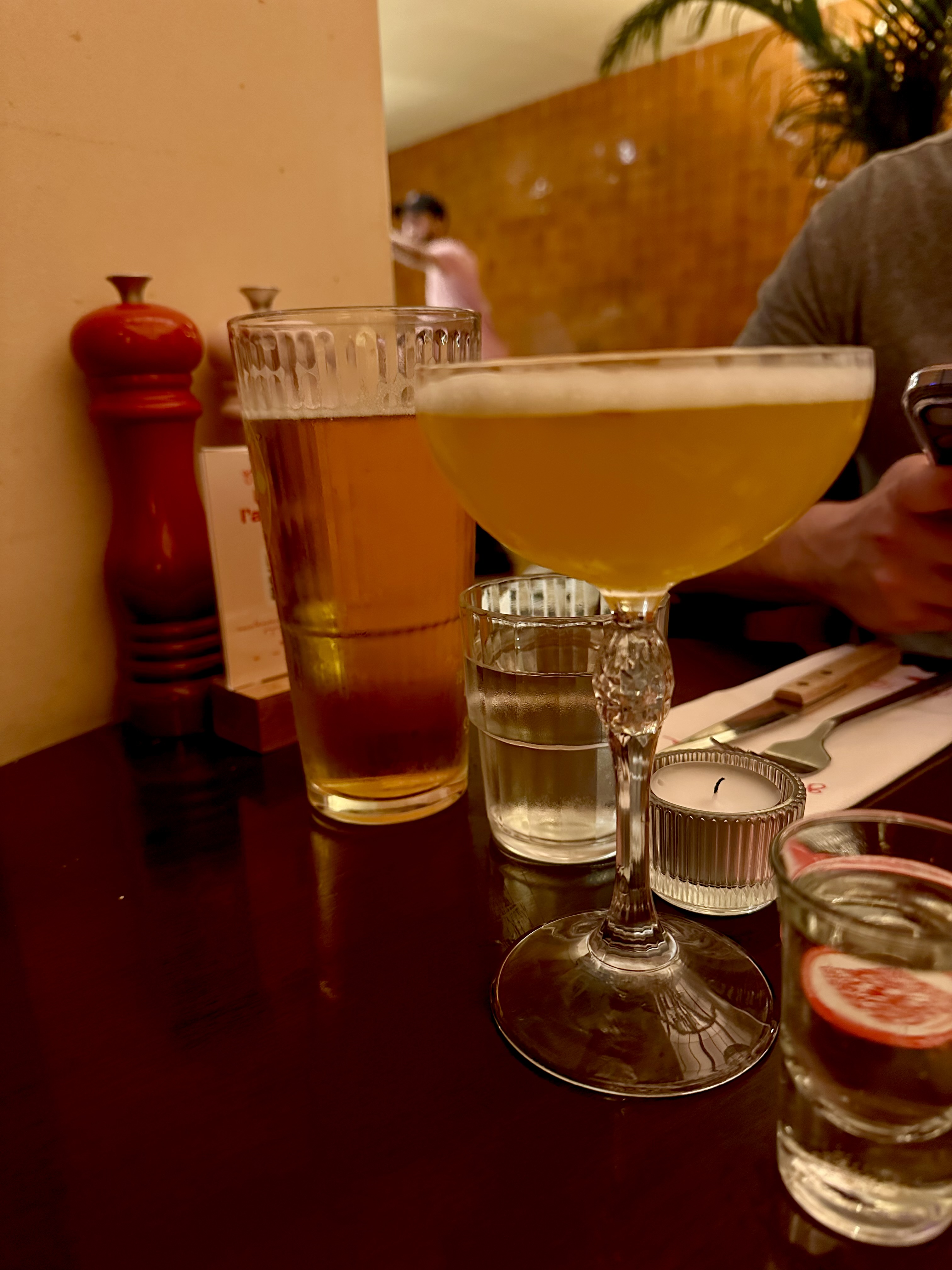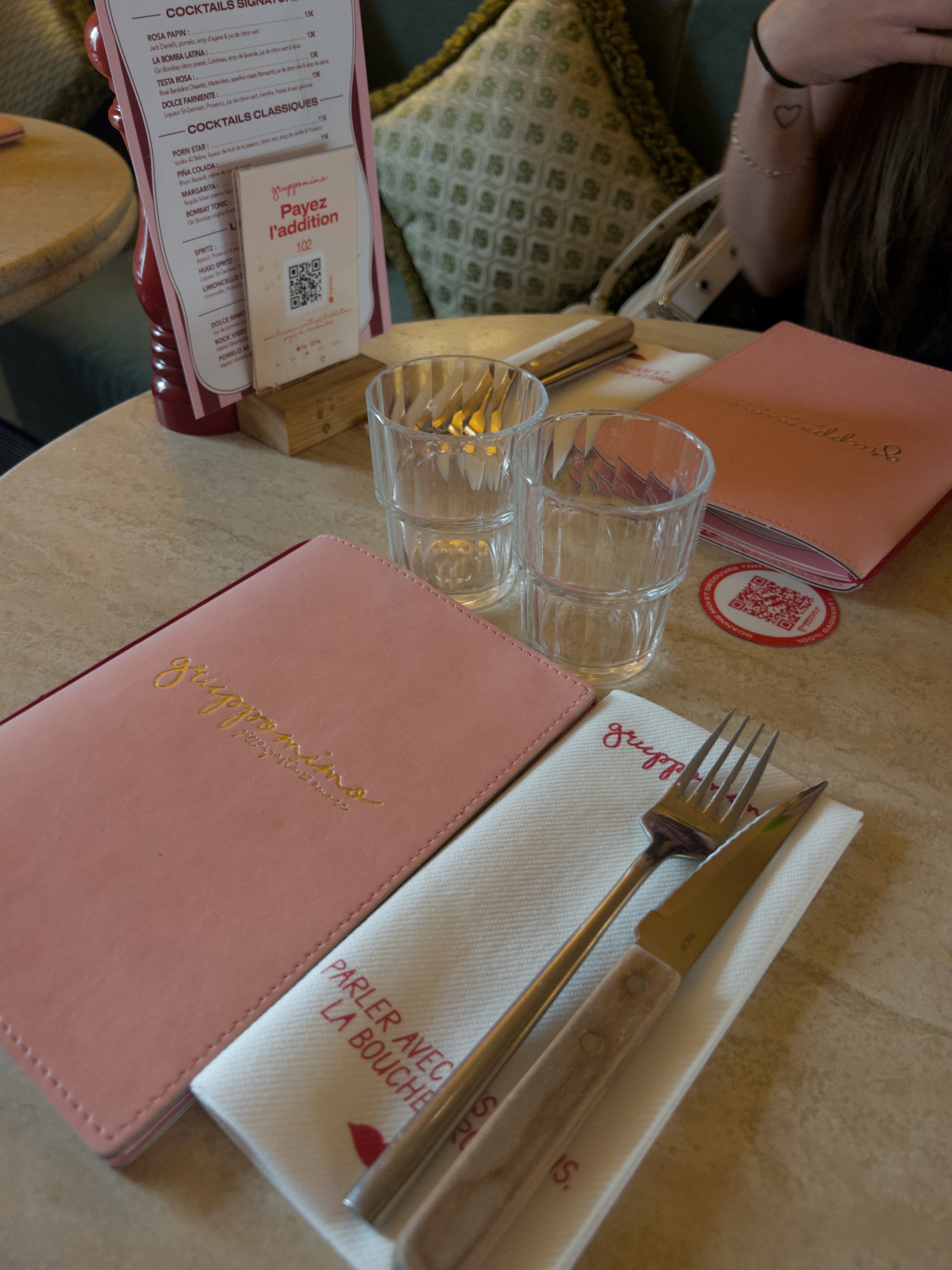 Gruppomimo ! Je ne savais vraiment pas à quoi m'attendre car je n'avais jamais entendu parler de ce restaurant, mais je n'ai pas été déçue par sa qualité et son ambiance chaleureuse ! Parfait pour des retrouvailles, haha. Tout était très bon, et je trouve que les prix sont vraiment raisonnables ! Un grand merci au serveur pour la petite dégustation, ainsi que pour son explication concernant la dégustation d'une boisson intitulée PornStar. Nous ne savions vraiment pas comment la boire, mais maintenant nous sommes bien renseignés !