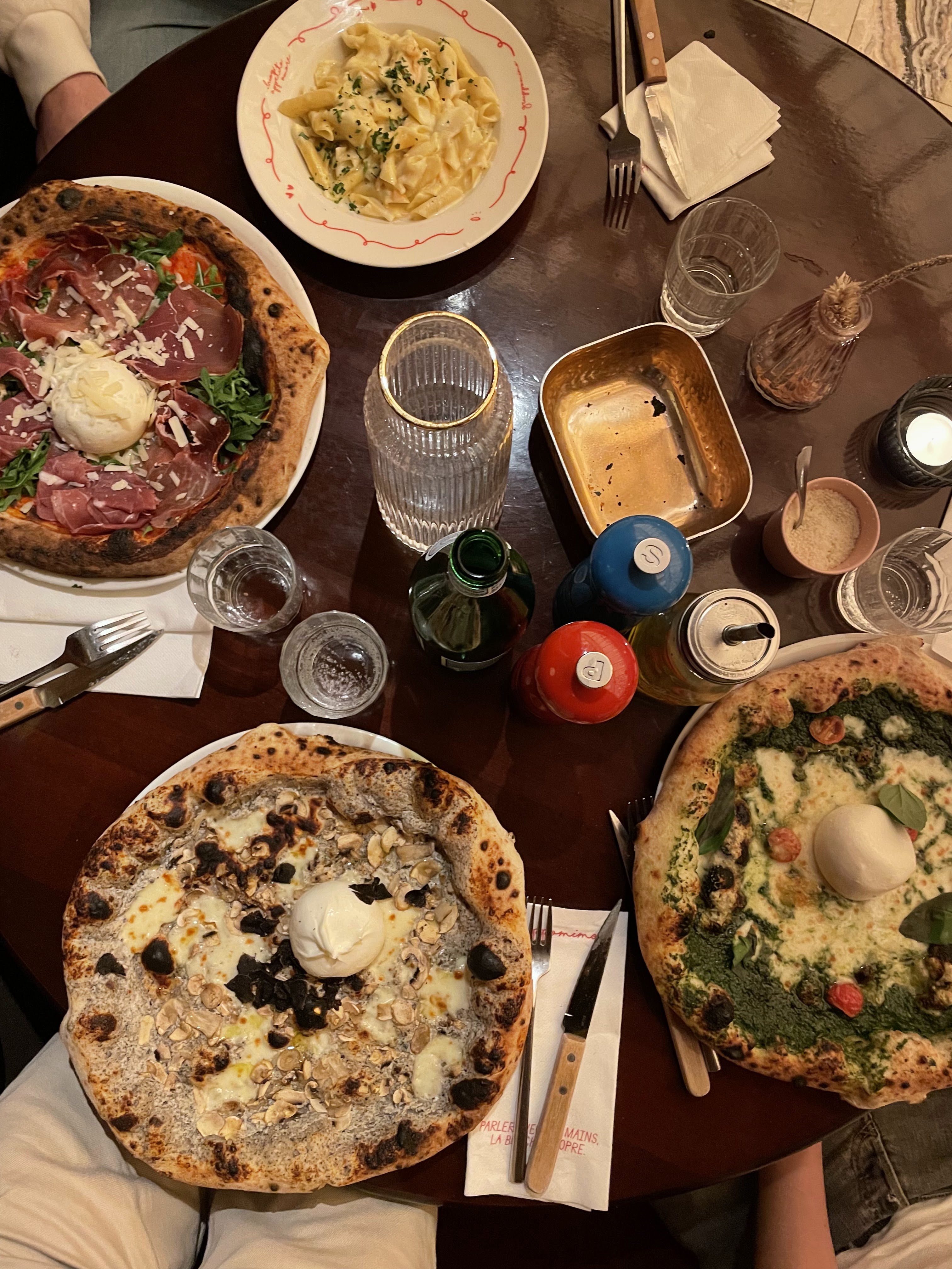 Meilleur restaurant italien de Paris! Le cadre est très chouette, typiquement italien, on a adoré. Nous sommes venus à 10, le service était très rapide et le personnel très à l’écoute et accueillant. Pour ce qui est des plats, tout était délicieux, les pizzas sont incroyables super garniture et une pâte trop bonne et aérée. Mention spéciale pour la Parma pazza et pour celle au pesto et burrata. Les pâtes à la truffe sont savoureuses et très les portions très généreuses, la Regina aussi. Nous nous sommes partagés un dessert, le moelleux au chocolat, bon, et on a même eu droit à une bougie et une super ambiance pour fêter l’anniversaire de notre amie. Merci encore!