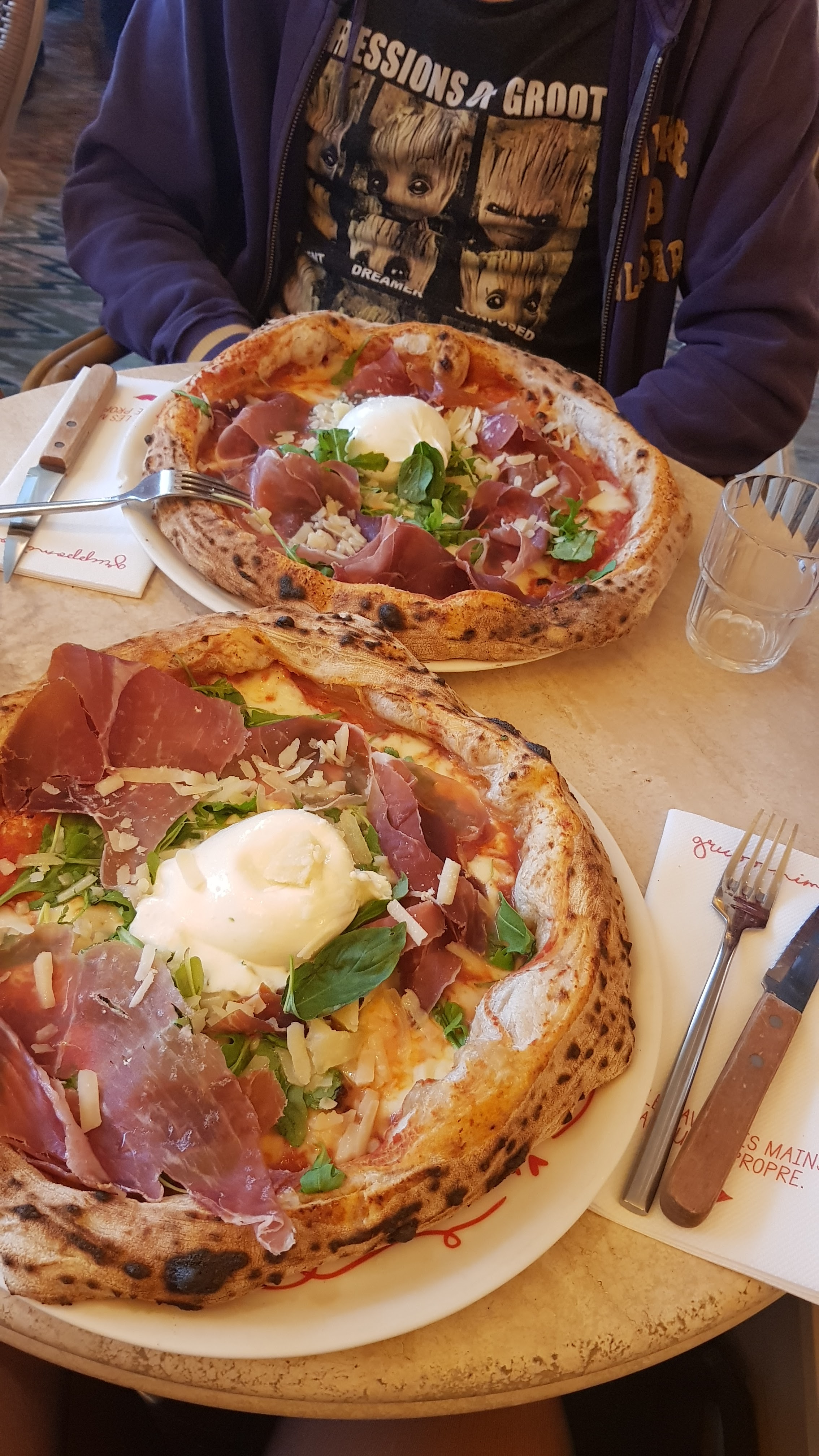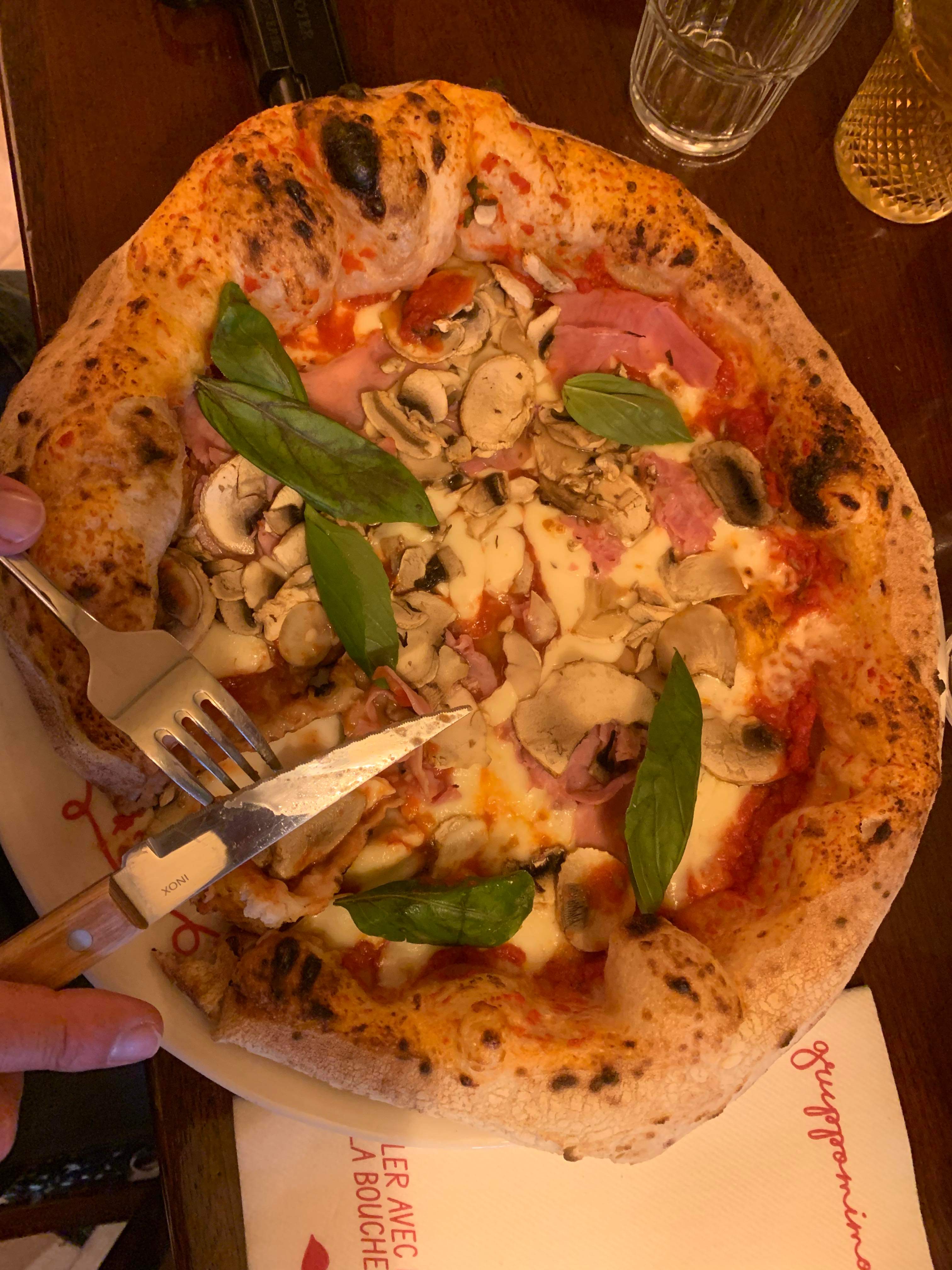 C'était notre premier arrêt à notre arrivée à Paris car c'était l'un des seuls restaurants que nous savions vouloir visiter à l'avance. Nous nous sommes assis rapidement et notre serveur était très sympathique et gentil. Ils ont un menu en anglais disponible et notre serveur parlait également un peu anglais. Nous commandons la reine classique sans champignons et l'Alla Valentina. Le seul inconvénient de notre visite est qu’aucune autre pâte ne se rapprochera jamais de la saveur de l’Alla Valentina.